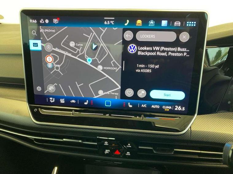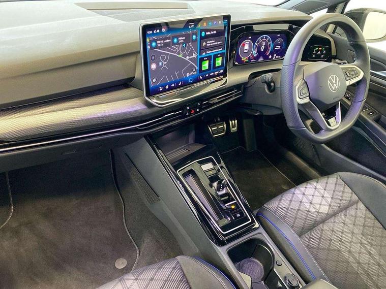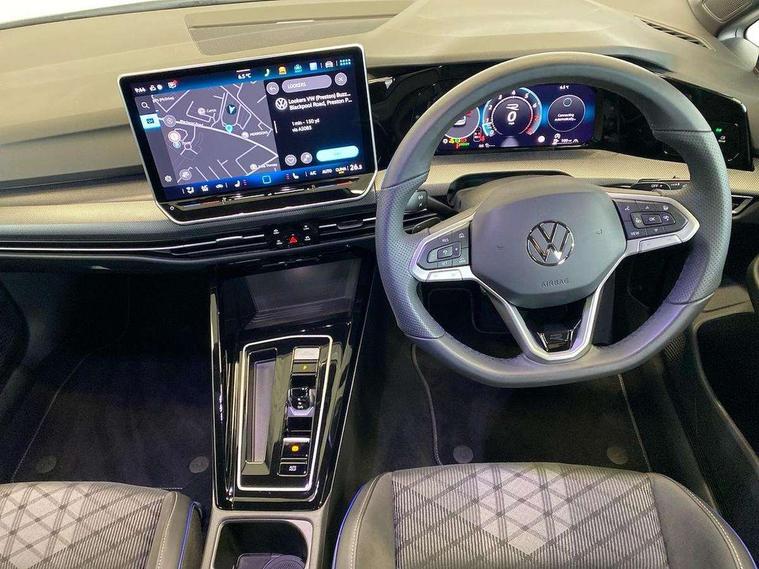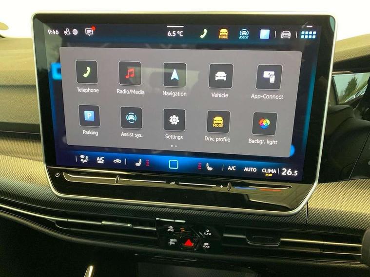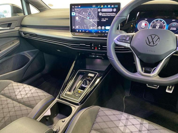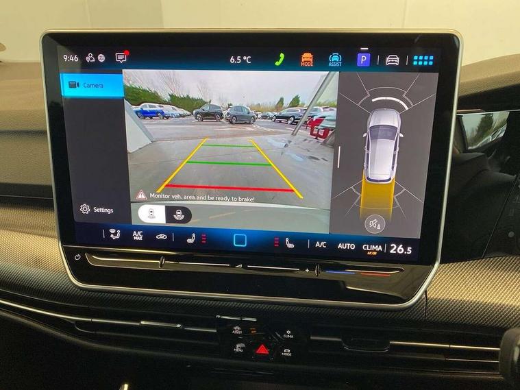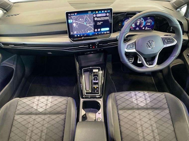 Activated carbon canister, Adaptive cruise control (ACC), Advanced driver attention and drowsiness monitor, Dynamic road sign display, Dynamic steering, E-Sim card for online connectivity, eCall emergency call system, Multi-color Digital cockpit pro, selection of different info profile possible, Multifunction front facing camera for distance control, Navigation system, Oncoming vehicle braking when turning including swerve support, Speed limiter, Speedo, rev counter, electronic odometer, trip, service interval display, exterior temperature and fuel gauge, Traffic jam assist, Voice enhancer and voice control, Warning signal and warning light for front and rear seatbelts not fastened, We connect plus preparation, We connect preparation, Wireless app connect, Hybrid propulsion system, Petrol Particulate Filter, Start-stop system with battery regeneration (recuperation - energy recovery during braking), XDS electronic differential lock for improved traction and handling, 2 USB C ports in front, 2 USB charging sockets on the centre console in the rear charging capacity upto 45W, Digital radio reception (DAB), Diversity antenna for FM reception, Gaming platform via car app, Infotainment system with 12.9" display, Mobile phone interface with inductive charging feature, 3rd brake light, Auto dimming rear view mirror, Automatic headlamp activation with Coming home and Leaving home feature, Body colored bumpers in R-Line style, Body colour door handles, Exterior ambient lighting, Exterior mirrors convex on the left and aspherical on the right, Front and rear electric windows, Heat insulating windshield made of laminated glass, LED separate daytime running light, Rain sensor, Rear exhaust tailpipe, Rear fog light on one side and reversing lights on both sides, Rear side wing doors, Rear windscreen washer and wiper with interval delay, Remote electrically foldable door mirrors, puddle lights and reverse activated passenger's door mirror, Volkswagen logo in front, illuminated lighting animation with wake up/goodbye scenario and illuminated door handles, Welcome light with surround lighting, 12V socket in front centre console, 12V socket in luggage compartment, 3 rear head restraints, 3 seat bench in 2nd row, Ambient lighting with 30 colour including LED light unit in front footwell with selectable light colour, Black roof lining, Brushed stainless steel pedals, Chrome plated radiator grille inserts, air vent surrounds and light switch surrounds, Door insert, side trim panel and arm support in leatherette, Front + rear black carpet mats, Front centre armrest, Front seat lumbar support adjuster, Integrated front head restraints, ISOFIX anchors for child seats on outer rear bench seats and on front passanger seat compatible for i-Size, Luggage compartment lighting, Manual height adjustable front passenger seat, Manually height adjustable driver seat, Plastic gear knob, Premium sports seats in front, Rear cupholder and loadthough, Sardegna cloth upholstery with front and outer rear seats Art Velour inner sides of bolsters, Single front passenger seat, Split folding backrest with centre armrest and unsplit rear seat bench, Sun visors with illuminated vanity mirrors, Titanium black instrument panel, Black exterior Styling package with Matrix LED headlights - Golf, Winter package - Golf DSG Estate/Hatchback, 3 point height adj front seatbelts + pretensioners, 3 rear three point seatbelts, ABS, Autonomous emergency braking front assist with pedestrian and cyclist monitoring, Child locks on rear doors, Driver and front passenger airbag with front passenger airbag deactivation, Electronic parking brake with auto hold, ESC (Electronic Stability Control), Extended pedestrian protection measures, Hill start assist, Rear disc brakes, Two tone horn, Tyre pressure loss indicator, Volkswagen roadside assistance, Anti theft wheel bolts, Preparation for alcohol interlock, Decorative inserts carbon grey for dashboard and front door trim panels, 18" Leeds alloy wheels, Tool kit for tyre mobility set, Tyre mobility kit Includes 12V compressor and tyre sealant,