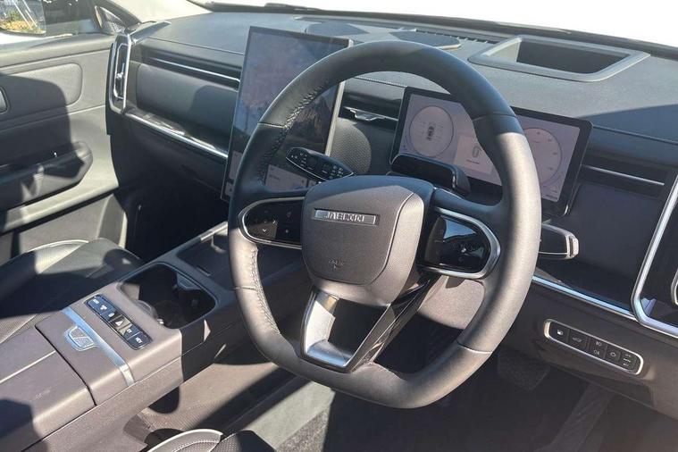 10.25" LCD instrument cluster, 14.8" portrait central LCD display, 3 driving modes Normal, Eco, Sport, 540 degree panoramic camera with transparent chassis view, Adaptive cruise control, Blind spot detection, Bluetooth handsfree system, Corner speed control assist, DAI Forward Departure System, Driver monitoring system, E-call safety system, Electric power steering, Emergency lane keep assist, Front and rear parking sensors, Front collision warning, Head up Display, ICA - integrated cruise assist, Integrated satellite navigation - Live traffic data with wifi hotspot, Intelligent active speed limit, Intelligent elude system, Intelligent speed assist, Lane control assist, Lane departure prevention, Lane departure warning, Multiple collision defence system, Power tailgate, Rear crossing traffic braking, Rear crossing traffic warning, Remote engine start, Remote HVAC start, Speed limiter, Traffic jam avoidance assistant, Traffic sign recognition, Wireless Apple CarPlay/Android Auto, Wireless mobile phone charging - 50w capacity, cooled, Independent rear suspension, 2 x Front USB, 1 x Type A, 1 x Type C (fast charging), 2 x Rear USB, 1 x Type A, 1 x Type C (fast charging), DAB Digital radio, Sony 8 speaker sound system, Auto dimming rear view mirror, Auto full beam LED headlights, Auto wipers, Automatic headlights, Body colour door handles, Electrically adjustable, heated and folding door mirrors, Exterior rear view mirror and seat memory, Follow me home headlight function, Front fog lights, Full length panoramic sunroof with opening front section, Heated rear window, High level LED brake light, Integrated antenna, LED daytime running lights, LED rear lights, One touch window function for all doors, Privacy glass, Rear side wing doors, Roof rails, Silent glass - windscreen and front side windows, Single layer roof spoiler, Tinted rear windows, Windows opening via remote, 12V power outlet - Boot, 12v power outlet - front, 12V socket in luggage compartment, 3 seat bench in 2nd row, 4 way adjustable steering column, 4 way driver lumbar support, 4 way electric adjustable passenger seat, 6 way power adjustable driver seat, 60/40 split folding rear seat backrest, Cooled ventilated front seats, Driver and passenger sun visors with vanity mirror, Dual zone air conditioning with second row outlet, Front armrest with interal storage and upper storage tray, Front deluxe seats, Front headrests, Front reading light, Heated front seats, Heated steering wheel, Luggage compartment light, Multi function steering wheel, PM2.5 air purification system, Rear bench armrest with integrated cupholder, Rear headrests, Selectable multi colour ambient lighting, Single front passenger seat, Synthetic leather steering wheel, Synthetic leather upholstery, Welcome seats - retract to welcome driver when door opened, 2 x isofix, 3 point seatbelts on all seats, ABS/EBD, Autonomous emergency braking, BAS (Brake Assist System), Child locks, Door opening warning, Downhill assist, Dual front airbags, Electronic brake force distribution, Electronic parking brake with auto hold, Electronic Stability Programme, Front and rear side airbags, Front centre airbag, Knee airbags, Passenger airbag manual switch off, Power limited seatbelts with pre-tensioners, height adjustable with CLT, Tyre pressure monitoring system, Uphill assist, Anti theft alarm, Automatic door locking, Engine immobiliser, Keyless start button, PEPS (passive entry and passive start) with walkaway locking, Dark colour interior, 19" Alloy wheels, Tyre repair foam,