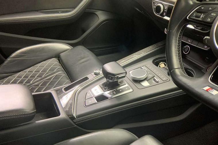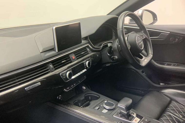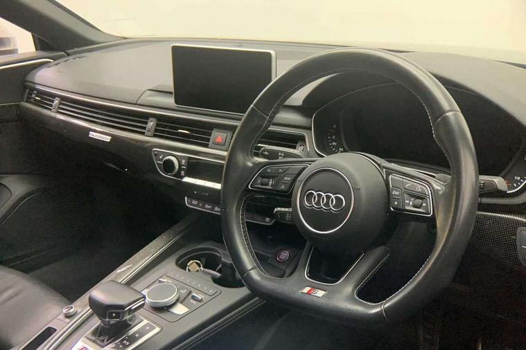 Audi drive select, Audi parking system plus with front and rear sensors, Audi smartphone interface, Colour driver's information system display, Electric tailgate release, Electro-mechanical PAS, MMI navigation plus with MMI touch, Mobile telephone preparation - bluetooth interface, Service interval indicator, Voice control system, 2 x USB charging port with aux input socket, CD player, DAB Digital radio, MMI radio plus with 7" colour MMI screen and MMI controller, Two SDXC card slots, Air inlets in titanium black, Aluminium door mirror housings, Auto dimming rear view mirror with acoustic windscreen, Body colour bumpers, Body colour rear spoiler, Chrome door handles, Electric adjustable heated door mirrors, Electric front windows, Front fog lights, Headlight washers, Heat insulated glass, High beam assistant, Rain and light sensors, S body styling, Twilight grey matt radiator grille in aluminium silver matt inlay, Twilight grey matt rear diffuser, Twin chrome exhaust tailpipes x2, 'S' instrument dials, 3 seat rear bench, Adjustable steering column, Automatic tri-zone climate control, Black headlining, Boot mat, Centre console with cupholders, Electric lumbar support, Fine Nappa leather upholstery, Front centre armrest, Front head restraints, Front/rear floor mats, Illuminated door sills, Isofix front passenger and rear seat preparation, Jack and tool kit, Massage function for front seats, Rear headrests, Split folding rear seat, Stainless steel pedals and foot rest, Super sports seats, Top tether anchor plate for isofix child seat, Extended interior upholstery pack - A5/RS5, Non Smokers pack, 3x3 point rear seatbelts, ABS, ASR, Driver/Front Passenger airbags, Electromechanical parking brake, Enhanced braking system, ESP + traction control, First aid kit, Front and rear curtain airbags, Front passenger airbag deactivation, Front side airbags, Height adjustable front seatbelts, Hill hold function, Multi-Collision braking, Pre-sense city emergency braking system, Seatbelt warning, Tyre pressure monitor, Warning triangle, Anti theft system, Immobiliser, Keyless start, Locking wheel bolts, Remote central locking, 19" 5 spoke cavo design alloy wheels in part polished/contrast grey finish, Space saver spare wheel,
