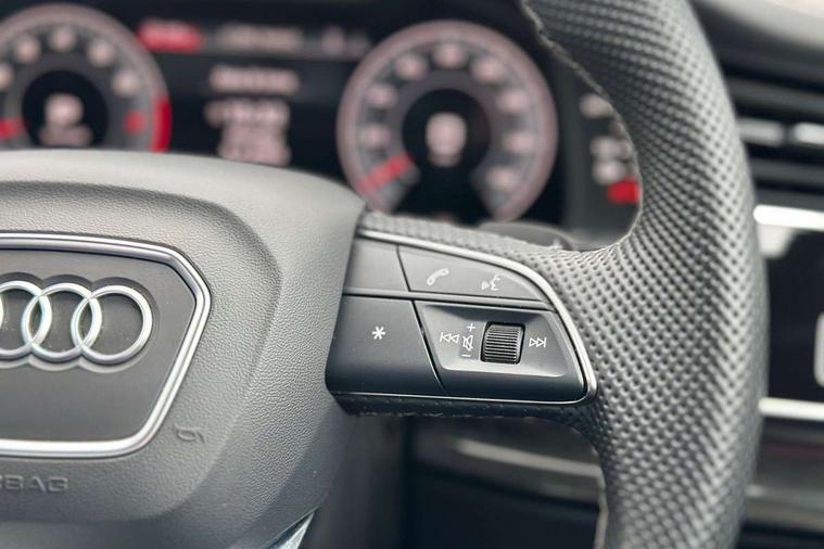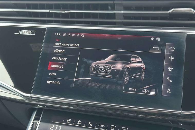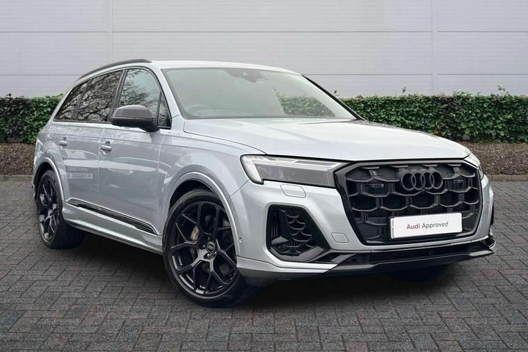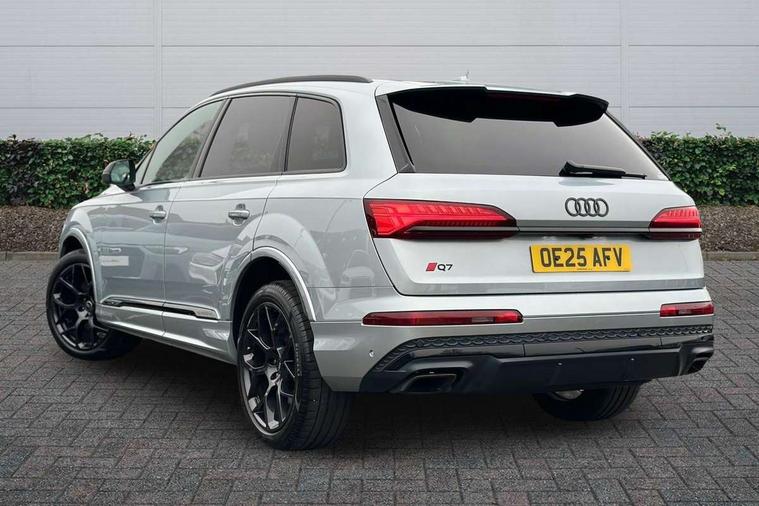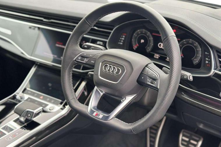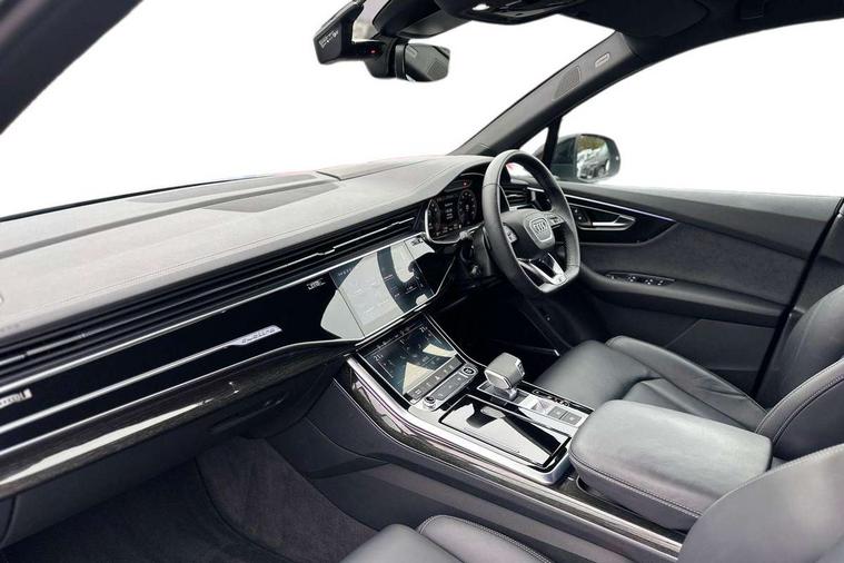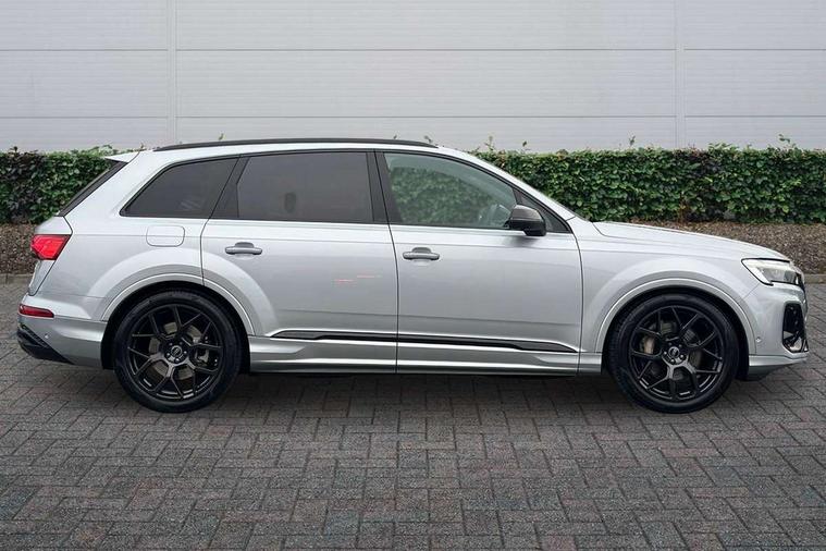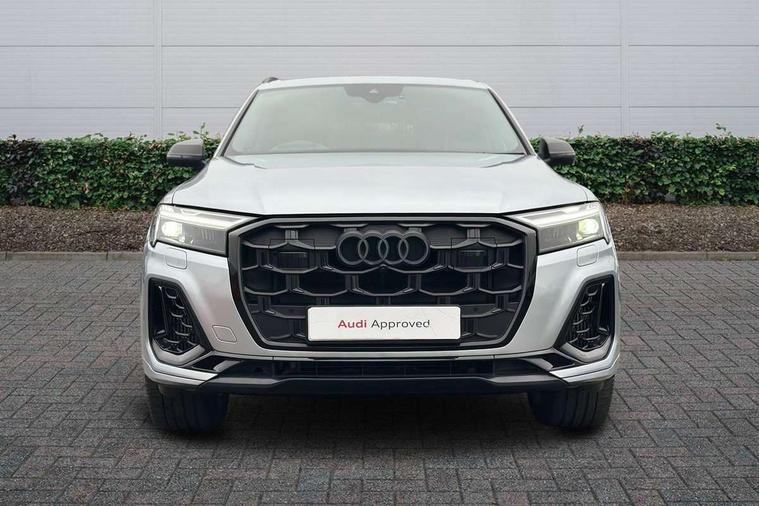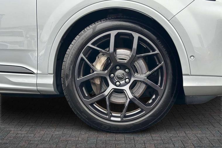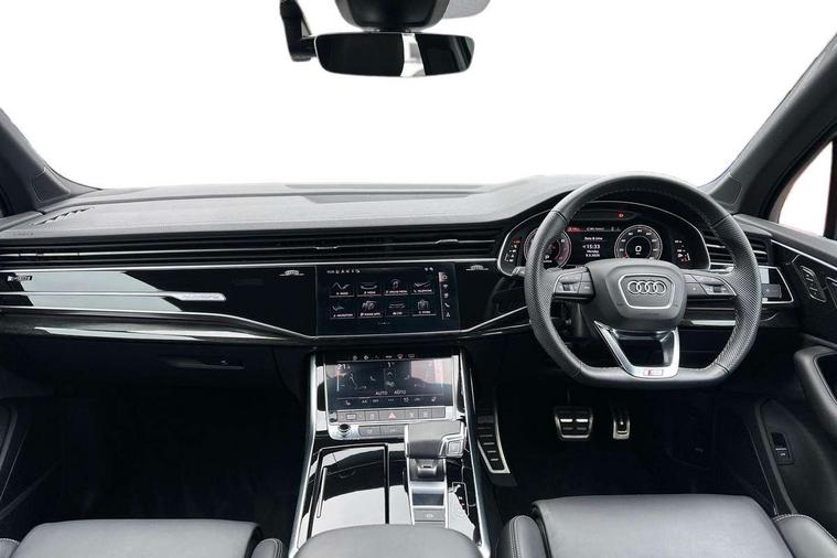 Audi connect safety and service (e-call), Audi connect with Amazon Alexa Integration, Audi drive select (Auto, Comfort, Dynamic, Efficiency, Individual, Off-road and All road), Audi phone box light with wireless charging, Audi smartphone interface includes wireless Apple carplay/Android Auto, Audi virtual cockpit - 12.3" high-resolution LCD display with fully customisable instrument cluster, Bluetooth interface, Camera based traffic sign recognition, Electromechanical steering, MMI navigation plus with MMI touch screens includes 10.1" and 8.6" screens with haptic feedback, Natural voice recognition, Parking system plus with 360 degree display (front, rear and side sensors) - acoustic and visual park assist system, Power operated tailgate, Rear view camera, Start/stop system, 48V Mild hybrid technology, Adaptive air sports suspension, Quattro all wheel drive with self locking centre differential, Audi music interface - front 2 USB-C ports with charger and data functions, Audi sound system with 6 channel amplifier, 180 watt amplifying capacity and 10 loudspeakers including subwoofer, DAB digital radio module, 3rd brake light, Aluminium window trim, Audi Beam uses LEDs to project S emblem with red rhombus onto the ground when opening the side doors (front/rear), Auto dimming frameless rear view mirror, Black roof rails, Bumpers in contrast paint scandium grey finish includes door trim and wheel arch trim strips, inlays in door strip contain quattro embossing, Dark tinted Matrix LED headlights with dynamic front and rear indicators, Electrically adj heated/folding + automatically dimming exterior mirrors with memory + automatic kerb side function for passenger side exterior mirror, Heat insulating glass in windshield, Integrated LED indications in door mirrors, LED daytime running lights, LED rear tail lights, Privacy glass - dark tinted rear and rear side windows from B-pillar backwards, Rear side wing doors, Rear wiper, 2 seat bench in 3rd row, 2 zone automatic climate control, 3 seat bench in 2nd row, 7 seat layout with ISOFIX points for the front passenger seat and rear passenger seat, Black cloth headlining, Comfort front centre armrest, Electric adjustable front seat with 4 way lumbar support, driver memory functionality, Folding rear seats, Front head restraints, Front/rear floor mats, Heated front seats, Illuminated door sill trims with S logo, LED interior ambient lighting, Luggage compartment cover, Luggage compartment sill protection in stainless steel, Rear head restraints, Single front passenger seat, Stainless steel pedals, Sunvisors with illuminated vanity mirrors, Tool kit, Black styling pack plus - Q7, 3 point seatbelts on all rear seats, Audi pre sense front, Child locks on rear doors, Driver and front passenger, front side and curtain airbags, Electromechanical parking brake, Electronic Stabilisation Control (ESC) including ABS, ASR and EDL, Extended pedestrian protection measures, Hill hold assist, Seatbelt monitoring, Tyre pressure loss indicator, Warning triangle and first aid kit, Anti theft alarm, Anti-theft wheel bolts and wheel loosening detection, Keyless Go, Remote central locking, Polished oak trim with grey finished, Tyre repair kit,