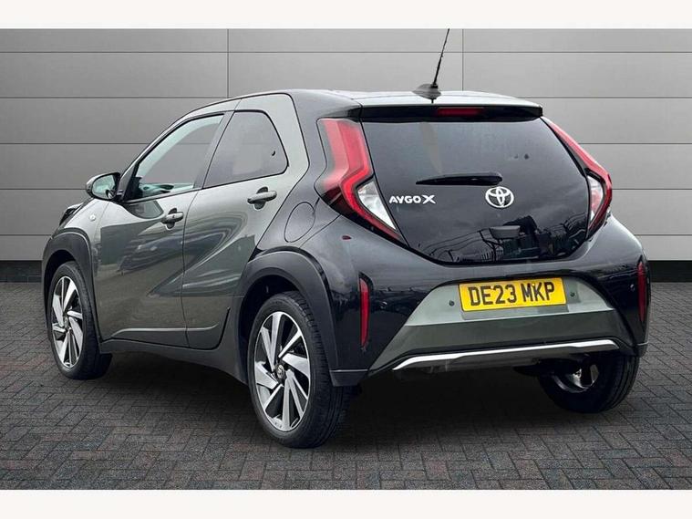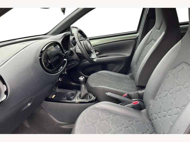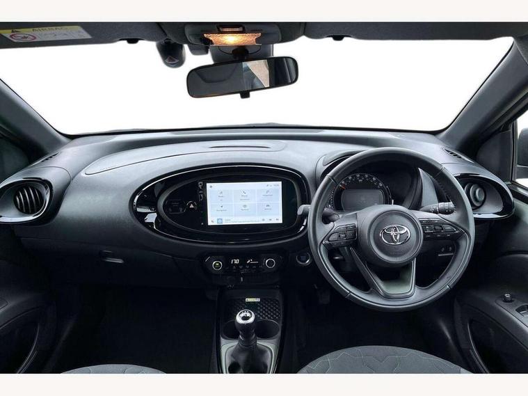 4.2" TFT colour screen, Adjustable speed limiter, Analogue speedometer, Bluetooth connectivity, Digital tachograph, Driver attention alert system, eCall emergency call system, Electric power steering, Front and rear parking sensors with auto brake, Intersection turn assist, Key reminder warning, Noise reduction kit, Pre collision system with emergency steering assist, Remote boot door release on key, Reversing camera with static guide lines, Smart entry and push button start, Speed limit display, Start and stop, Wireless charger, Wireless Smartphone Integration includes Apple CarPlay and Android auto, Vehicle Stability Control (VSC), 4 speakers, 9" HD multimedia display touch screen with Toyota smart connect, DAB digital audio broadcast, USB connector, Auto headlights, Auto wipers, Automatic headlights cut-off, Automatic high beam On/Off switch, Bicycle towing hook, Black fog light surrounds, Black side protection mouldings, Black wheel arch mouldings, Body colour door handles, Body coloured front bumper, Boot door scuff plate, Eclipse black rear bumper, Electric heated door mirrors, Follow me home headlights, Front and rear underruns in silver, Front fog lights, Front power windows, Gloss black door mirrors, Gloss black upper front grille, Headlight cut-off reminder, LED daytime running lights guide, LED front light guide, LED High mounted stop lamp, LED projector headlights, Manual day/night rear view mirror, Manual headlight levelling, Pagoda roof, Power adjustable door mirrors, Power back door, Privacy glass, Rain sensor, Rear combination lights LED bulb type, Rear side wing doors, Rear windscreen defogger, Rear windscreen wiper, Remote hazard lights system, Short antenna, Variable intermittent windscreen wipers, 12v power outlet - front, 2 seat bench in 2nd row, 3 spoke leather steering wheel, 50/50 split folding rear seat, Adhesive roof headlining, Adjustable speed limiter switch on steering wheel, Audio and telephone switches on steering wheel, Auto air conditioning, Black roof lining, Body colour satin anodised insert on steering wheel, Boot light, Centre room light, Chrome interior door handles, Chrome surround on air conditioning buttons, Clean air filter, Console box storage, Floor mats, Front and rear cup holders, Front head rest deco art, Front head restraints, Height adjustable driver seat, Intelligent adaptive cruise control switch on steering wheel, ISOFIX child restraint system on rear seats, Lane departure alert switch on steering wheel, Leather gearshift knob, Light blue ambient lighting in centre console, Manual tilt steering wheel, Manually reclining and sliding driver seat, Manually reclining and sliding front passenger seat, Multimedia switches on steering wheel, Partial synthetic leather upholstery, Pollen filter, Rear door pockets, Rear head restraints, Satin silver insert on gear shift knob, Single compartment glovebox with lights, Single front passenger seat, Soft tonneau cover, Sun visors with mirror on driver and passenger side, Voice recognition switch on steering wheel, Toyota safety sense pack - Aygo X, Anti lock braking system + Electronic brake force distribution, Child safety door lock, Emergency brake light signal (EBS), Hill start assist control (HAC), Passenger airbag on/off switch, Seat belt reminder for front and rear seats, Supplement restraints system (SRS) - 6 airbags, Traction control, Tyre pressure warning system, Immobiliser, Remote power door locks, Black wheel centre caps, Tyre repair kit,