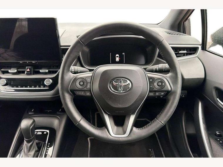 10.5" Multimedia display screen, Bluetooth telephone connectivity, Connected car functionality upgrade, tracker, remote status and e-care, Drive mode select (Eco, Normal), E-call, Electrically assisted power steering, EV drive indicator, Front and rear parking sensors with auto brake, Full Digital 12.3" TFT Digital Combimeter, Key reminder warning, Lane Departure Alert (LDA) switch on steering wheel, Memory on adjustable speed limiter, MyT connected services, Proactive driving assist (PDA), Reversing camera, Smart entry and push button start, Smartphone integration with Apple CarPlay and wired android auto, Tailgate, Toyota remote services, Toyota smart connect navigation, Wireless charger, Gasoline particulate filter, Vehicle Stability Control (VSC), 6 speakers, AM/FM radio, DAB Digital radio, Front USB-C in dashboard, Smart voice assist/ Voice recognition, USB and Aux in connectors + 12V front outlet, Anti-jam protection on power windows, Auto up and down function on all power windows, Automatic headlights with high beam assist, Black centre and side air vents, Black meshed front grille, Black toyota logo in front, Body coloured bumpers, Body coloured door mirrors, Body coloured front spoiler, Body coloured outside door handles, Body coloured rear under guard, COROLLA alloy door scuff plates, Follow me home headlights, LED daytime running lights, LED front fog lights, LED High mounted stop light, LED multi beam headlights, LED multi reflector in headlights, LED rear combi lights with LED lightguide, Manual day/night rear view mirror, Manual headlight levelling system, New grille pattern, Noise reduction layer on windscreen, Piano black diffuser, Power adjustable heated door mirrors, Power front windows, Power rear windows, Rain sensor, Rear side wing doors, Rear window defogger, Rear window wiper, Satin chrome insert on front air vents, Satin chrome insert on front door assist grips, Shark fin antenna, Time adjustment on intermittent wiper, Turning signal integrated indicators in door mirrors, Unique lower skirt, Unique side rocker with black insert, UV-filter on driver and passenger windows, 2 Shopping bag hooks in luggage compartment, 3 rear headrests, 3 seat bench in 2nd row, 3 spoke leather steering wheel with satin insert + gear knob, 4 tie down hooks in luggage compartment, 60/40 split folding rear seat, Adaptive cruise control (ACC) switch on steering wheel, Adjustable speed limiter switch on steering wheel, Audio, multimedia and telephone switches on steering wheel, Black armrest on centre console box, Black gear shift console, Boot light, Centre room light, Driver and front passenger personal light, Driver and passenger assist grip, Driver and passenger sun visor with mirror and light, Dual zone automatic air conditioning with ECO mode switch, Fabric upholstery, Front and rear cup and bottle holders, Front door pockets, Front head restraints, Front passenger seat, Front sliding fabric armrest, Heated seats, Illuminated entry system in room lamp, ISOFIX seat fixing (2 fixings on rear outer seats), Leather gear shift with satin chrome on gear shift console, Manual height adjustable for driver and front passenger seat, Manually tilt with sliding driver and front passenger seat, Parcel shelf, Passenger seat back pocket, Pollen filter, Power adjustable lumbar support on driver seat, Power window switches with satin chrome inserts, Rear armrest with 2 cupholders, Rear passenger coat hooks (2), Remote air conditioning, Satin chrome inside door handles, Satin chrome surround on heater control panel, Satin chrome surround on speedometer, Sliding armrest on centre console box, Slow opening glovebox with lights, Textile floor mats, Tilt/telescopic steering column, Voice recognition switch on steering wheel, Whiplash Injury Lessening (WIL) feature (active headrest) for seats, Toyota safety sense 3 pack - Corolla, 3x3 point rear seatbelts, Adjustable driver and front passenger seat belt extender to top anchor point, Anti lock braking system + Electronic brake force distribution, Brake assist function, Child locks on rear doors, Downhill Assist Control (DAC), Electronic parking brake, Emergency brake light signal (EBS), Front passenger airbag on/off switch, Front seatbelt reminder, HAC - Hill start assist control, Rear seat belt reminder, Seatbelt pretensioners and force limiters, Supplemental restraint system (SRS) 7 airbags - dual driver, dual side curtain, side impact and driver knee airbags, Traction control, Tyre pressure warning system, Acoustic vehicle alert system (AVAS), Alarm with motion sensor and immobilizer, Power passenger window lock, Remote central locking + deadlocks, Satin chrome dash trim, Soft touch texture on upper dashboard, Stitching on lower dashboard, 16" 5 double spoke alloy wheels, Tyre repair kit, Unique wheel finish with red wheel cap,
