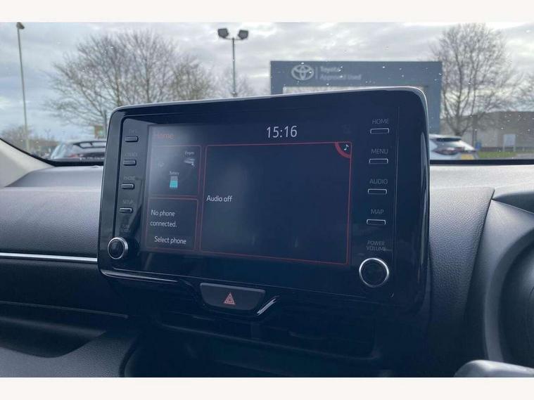 Adaptive cruise control, Adjustable speed limit with speed warning, Bluetooth connectivity, Colour binocular inspired displays with digital speedometer, E-call, Electric power steering, Hybrid energy display, Multi information display switches on steering wheel, Reversing camera, Smartphone integration with Apple CarPlay and Android auto, Tailgate, Voice recognition, Vehicle Stability Control (VSC), 4 speakers, 8" Multimedia display touch screen, USB connection, Acoustic windscreen glass, Auto windscreen wipers, Automatic headlights, Body coloured door mirrors, Electric adjustable heated door mirrors, Follow me home headlights, Front auto power windows with anti jam protection, Full LED rear lights, LED daytime running lights, LED front fog lights, LED front light guide, LED Headlights, LED High mounted stop lamp, LED Indicators, LED rear light guide, Manual headlight levelling, Painted chequered front grille, Rain sensor, Rear auto power windows with anti jam protection, Rear privacy glass, Rear side wing doors, Rear spoiler, Rear wiper, Shark fin antenna, Turning signal integrated indicators in door mirrors, Variable front intermittent wipers, 3 adjustable rear headrests, 3 seat bench in 2nd row, 3 spoke leather steering wheel, 60/40 split folding rear seat, Active headrests, Adjustable boot height, Auto air conditioning, Coat hooks in rear grab handles, Cup holders (2 front & door), Data Communication Module (DCM) connected services, Fabric upholstery, Front armrest, Glovebox, Grey roof lining, Height adjustable driver's seat, Isofix seat fixing, Leather gearshift, Pollen filter, Shopping bag hooks, Single front passenger seat, Tilt/telescopic steering column, 3 point seatbelts on all rear seats, ABS+EBD+Brake assist, Electronic parking brake, Emergency brake light system (EBS), Front passenger airbag on/off switch, Front seatbelt reminder, Hill start assist control (HAC), Rear child proof door locks, Rear seat belt reminder, Supplemental Restraint System (SRS) 8 airbags: Driver & passenger's airbags, dual side curtain airbags, side impact airbags, front centre airbag, Toyota Safety Sense 2, Precollison + Night time Pedestrian & Cyclist Detection, Lane Trace Assist, Auto High Beam, Intelligent ACC & Road Sign Assist, Tyre pressure warning system, 2x Master key, Alarm/immobiliser, Remote powered central double locking doors, Soft touch instrument panel, Space saver spare wheel,