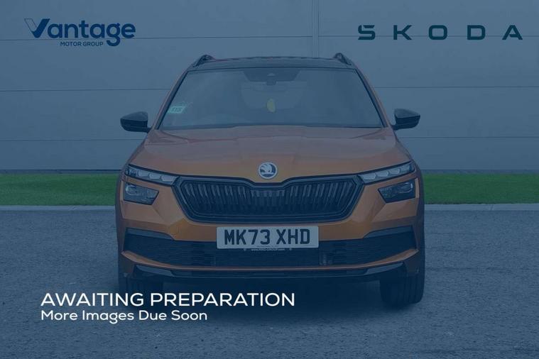 Amundsen satellite navigation with 9.2" glass colour touchscreen display, web radio, voice control and traffic sign recognition, Bluetooth system, E-call, Front assist system, Gesture control, PAS, Service indicator, Speed limiter, Wireless Smartlink for Apple CarPlay (wired for Android Auto), 8 Speakers, Auxiliary input socket, DAB Digital radio, Black door mirrors, Black radiator grille, Black rear diffuser, Body colour bumpers, Body colour door handles, Body colour roof spoiler, Boot lettering in black, Chrome grille surround, Dimming rear view mirror with black surround, Electrically adjustable and heated door mirrors, Fixed panoramic sunroof with black roof rails, Front and rear electric windows, Front sport bumper, Full LED headlights with adaptive front light system, cornering function, fog lights and dynamic indicators, Headlight range control, Heated rear window, High functionality rear led lights with dynamic indicators, KAMIQ Door sills, LED daytime running lights, LED third brake light, Light sensors, Monte carlo plaque, Privacy glass, Rain sensor, Rear fog lights, Rear side wing doors, Rear wiper, 12V Accessory socket in centre console, 3 seat bench in 2nd row, Aluminium pedals, Black ceiling for black/beige interior, Black roof lining, Chrome inner door handles, Cloth upholstery, Front head restraints, Glove compartment with illumination, Ice scraper, Isofix child seat fittings on outer rear seats, ISOFIX on front passenger seat, Leather gear lever, Manual lumbar support for front seats, Rake/reach adjustable steering wheel, Reading lights, Single front passenger seat, Sports seats, Sun visors with illumination on front passenger, Textile floor mats, Third rear headrest, Top tether for front passenger seat, Umbrella in driver's door, 3x3 point rear seatbelts, Airbags - driver and front passenger, ESP, Front passenger airbag deactivation switch, Front side airbags with curtain airbags, Hill hold control, Manual parking brake, Manual rear child locks, One tone horn, Rear disc brakes, Seatbelt reminder for driver an co-driver, Traction control, Tyre pressure monitor, Anti-theft alarm system with interior monitoring, backup horn, towing protection and remote central locking with SAFE system, Anti-theft wheel bolts, Electronic engine immobilizer, Chrome air vent surrounds, 18" Vega alloy wheels in black,