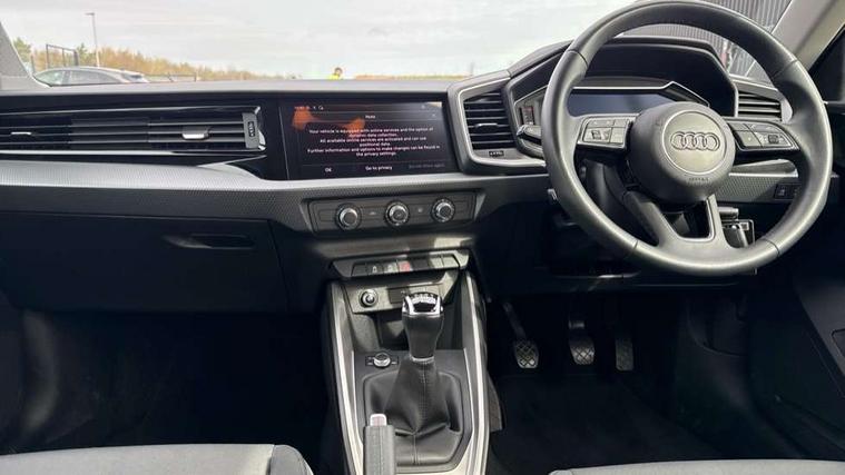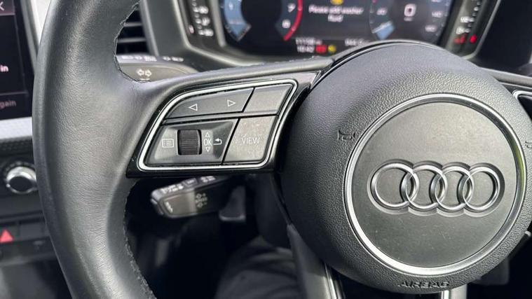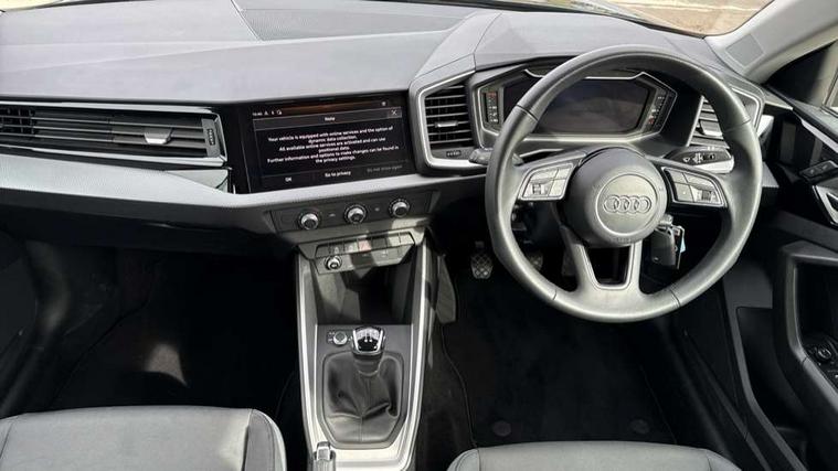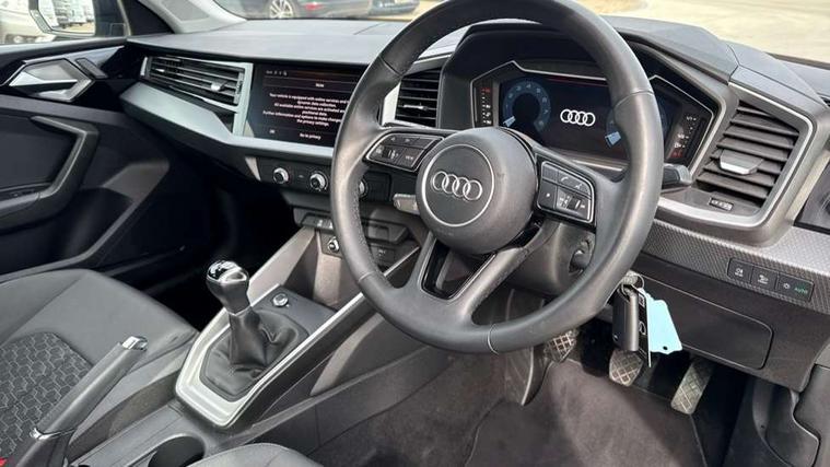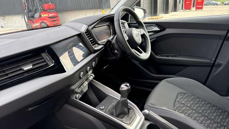 10.25" Digital instrument cluster display classis style instrument dials + speed, odometer, time, outside temperature, telephone menu + fuel level warning, Audi smartphone interface with connect compatible smartphone via USB directly MMI display + Nav, music, third party apps controlled via MMI controller, Automatic start/stop system, Bluetooth interface, Cruise control, Driver's information system, Electromechanical power steering, Emergency e-call, Lane departure warning system, Rear parking sensor, Service interval indicator, Speed limiter, Voice control system, Washer fluid level indicator, Dynamic suspension, 2 x USB type C connection points, 6 passive loudspeakers, DAB Digital radio, MMI radio plus with 10.1" colour MMI display screen and MMI touch, Auto dimming rear view mirror, Body coloured bumpers, Body coloured door mirrors, Electric front and rear windows, Electrically adjustable, heated, folding door mirrors with integrated LED side indicator, Front side air inlets in grained matt black and C frame in anthracite black, Heat insulating glass windscreen and side windows, Heated rear windscreen, High level LED brake light, LED headlights with LED rear lights + dynamic rear indicators + headlight adjustment and high beam, turning light + LED daytime running lights, Radiator grille and rear diffuser in matt anthracite black, Radiator protective grille frame in matt aluminium silver, Rain and light sensors, Rear fog lights, Rear side wing doors, Rear wiper, Side front spoiler lips in grained matt black, 12V socket in centre console with two cup holders, 3 rear seats with headrests, 3 seat bench in 2nd row, 3 spoke leather multifunction plus steering wheel, 40:60 Split folding rear seat or folded fully, Black front and rear floor mats, Door sill trims with aluminium inlay, Driver and passenger seat with manual height adjust with forward and backwards adjustment, Front head restraints, Front passenger seat, Grey cloth headlining, Height and reach adjustable steering wheel, ISOFIX child seat mounting for front passenger and outer rear seats including top tether attachment point of outer rear seats, Leather gear knob with aluminium trim, Leather handbrake grip, Luggage compartment light with front and rear reading lights, Manual air conditioning, Manually adjustable lumbar support in front seats, Novum cloth upholstery with front sport seats, Luggage compartment pack - A1, 3x3 point rear seatbelts, Audi pre-sense front with pedestrain and cyclist recognition, Brake assist function, Driver and front passenger airbag with front side and head airbags, Electronic Stability Control including ABS, EBD, ASR and EDL, Front passenger airbag deactivation switch, Hill hold assist, Manual rear child locks, Seatbelt height adjustment for front seats, Seatbelt monitoring, Tyre pressure warning light, Warning triangle and first aid kit, Anti theft alarm, Anti theft wheel bolts and loose wheel warning, Immobiliser, Remote central locking with 2 foldaway keys, Aluminium trim for control switches, air vents and digital instrument cluster, Black dashboard, Silver grey accent areas including air vents, door handle recesses and centre console in diamond paint finish, Slate grey inlays polygon structure in fine paint finish,