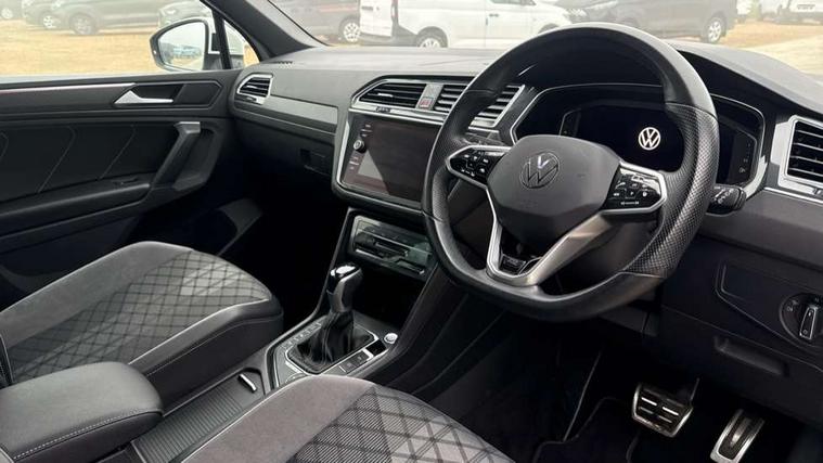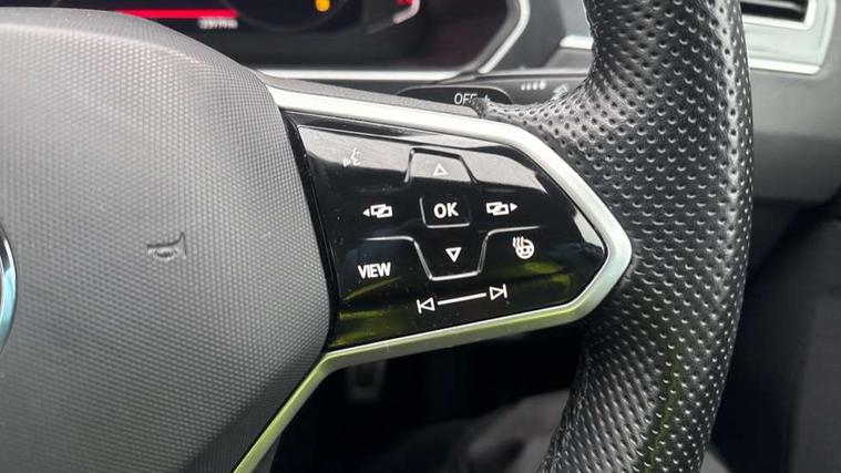 Adaptive cruise control ACC stop and go including speed limiter, App-Connect incl. App-Connect Wireless for Apple CarPlay and Android Auto, Bluetooth phone integration system, Distance control assist, Driver alert system, Driver profile selection, Dynamic road sign display, eCall emergency call system, Electromechanical speed sensitive power steering, Engine start/stop button, Lane keeping system Lane Assist, Lights on warning, Multifunction front facing camera, Outside temperature display, Premium multifunction display with multi colour display, Remote control boot opening, Rev counter, Revision / skills operating concept travel assistant, Service interval indicator, Speed limit display, Start/stop system with regenerative braking, Trip computer, Warning sound and light for doors and tailgate open, ACC - Adaptive chassis contol with adaptive dampers, All wheel drive - 4Motion, Battery regeneration during braking, XDS electronic differential lock for improved traction and handling, 4 X 20 watt output, 8 Speakers, Diversity antenna for FM reception, Radio, SD card slot, Simultaneous pairing of 2 compatible mobile devices, SMS functionality - read, compose and send SMS messages using touch-screen display, Title and cover art display, Auto dimming interior rear view mirror, Automatic headlight control system, Body colour door handles, Body coloured bumpers in R Line style, Body coloured door mirrors with integrated indicators, Chrome moldings on the side windows, Coming/leaving home lighting function, Dynamic headlight range control, Front and rear electric windows, Heated rear window, High level 3rd brake light, Laminated safety glass windshield, heat and sound insulating, LED headlamps with LED separate daytime running light and dynamic cornering light, LED rear combination lamps, LED rear number plate lights, License plate carrier in front and rear, Poor weather light and cornering light, Privacy glass for rear side windows and rear window, R Line body kit, R Line side sills, Rain sensor windscreen wipers, Rear exhaust tailpipe, Rear fog lamp, Rear side wing doors, Rear spoiler in R style, Rear windscreen washer and wiper with interval delay, Side and rear windows in heat insulating glass, Trailer Stability Programme, Unique R Line badging, Windscreen wipers/ intermittent wipe + 4 position delay, 12V outlet in center console rear and in luggage compartment, 12V outlet in front and tray, 2 cup holders in front, 2 LED front reading lights, 2 LED rear reading lights, 3 bench rear seats in 2nd row, 3 rear headrests, 4 load lashing points, 40:20:40 split folding rear seats, Air Care Climatronic 3 zone automatic climate control with enhanced air filter and controls in the rear, Backrest release for left front seat, Black headlining, Brushed stainless steel pedals and footrest, Carpet mats in front and rear with decorative stitching in Gray, Climate control unit rear with touch function, Door and side trim panel in foam film, insert in leatherette, Front centre armrest, Front footwell illumination, Front seats head restraints (x-adjustment), Height adjustable front seats, Height/reach adjust steering wheel, Instrument lighting white adjustable panel illumination, Interior light with delay, Isofix Preparation 2 Rear child seats, Leather gear knob, Lockable cooled glovebox, Luggage compartment lighting, Luggage net, Rear bench seat asymetrically split folding, longitudinally movable and folding with load-through hatch and center armrest, Remote unlocking for rear seat backrest, Removable luggage cover, Removable rear headrests, Safety optimised front head restraints, Single front passenger seat, Sliding/reclining rear seats, Standard rear seat release, Storage compartment in driver's door, Storage compartment in passenger's door, Storage compartment in rear doors, Storage compartments in luggage area left and right, Storage tray on dashboard, Sun visors with illuminated vanity mirrors, Top front comfort seats, Variable boot floor, height adjustable and removable, Driver assistance pack plus - Tiguan DSG, 3 point seat belt for centre rear seats, 3 point seat belts with seat belt pretensioners for the outer rear seats, Active bonnet, Curtain airbags for front and rear passengers, Driver/Front Passenger airbags, Drivers knee airbag, Electronic parking brake with auto hold, Electronic Stability Control with driver steering recommendation, ABS, ASR, EDL, EDTC and trailer stabilization, Front assist with autonomous emergency braking (for Adaptive Cruise Control ACC up to 130 mph), Front disc brakes, Front passenger airbag deactivation, Front side airbags, Height adjustable front 3 point seatbelts + pretensioners, Hill hold control, Manual child proof rear door locks, Pedestrian monitoring system, Power assisted brakes, Proactive passenger protection system in combination with front assist, Rear disc brakes, Rigid safety cell with front and rear crumple zones, Two tone horn, Warning sound and light for front seat belts if unfastened, Anti theft alarm system with interior monitoring, backup horn and towing protection, Anti theft wheel bolts, Electronic engine immobiliser, 20" Misano black with diamond turned surface alloy wheels with Airstop tyres, Tool kit,