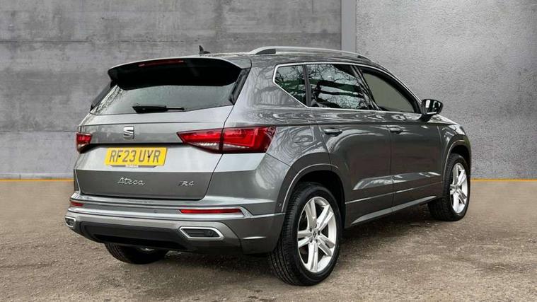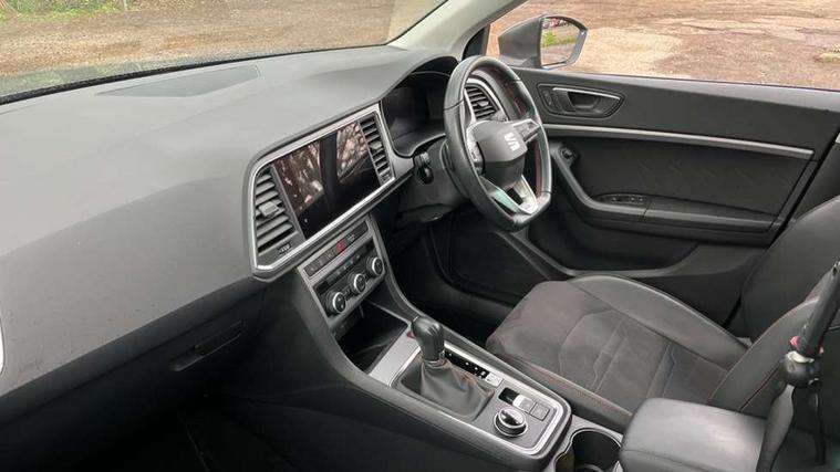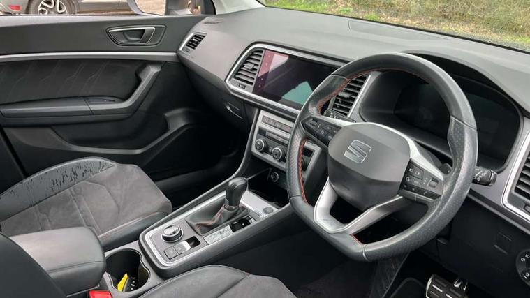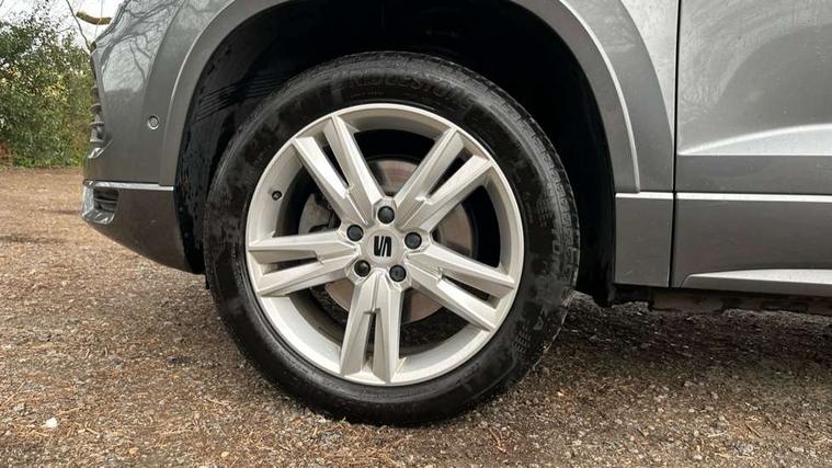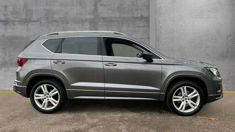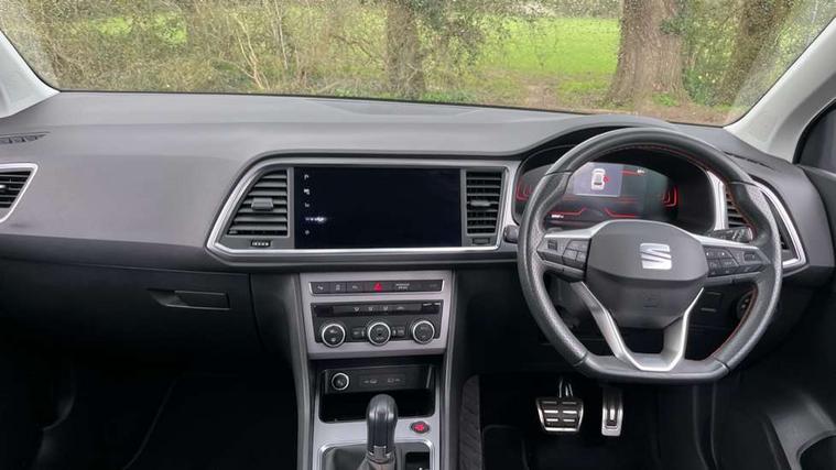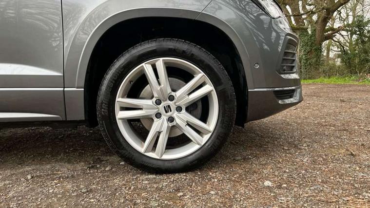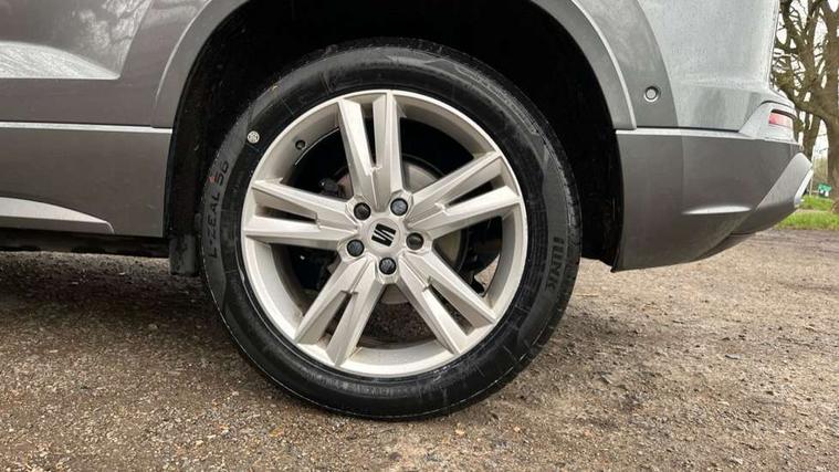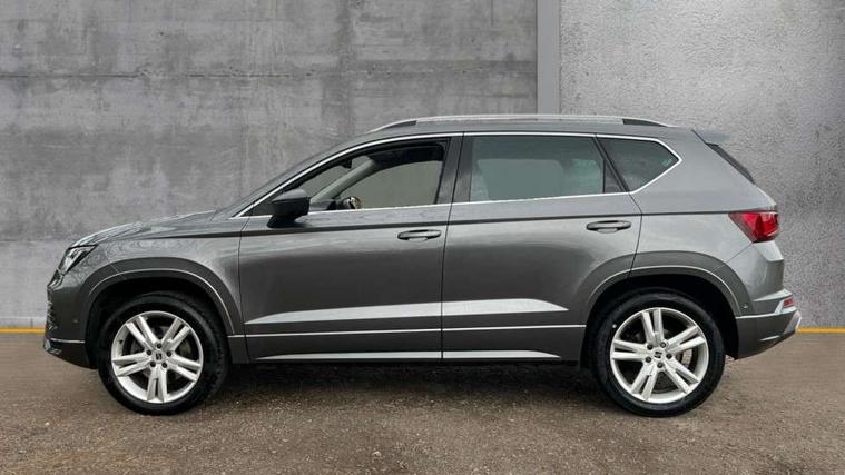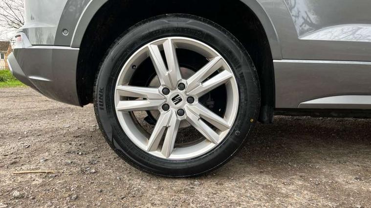 8" Digital cockpit, Colour multi-function on board computer display, Cruise control system with speed limiter, E-call, Outside temperature gauge, Progressive power assisted steering, SEAT drive profile with driving experience button - Normal, Sport, Eco, Individual, off-road and snow modes, gearshift, steering and throttle response, Self parking functionality (includes front and rear parking sensors), Start/stop system, Tailgate, Trip computer, Wireless full link smartphone integration, Wireless phone charger, Steering wheel mounted audio/phone controls, Body colour bumpers, Body coloured wheel arch surrounds, Chrome front grille frame, Chrome roof rails, Chrome side window trim, Dark tinted rear windows, Daytime running lights, Door mirrors with welcome light silhouette, Dynamic headlight range control with self adjusting whilst driving, Electric adjustable/heated/folding door mirrors, Front and rear electric windows, Full LED headlamps with lens and LED front fog lamps with cornering function, Illuminated aluminium front door sill, LED rear tail lights with dynamic indicators, Rear fog lights, Rear side wing doors, Rear wash/wipe, Simulated exhaust pipes in chrome frame, Third brake light, Variable front intermittent wipers, 12V socket in front, 3 seat bench in 2nd row, 60/40 split folding rear seat, Aluminium pedals, Drawer under right front seat, Dual zone climate control, Front and rear head restraints, Front centre armrest, Front seat back storage pockets, Height adjustable driver and passenger seat with lumbar adjustment, ISOFIX points in outer rear seats with top tether anchorage points, Leather steering wheel and gear knob, Microsuede upholstery with front comfort seats, Rear armrest and easy back seat release mechanism from boot, Single front passenger seat, Steering wheel mounted gearshift paddles, Convenience pack - Ateca, Interior lighting pack - Ateca, Navigation system pack with DAB - Ateca, 3x3 point rear seatbelts, ABS, Traction control system (TCS), Electronic stability control (ESC) and Electronic differential lock system (XDS), Airbags - Driver and front passenger airbag with deactivation, front side, two curtain and driver's knee airbags, Electric parking brake with auto hold function, Front and rear seatbelt reminder, Front assist with autonomous emergency braking, Hill hold control, Manual rear child locks, Single tone horn, Tiredness recognition system, Traction control, Tyre pressure monitoring system, Alarm, Keyless entry, Locking wheel bolts, Remote central locking, Chrome interior detailing, 18" Brillaint silver alloy wheels,
