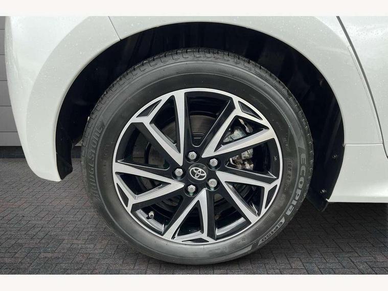 Adaptive cruise control, Adjustable speed limit with speed warning, Bluetooth connectivity, Colour binocular inspired displays with digital speedometer, E-call, Electric power steering, Hybrid energy display, Multi information display switches on steering wheel, Reversing camera, Smartphone integration with Apple CarPlay and Android auto, Tailgate, Voice recognition, Vehicle Stability Control (VSC), 4 speakers, 8" Multimedia display touch screen, USB connection, Acoustic windscreen glass, Auto windscreen wipers, Automatic headlights, Body coloured door mirrors, Electric adjustable heated door mirrors, Follow me home headlights, Front auto power windows with anti jam protection, Full LED rear lights, LED daytime running lights, LED front fog lights, LED front light guide, LED Headlights, LED High mounted stop lamp, LED Indicators, LED rear light guide, Manual headlight levelling, Painted chequered front grille, Rain sensor, Rear auto power windows with anti jam protection, Rear privacy glass, Rear side wing doors, Rear spoiler, Rear wiper, Shark fin antenna, Turning signal integrated indicators in door mirrors, Variable front intermittent wipers, 3 adjustable rear headrests, 3 spoke leather steering wheel, 60/40 split folding rear seat, Active headrests, Adjustable boot height, Auto air conditioning, Coat hooks in rear grab handles, Cup holders (2 front & door), Data Communication Module (DCM) connected services, Fabric upholstery, Front armrest, Glovebox, Grey roof lining, Height adjustable driver's seat, Isofix seat fixing, Leather gearshift, Pollen filter, Shopping bag hooks, Single front passenger seat, Tilt/telescopic steering column, 3 point seatbelts on all rear seats, ABS+EBD+Brake assist, Electronic parking brake, Emergency brake light system (EBS), Front passenger airbag on/off switch, Front seatbelt reminder, Hill start assist control (HAC), Rear child proof door locks, Rear seat belt reminder, Supplemental Restraint System (SRS) 8 airbags: Driver & passenger's airbags, dual side curtain airbags, side impact airbags, front centre airbag, Toyota Safety Sense 2, Precollison + Night time Pedestrian & Cyclist Detection, Lane Trace Assist, Auto High Beam, Intelligent ACC & Road Sign Assist, Tyre pressure warning system, 2x Master key, Alarm/immobiliser, Remote powered central double locking doors, Soft touch instrument panel, Space saver spare wheel,