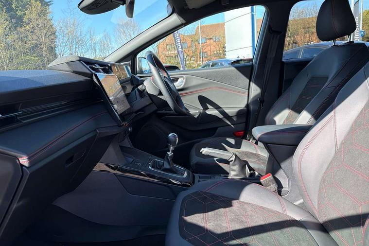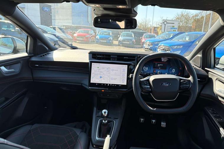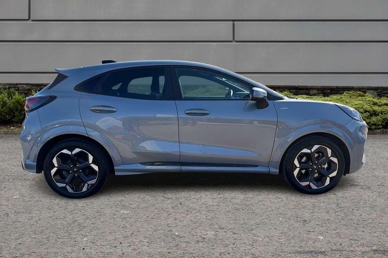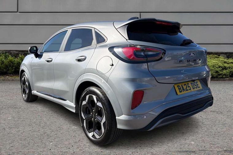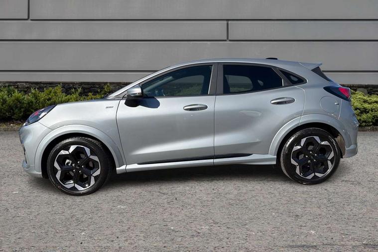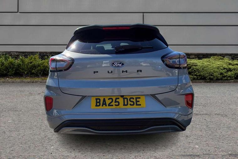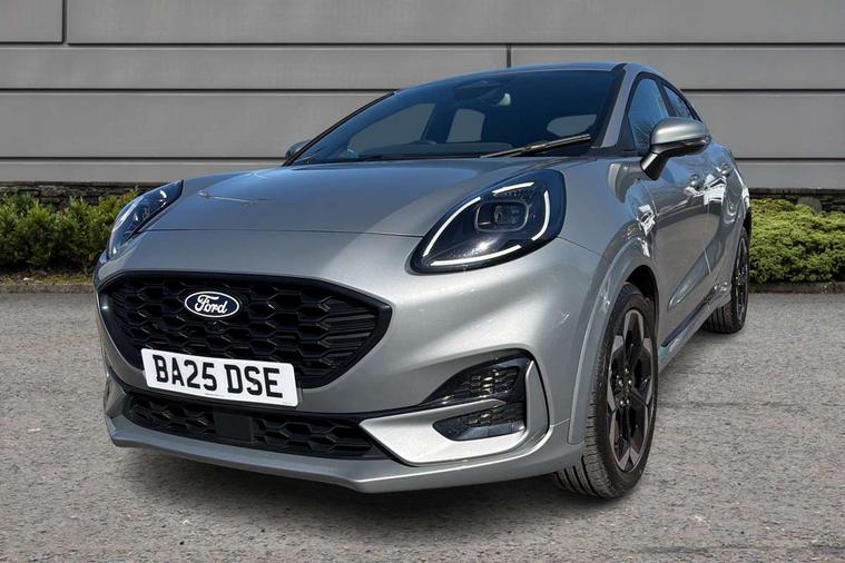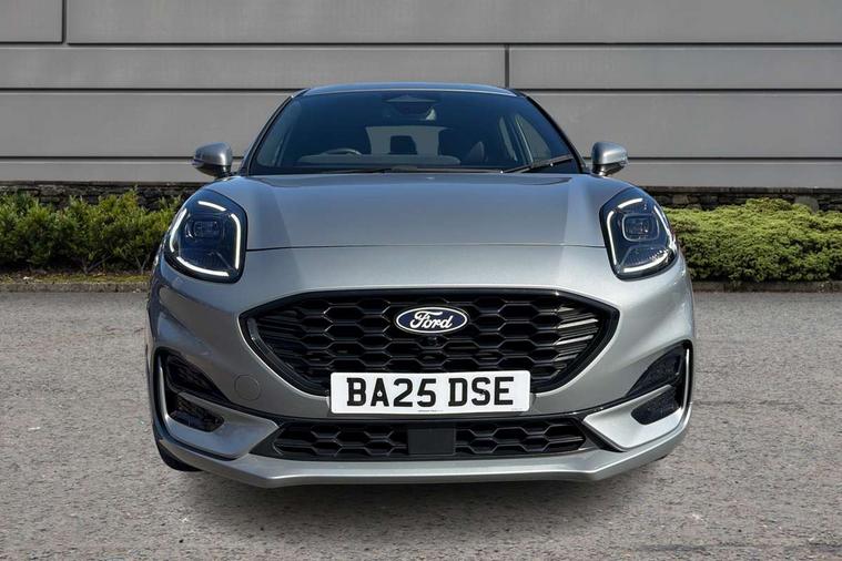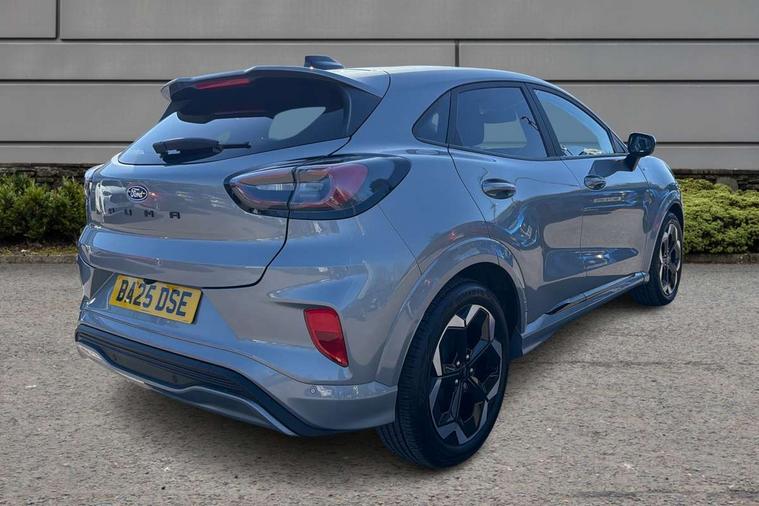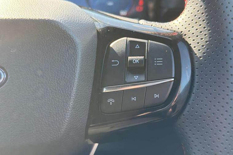 Driver impairment monitor, Emergency call service, Ford easy fuel, Full digital 12.8" instrument cluster, Lane keeping aid with lane departure warning, Power assist steering, Selectable drive modes(Normal, Eco, Sport, Slippery and Trail), Speed sign recognition, Sport suspension, 12" landscape touchscreen display with wireless apple car play and android auto premium B&O audio system with 10 speakers, Ford pass connect and emergency assistance, Ford SYNC4 with connected navigation, Automatic headlights with rain sensing wipers and auto high beam, Front fog lamps, LED daytime running lights, LED rear lamps, LED third brake light, Power foldable heated door mirrors with puddle lamps and puma logo protection, Quickclear heated windscreen, Rear privacy glass, Rear side wing doors, Rear wiper, ST-Line X body styling kit, 3 seat bench in 2nd row, 4 way lumbar support for passenger seat, Centre console with armrest and stowage, Electronic automatic temperature control (EATC), Ford megabox extended bootspace, Front and rear head restraints, Front floor mats, Manual 4 way driver seat adjust with lumbar adjustment, Single front passenger seat, ST-Line X Premium synthetic leather upholstery, Comfort pack with power lift tailgate - Puma, 3 rear seatbelts, Child safety lock, Electronic stability control (ESC) and hill start assist, Pre-collision assist with autonomous emergency braking, pedestrian/cyclist detection & post-collision braking, Tyre pressure monitoring system (TPMS), Thatcham alarm,