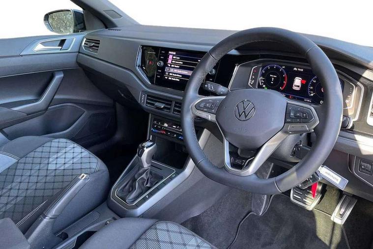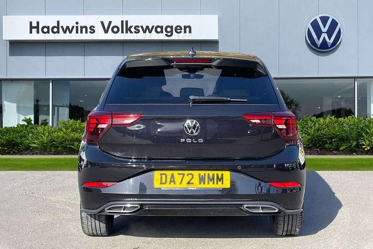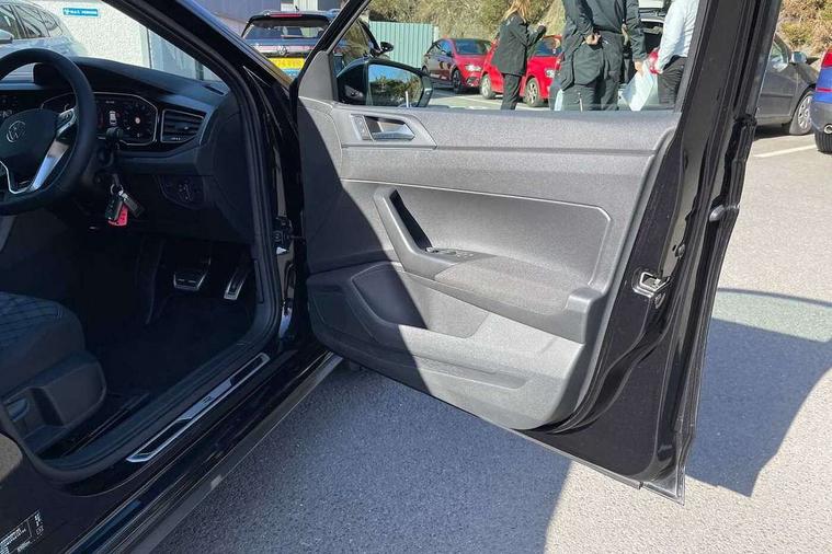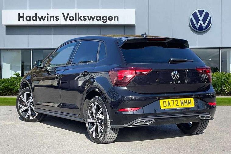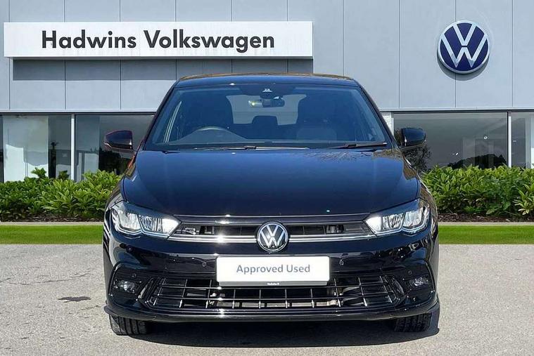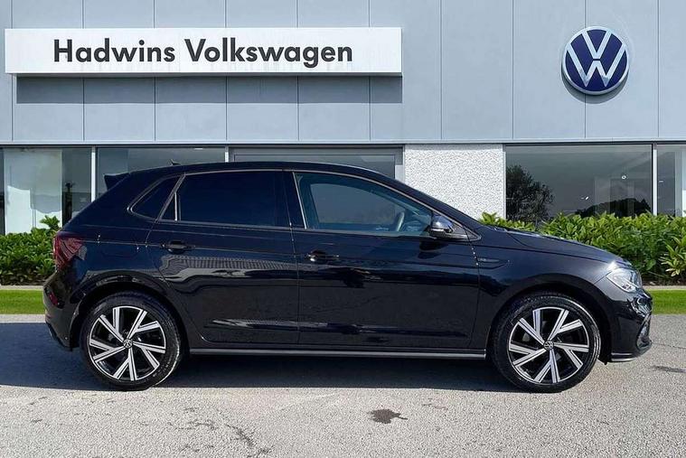 Adaptive cruise control with follow-to-stop and speed limiter, Bluetooth mobile phone interface, Digital Cockpit Pro with 10.25" Display, Driver alert system, Dynamic road sign display, Emergency call service, Power assisted speed sensitive steering, Preparation for We connect and We connect plus, Speedo and rev counter, electronic odometer, trip, service interval display and fuel gauge, Standard rear axle, Travel Assist - Lane keeping system and traffic jam assist, Travel assist including emergency assist, Trip computer, Warning signal and warning light for front and rear seatbelts not fastened, Washer fluid level indicator, Wireless app connect, Front wheel drive, Rear shock absorpion, Start-stop system with battery regeneration (recuperation - energy recovery during braking), DAB Digital radio, Diversity antenna for FM reception, Front and rear 6 speakers, Body colour bumpers, Body colour door handles, Electric front windows, Front scuff plates with R-Line logo, Heat insulating darkened glass in side and rear windows, Heat insulating glass windscreen, Power folding adjustable/heated exterior mirrors and front passenger exterior mirror lowering function, Rear electric windows, Rear fog light, Rear side wing doors, Rear windscreen washer and wiper with interval delay, Third brake light, 12V power socket in centre console, 2 USB-C ports in the front, 2 USB-C charging sockets on the center console in the rear, 3 rear head restraints, 60/40 split folding rear seat and rear seat bench not split, Air care climatronic air conditoning system with active combination filter and 2-zone temperature control, Black roof lining, Chrome plated radiator grille inserts, air vent surrounds and light switch surrounds, Door and side trim panel, Driver and front passenger seat height adjustment, Driver/passenger sunvisors with illuminated vanity mirrors, Front + rear carpet mats in recycled material, Front centre armrest, Front footwell illumination, Front seat backrest storage pockets, Front sports comfort seats, Handbrake lever handle in leather, Headliner in recycled material, Isofix child seat preparation easy-fit (for two outer rear seats, and front passenger seat) compatible with I-size, Karoso artvelours cloth upholstery, Leather trimmed gear knob, LED interior light with switch off delay and dimmer, 2 reading lights front and rear, Luggage compartment cover, Luggage compartment floor, Luggage compartment lighting, Lumbar adjustment for front seats, Single front passenger seat, Stainless steel pedals, Standard pedal cluster, Three spoke leather wrapped multifunction steering wheel with shifting paddles, Light and sight pack - Polo R-Line/Black Edition, 3 point height adj front seatbelts + pretensioners, 3x3 point rear seatbelts, ABS, Driver and front passenger airbag with front passenger airbag deactivation, Drivers and front passengers safety optimised head restraints, ESC (Electronic stability control) + EDL (Electronic Differntial lock) and ASR (Traction control), Extended and predictive pedestrian/ cyclist protection, Front curtain and side airbags with center airbag, Front/rear disc brakes, Hill hold control, Manual child lock in rear doors, Single tone horn, Tyre pressure loss indicator, Alarm with interior protection, Anti-theft alarm system with interior monitoring, backup horn, and towing protection, Anti-theft wheel bolts, Electronic engine immobiliser, Chrome applications on rotary light, mirror adjustment, window regulator switches, outlet with frame in black, Dark grey anodised matt decorative inserts in dash and front door panels, Low rolling resistance tyres,