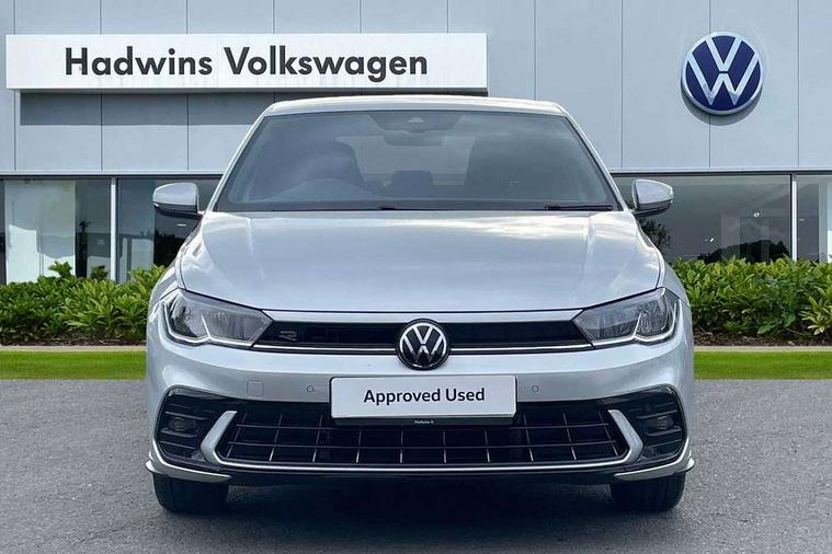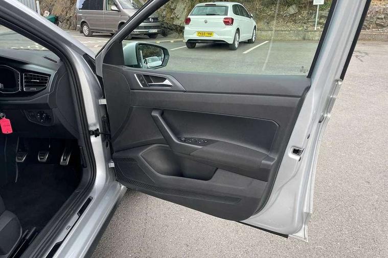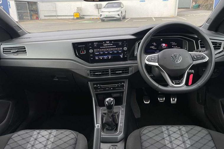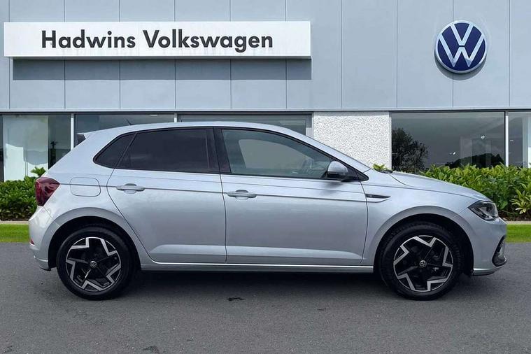 Advanced driver attention and drowsiness monitor, Bluetooth mobile phone interface, Digital Cockpit Pro with 10.25" Display, Dynamic road sign display, Emergency call service, Mobile phone preparation with inductive charging function, Multifunction camera, Power assisted speed sensitive steering, Predictive adaptive cruise control without follow-to-stop and speed limiter, Preparation for We connect and We connect plus, Speedo and rev counter, electronic odometer, trip, service interval display and fuel gauge, Standard rear axle, Travel Assist - Lane keeping system and traffic jam assist, Travel assist including emergency assist, Trip computer, Warning signal and warning light for front and rear seatbelts not fastened, Washer fluid level indicator, Wireless app connect, Front wheel drive, Rear shock absorpion, Start-stop system with battery regeneration (recuperation - energy recovery during braking), DAB Digital radio, Diversity antenna for FM reception, Body colour bumpers, Body colour door handles, Electric front windows, Front scuff plates with R-Line logo, Heat insulating glass windscreen, Power folding adjustable/heated exterior mirrors and front passenger exterior mirror lowering function, Rear electric windows, Rear fog light, Rear side wing doors, Rear windscreen washer and wiper with interval delay, Third brake light, 12V power socket in centre console, 2 USB-C ports in the front, 2 USB-C charging sockets on the center console in the rear, 3 rear head restraints, 60/40 split folding rear seat and rear seat bench not split, Air care climatronic air conditoning system with active combination filter and 2-zone temperature control, Black roof lining, Carpet mats, front and rear, Chrome plated radiator grille inserts, air vent surrounds and light switch surrounds, Door and side trim panel, Driver and front passenger seat height adjustment, Driver/passenger sunvisors with illuminated vanity mirrors, Front centre armrest, Front footwell illumination, Front seat backrest storage pockets, Front sports comfort seats, Handbrake lever handle in leather, Headliner in recycled material, Isofix child seat preparation easy-fit (for two outer rear seats, and front passenger seat) compatible with I-size, Karoso artvelours cloth upholstery, Leather trimmed gear knob, LED interior light with switch off delay and dimmer, 2 reading lights front and rear, Luggage compartment cover, Luggage compartment floor, Luggage compartment lighting, Lumbar adjustment for front seats, Multifunction steering wheel, Single front passenger seat, Stainless steel pedals, Standard pedal cluster, Light and sight pack - Polo R-Line/Black Edition, 3 point height adj front seatbelts + pretensioners, 3x3 point rear seatbelts, ABS, Driver and front passenger airbag with front passenger airbag deactivation, Drivers and front passengers safety optimised head restraints, ESC (Electronic stability control) + EDL (Electronic Differntial lock) and ASR (Traction control), Extended and predictive pedestrian/ cyclist protection, Front curtain and side airbags with center airbag, Hill hold control, Manual child lock in rear doors, Single tone horn, Tyre pressure loss indicator, Alarm with interior protection, Anti-theft alarm system with interior monitoring, backup horn, and towing protection, Anti-theft wheel bolts, Electronic engine immobiliser, Chrome applications on rotary light, mirror adjustment, window regulator switches, outlet with frame in black, Dark grey anodised matt decorative inserts in dash and front door panels, 16" Coventry alloy wheels, Low rolling resistance tyres,