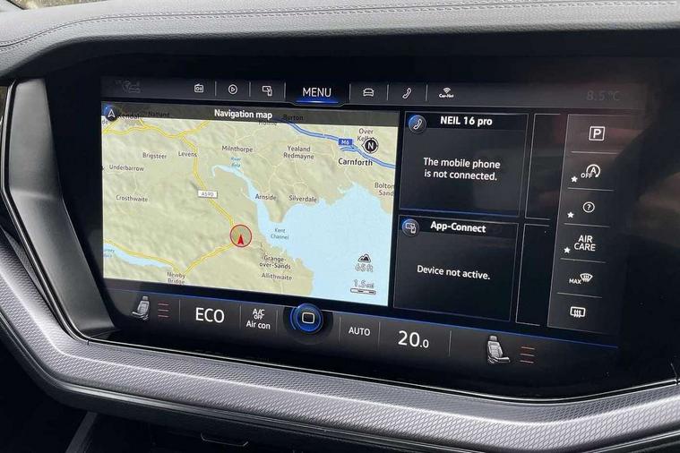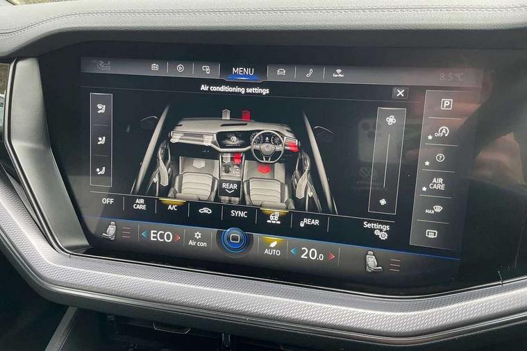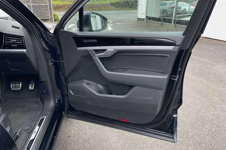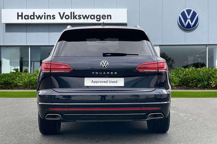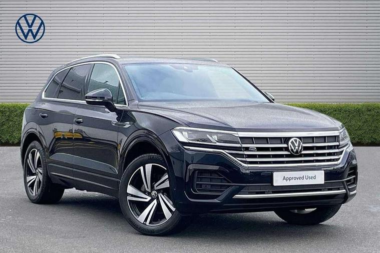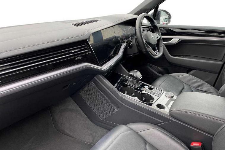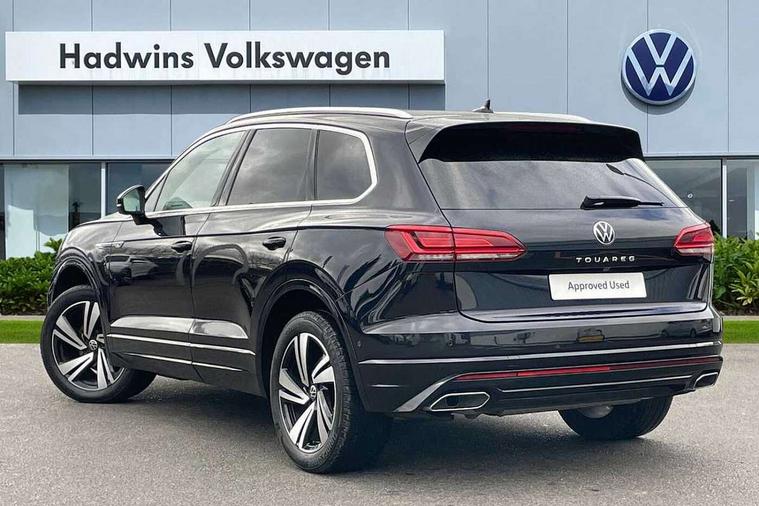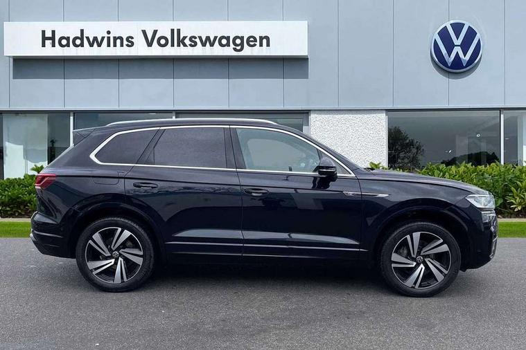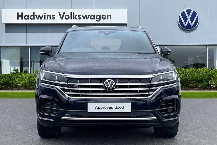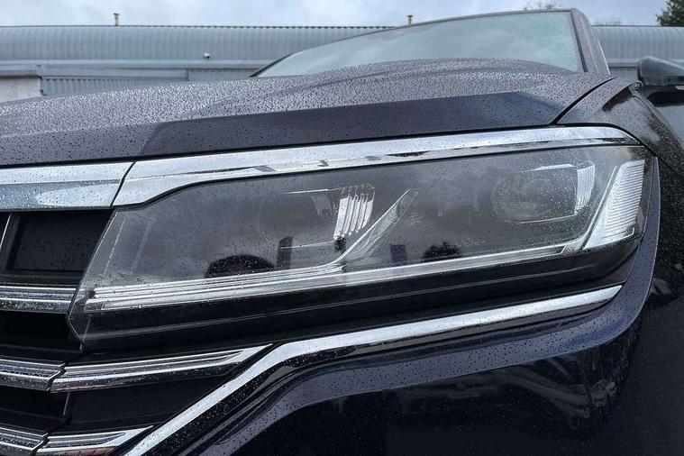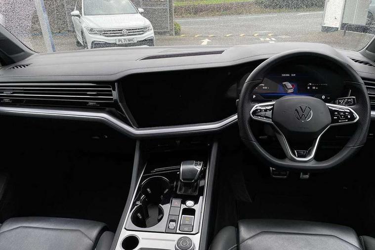 2D/3D map view, ACC - Adaptive cruise control with front assist, forward collision warning, distance monitoring, city emergency brake and speed limiter, Apple car play/Android Auto, Audible and visual fatigue detection system, Bluetooth hands free telephone connection, Car information display, Drive select with Damper control, Driver alert system, Dusk sensor, Dynamic road sign display camera controlled system with visual warning for traffic and road signs, eCall emergency system, Instrument cluster, MirrorLink, Multifunction camera with lane assist, Multifunction computer premium with 7" colour display, One touch indicators with repeat function, Service interval indicator, Speed sensitive power steering, Start/stop system with regenerative braking, Tailgate power latch, Think blue trainer driver tips and journey analysis, Traffic sign recognition, Voice control system, Wireless Smartphone charger, Torsen limited slip differential, DAB Digital radio, Dynamic navigation based on TMC+, Gesture control for infotainment system, Multi device interface (MDI) with illuminated USB-C connection, Music playback - MP3, WMA and AAC files, SD card slot, Simultaneous pairing of 2 compatible mobile devices, SMS functionality - read, compose and send SMS messages using touch-screen display, Title and cover art display, Volkswagen media control, Adaptive low beam for urban and motorway use, Auto dimming rear view mirror, Automatic coming/leaving home lighting function, Automatic headlights, Body colour door handles, Body colour door mirrors with integral indicators, Body coloured wheel arches, C signature gloss black front air intake, Chrome trimmed radiator grille and air intake, Chrome trimmed side windows, Chromed tailpipe on the left and right integrated in the bumper with trapezoid design, Dynamic headlight range control, Electrically power adjustable, heated, folding, auto dimming, front passenger exterior door mirror lowering function, Front and rear electric windows, Galvanised body, Gloss black finish B pillar, Gloss black rear diffuser, Heat insulating glass in side and rear windows, Heated windscreen washer jets, LED rear fog light, LED rear number plate lights, Plastic scuff plates in door apertures, Poor weather light, Puddle lights, Rain sensor, Rear wiper, Silver anodised roof rails, Stainless steel door sill protectors with R-line logo, 12V socket in front and rear centre console and boot, 2 Coat hooks on B pillar, 3 rear head restraints, 3 spoke sport heated leather multi-function sports steering wheel with gear shift paddles - generation 2, 4 way adjustable front head restraints, 4 way electric lumbar support for driver and front passenger, 4 zone climate control, 40:20:40 split folding slide/recline rear seat, B pillar vents, Branded points of interest, Double sun visor for drivier and passenger with LED illuminated vanity mirrors, Electric luggage compartment cover, Folding rear centre armrest with 2 cupholders, Front + rear carpet mats, Front centre armrest with storage box, Front seats with R-line logo on seat backrest, Gear shift indicator, Height/reach adjust steering wheel, Illuminated air conditioned glovebox, Isofix preparation for 2 rear child seats, Jack and tool kit, Leather trimmed gear knob with gloss black inlay/aluminum trim, Leatherette door trim, LED luggage compartment lighting, Load through provision, Luggage compartment with load lashing rings, Plastic loading edge protection, R Line badge, Rear seat remote release levers, Soul black headlining, Stainless steel pedals, Innovision cockpit pack - Touareg, 3 point front seatbelts with pre-tensioners, ABS, Active bonnet, Automatic post collision braking system, Curtain airbags, Driver/Front Passenger airbags, EBD + Brake Assist, EDL, Electronic parking brake with auto hold, ESC with ASR, Front seat side impact airbags, Hill descent control, Hill start assist, Passenger airbag deactivate switch, Seatbelt warning lamp and buzzer, Three 3 point rear seatbelts, Two tone horn, Volkswagen roadside assistance, Warning triangle and first aid kit, Alarm with interior monitoring in cab, backup horn and towing protection, Child security locks for front and rear doors, Electronic engine immobiliser, Remote central locking, High gloss black centre console, Silver wave design aluminium decorative inlays,