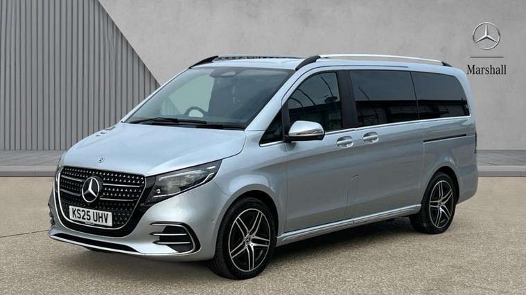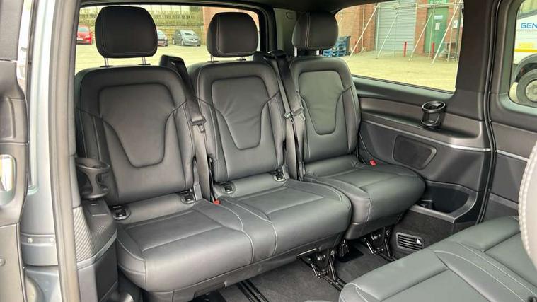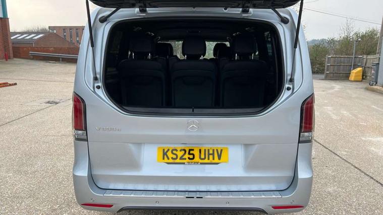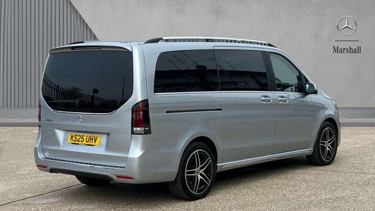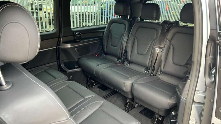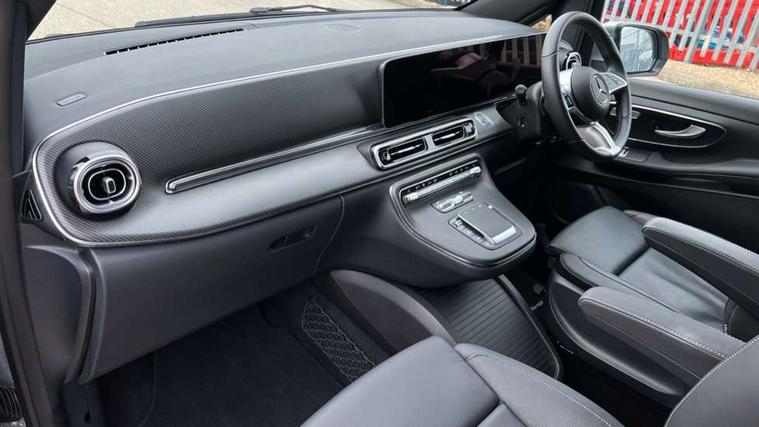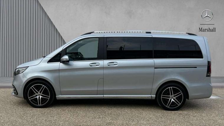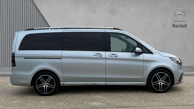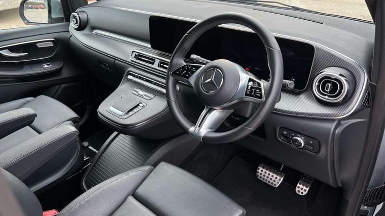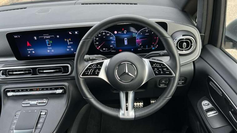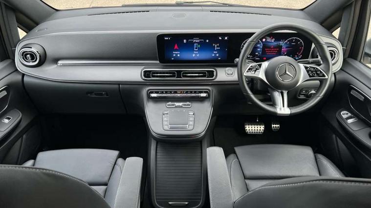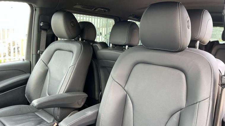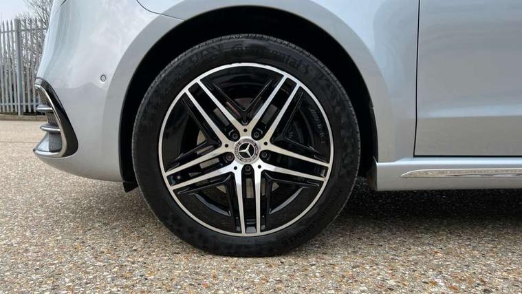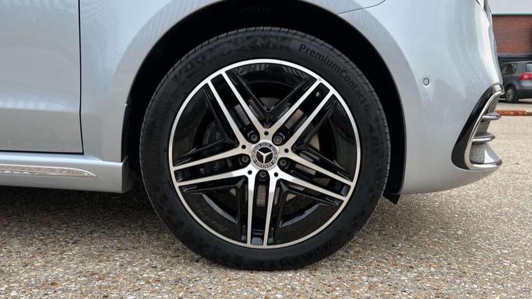 10.25" media display, Active distance assist DISTRONIC, Active lane keeping assist, Agility select with a choice of driving modes (Comfort, ECO, Sport, Individual), Attention assist, Blind spot assist, Comfort closure incl. boot, Crosswind Assist, Cruise control, Direct steer speed sensitive steering, e-Call (emergency call), ECO start/stop function, Intelligent speed assistance, MBUX navigation with 2 x 12.3" widescreen cockpit display with touchscreen, Mercedes me connect, Service indicator assist, Sidewind assist system, Status display for rear seat belts in instrument cluster, Traffic sign assist, Wireless charging for smartphone, 57 litre fuel tank, 9G TRONIC automatic transmission, Absorbed glass mat battery 12 V 92 Ah, 2 USB ports and one SD card slot centre console, 2-way speakers in the front and rear, DAB radio, Frontbass loudspeakers, Adaptive brake lights, Anodised roof rails, Automatic lights, H7 reflection-type headlamps, Heat-insulating windows all round, Heated exterior mirrors, electrically adjustable, with integral indicator lamp, Illuminated exits, Illuminated mirror for sun visor, LED DRL, LED tail lamps/brake lamps and indicators, Multibeam LED headlights with adaptive highbeam assist plus, Privacy glass, Rain sensing windscreen wipers, Separately opening rear window, Tailgate surround lighting, Window in tailgate with wash and wipe system, 3 seat bench in 2nd row, 3 seat bench in 3rd row, Air conditioning - semi-automatic, TEMPMATIC in rear, Ambience lighting 64 colours cockpit + rear passenger compartment, Armrests for seating in the passenger compartment, Carpeting in rear passenger compartment, Centre console with storage/cupholders, Comfort drivers seat, Comfort overhead control panel, Front and rear footwell lighting, Hot air duct to the passenger compartment, Illuminated grab handle with reading light, Lighting in the rear grab handles, Lugano leather upholstery, Lumbar support for driver's and front passengers seat, Multifunction 3-spoke leather steering wheel with touch controls, adjustable in inclination and height, Reach and rake adjustable steering column, Rear head restraints, Single front passenger seat, Stowage nets behind individual seats, THERMOTRONIC automatic climate control, Touchpad, Aerodynamics package - V class, AMG Line package - V class Premium, Comfort seat package - V class, Electric package - V class, Mirror package - V class, Navigation package - V class, Parking package with 360 degree camera - V class, Smartphone integration package - V class, Winter package - V class, 3 point seatbelts on all seats, ABS, Active brake assist, Automatic front passenger airbag deactivation, Centre airbag, Child safety locks in passenger compartment doors, CO2-optimised brake system, Driver and front passenger thorax/pelvis side airbags, Dual airbags for driver and front passenger, Electric parking brake, ESP, Hill start assist, Pedestrian protection, Pre safe, Rear seat belt pretensioners, Seat belt warning device for front passenger seat and rear seats, Seat occupancy sensor, Tyre pressure monitoring system, Window airbags for driver, front passenger and rear passenger, Keyless start, Full wheel covers, Summer and comfort tyres,