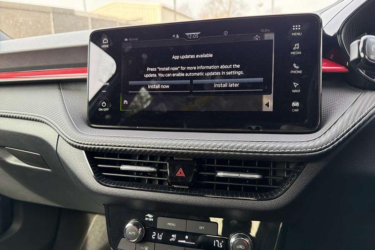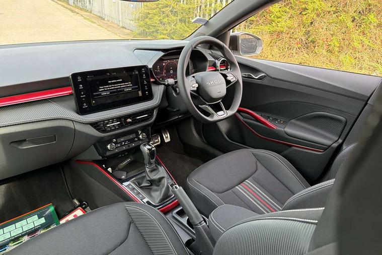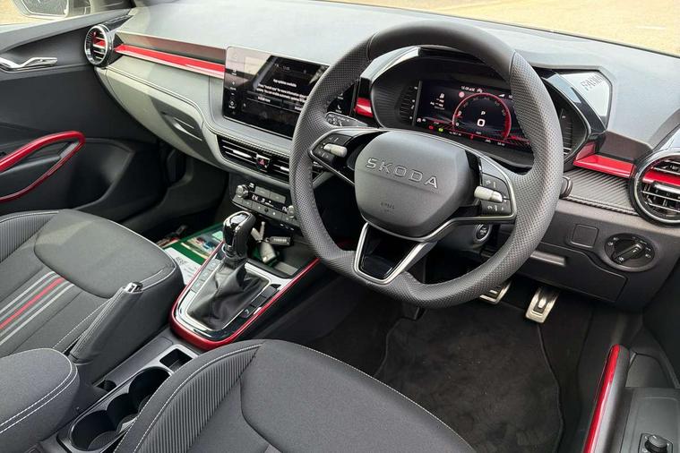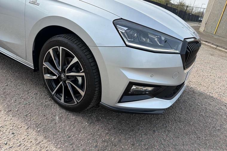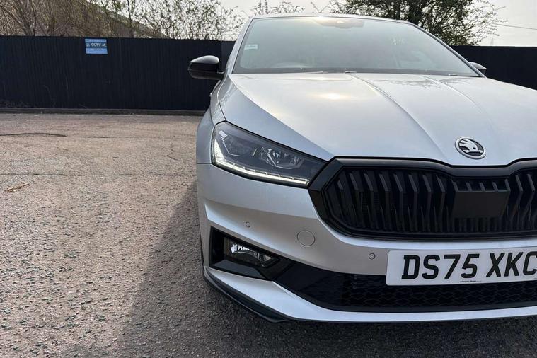 Advanced driver attention and drowsiness monitor, Bluetooth connection, Driver alert system, Electromechanical power steering, Exterior temperature gauge, Service interval indicator, Traffic sign recognition, Virtual cockpit with 10.25" colour display, Wireless SmartLink for Apple CarPlay and Android Auto, 6 Speakers (4 in front and 2 in rear), 9.2" colour display skoda navigation system with voice control and web radio, Auxiliary socket for external MP3 player, DAB digital radio reception, Auto dimming rear view mirror, Black radiator grille, Body coloured bumpers, Chrome window surround, Door mirror integrated indicators, Dynamic headlight range control, Front and rear electric windows, Front window wiper intermittent control, Ice scraper in fuel cap, LED 3rd brake light, LED daytime running lights with coming and leaving home feature, LED rear lights, Monte Carlo badging, Privacy glass, Rear LED fog light, Rear side wing doors, Rear window wiper with washing nozzles, Roof mounted spoiler, SKODA tailgate lettering in black, Sports bumpers, Unique dark chrome design logo on alloy wheels, 2 LED reading lights in front and rear, 3 rear headrests, Aluminium pedals, Backrest split and folding, Black headlining, Central console with fixed cup holder and storage box, Chrome handbrake release button, Door sills with fabia badging, Dual zone air conditioning with climatronic electronic control, Fabric/artificial leather upholstery, Front centre armrest, Front sports seats, Gearshift knob/handle in leather, Hand brake lever handle in leather, Height adjustable front headrests, Height adjustable front seats, Height adjustable steering wheel, ISOFIX and TopTether anchorage points to the outer rear seats, ISOFIX and TopTether on the front passenger seat, Luggage compartment lighting, Manually adjustable lumbar support in front seats, Metallic red interior door handles, Pollen filter, Rear seat bench unsplit, Single front passenger seat, Skoda lettering on steering wheel, Sun visors with mirror and airbag label on passenger side, Textile floor mats, Ticket holder, Umbrella in drivers door, Ambient lighting pack - Fabia Hatchback, Convenience pack - Fabia, Light and view pack plus - Fabia, 3-point height adjustable front seats belts with pretensioner and force limiter, Automatic warning lights in case of crash, Driver and passengers airbag with switch off function, e-Call+, ESC including ABS, MSR, ASR, EDS, HBA and XDS, Front and rear seat belt warning, FRONT ASSIST (AEB City and AEB Inter Urban), Front side airbags, Head airbags, Hill hold control, One tone horn, Pedestrian protection, Three rear 3-points safety seat belts with pretensioner and force limiter including stop function for outer rear seat belts, Tyre pressure monitoring system, Anti-theft alarm system including immobiliser, interior monitoring, backup horn, and towing protection, Central locking with radio remote control, interior controls, SAFE function and 2 foldable keys, Carbon effect door and side trim panels, Carbon effect lower decorative trim with white stitching, Grain satin black central console cover, Monte carlo air vents, Red metallic upper decorative trim, Anti-theft wheel bolts protection, Super-low rolling resistance tyres,