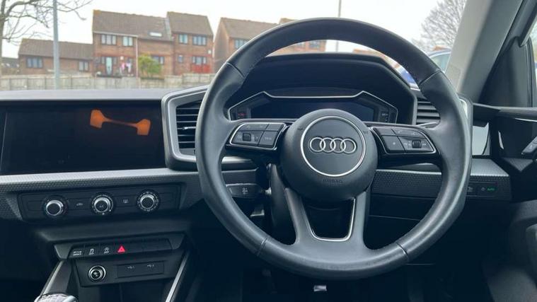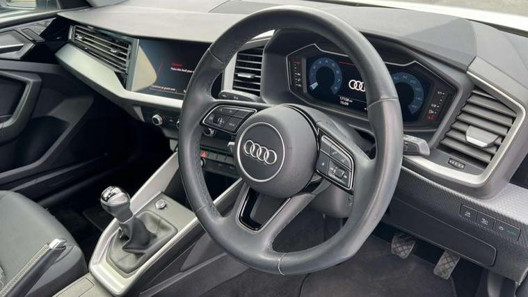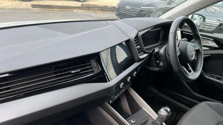 10.25" Digital instrument cluster display classis style instrument dials + speed, odometer, time, outside temperature, telephone menu + fuel level warning, Audi drive select - power steering assistance + engine, Audi smartphone interface with connect compatible smartphone via USB directly MMI display + Nav, music, third party apps controlled via MMI controller, Automatic start/stop system, Bluetooth interface, Cruise control, Driver's information system, Electromechanical power steering, Emergency e-call, Lane departure warning system, Rear parking sensor, Service interval indicator, Speed limiter, Voice control system, Washer fluid level indicator, Dynamic suspension, 2 x USB type C connection points, 6 passive loudspeakers, DAB Digital radio, MMI radio plus with 10.1" colour MMI display screen and MMI touch, Auto dimming rear view mirror, Body coloured bumpers, Body coloured door mirrors, Electric front and rear windows, Electrically adjustable, heated, folding door mirrors with integrated LED side indicator, Front side air inlets in grained matt black and C frame in anthracite black, Heat insulating glass windscreen and side windows, Heated rear windscreen, High level LED brake light, LED headlights with LED rear lights + dynamic rear indicators + headlight adjustment and high beam, turning light + LED daytime running lights, Radiator grille and rear diffuser in matt anthracite black, Radiator protective grille frame in matt aluminium silver, Rain and light sensors, Rear fog lights, Rear side wing doors, Rear wiper, Side front spoiler lips in grained matt black, 12V socket in centre console with two cup holders, 3 rear seats with headrests, 3 seat bench in 2nd row, 3 spoke leather multifunction plus steering wheel, 40:60 Split folding rear seat or folded fully, Black front and rear floor mats, Door sill trims with aluminium inlay, Driver and passenger seat with manual height adjust with forward and backwards adjustment, Front head restraints, Front passenger seat, Grey cloth headlining, Height and reach adjustable steering wheel, ISOFIX child seat mounting for front passenger and outer rear seats including top tether attachment point of outer rear seats, Leather gear knob with aluminium trim, Leatherette handbrake grip, Luggage compartment light with front and rear reading lights, Manual air conditioning, Manually adjustable lumbar support in front seats, Novum cloth upholstery with front sport seats, Luggage compartment pack - A1, 3x3 point rear seatbelts, Audi pre-sense front with pedestrain and cyclist recognition, Brake assist function, Driver and front passenger airbag with front side and head airbags, Electronic Stability Control including ABS, EBD, ASR and EDL, Front passenger airbag deactivation switch, Hill hold assist, Manual rear child locks, Seatbelt height adjustment for front seats, Seatbelt monitoring, Tyre pressure warning light, Warning triangle and first aid kit, Anti theft alarm, Anti theft wheel bolts and loose wheel warning, Immobiliser, Remote central locking with 2 foldaway keys, Aluminium trim for control switches, air vents and digital instrument cluster, Black dashboard, Silver grey accent areas including air vents, door handle recesses and centre console in diamond paint finish, Slate grey inlays polygon structure in fine paint finish,