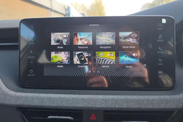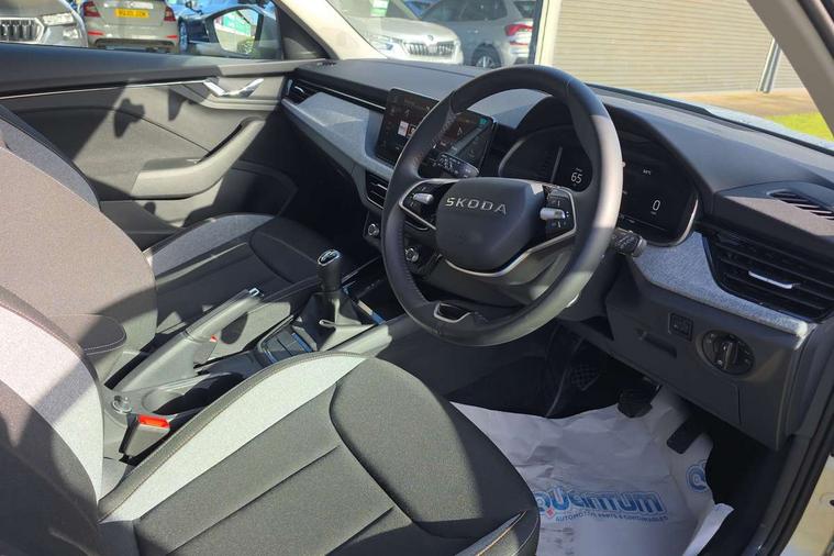 Advanced driver attention and drowsiness monitor, Bluetooth system, E-call, Front assist system, PAS, Rear parking sensors, Rear view camera, Service indicator, Speed limiter, Traffic sign recognition, Virtual cockpit with 10.25" display, Wireless smartlink, 4 USB C ports, 8 Speakers, 9.2" Skoda navigation display, DAB Digital radio, Auto dimming rear view mirror, Automatic headlight control with coming home and leaving home feature, Black roof rails, Body colour bumpers, Body colour door mirrors and handles, Chrome grille surround, Front and rear electric windows, Full LED headlights, Heated rear window, LED brake lights, LED daytime running lights, LED front turning lights, LED high beam, LED low beam, LED third brake light, Rear LED fog light, Rear side wing doors, Rear wiper, Ticket holder inside windscreen, 12V socket in luggage compartment, 3 seat bench in 2nd row, Black hotstamping, Cargo elements, Chrome inner door handles, Driver and passenger sun visors with vanity mirror, Dual zone climate control, Front and rear roof lights, Front centre armrest, Front head restraints, Glove compartment with illumination, Height adjustable driver seat, Height adjustable front passenger seat, Ice scraper, Inner circulation control with pollen filter, ISOFIX on front passenger seat, Isofix preparation for back seats, Krepp recycled decor inserts, Leather gearknob and handbrake lever, Loft cloth upholstery, Manual lumbar support for front seats, Net package and top tether hooks in boot space, Net under rear shelf, Overhead glasses storage compartment, Pocket on the back of both front seats include mobile phone pockets, Rake/reach adjustable steering wheel, Reading lights, Satin black door inserts, Single front passenger seat, Textile floor mats, Third rear headrest, Top tether for front passenger seat, Umbrella in driver's door, 3x3 point rear seatbelts, Airbags - driver and front passenger, Disc brakes, ESP, Extended and predictive pedestrian/cyclist protection, Front passenger airbag deactivation switch, Front side airbags with curtain airbags, Hill hold control, Manual leather parking brake, Manual rear child locks, One tone horn, Seatbelt reminder for driver an co-driver, Traction control, Tyre pressure monitor, Anti-theft alarm system with interior monitoring, backup horn, towing protection and remote central locking with SAFE system, Anti-theft wheel bolts, Electronic engine immobilizer,