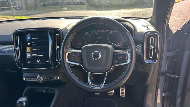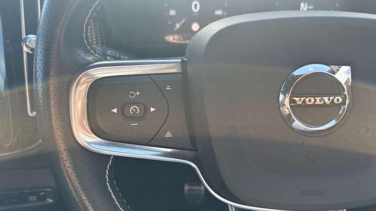 12.3" Active TFT crystal driver's instrument display, 9" centre console portrait touch screen, Adjustable steering wheel force, Bluetooth hands free telephone kit, Drive mode selector, Lane keep assist with driver alert control, Oncoming Lane Mitigation, Power operated tailgate, Sensus navigation with European mapping and traffic information, Speed limiter, Speed sensitive steering, Voice activated control for key functions, Volvo on call, Sports chassis, DAB Digital radio, Steering wheel mounted remote controls, Adaptive brake lights with high level LED brake lights, Auto dimming interior mirror, Automatic headlamp levelling, Black stone door mirrors, Black stone roof, Colour coordinated auto folding and heated power door mirrors, Dark tinted windows for rear door side windows and cargo compartment, Dual integrated exhaust pipes with high gloss black surround, Front aluminium tread plates, Front and rear electric windows, High gloss black front and rear skid plate, High gloss black lower front bumper, High gloss black mesh front grille with high gloss black surround, High gloss black roof rails, High gloss black sensus surround deco, High gloss black window trim, Home safe and approach lighting, LED Headlights + Active high beam incorporating daytime running lights, Rain sensor with automatic windscreen wiper activation, Rear side wing doors, Rear wiper, Roof antenna, Roof spoiler, Visible VIN plate, 12V socket in front tunnel console and luggage compartment, 2 zone electronic climate control and rear air vent, 3 seat bench in 2nd row, 60/40 versatile split folding rear seat, A-pillar parking ticket holder, Centre console cupholders and storage, Charcoal headlining, Driver's side lower dashboard credit card storage compartment, Front footwell illumination, Front headrests, Front reading light and theatre lighting, Front seat cushion extensions, Glovebox bag hook, Height/reach adjustable steering column, Illuminated glovebox, Illuminated luggage compartment, Illuminated vanity mirrors, Isofix attachments on outer rear seats, Key integrated remote, Leather gearknob, Load protection net, Multi directional lumbar support, Rear armrest / integral cup holders / storage tray, Rear coat hook, Single front passenger seat, Sports floor mats, Sports pedals, Sports tailored steering wheel, Underfloor cargo storage, 3x3 point rear seatbelts, City safety includes pedestrian, cyclist and large animal detection and front collision warning with full auto brake, Drivers knee airbag, Dual stage driver/passenger airbags, Electronic parking brake with auto hold, First aid kit, Front and outer rear seatbelt reminder and pretensioners, Front seats SIPS airbags, Hill descent control, Hill start assist, Inflatable curtain, Passenger airbag cut-off device, Road sign information display, Run off Road Mitigation, Run off Road Protection, SIPS (Side Impact Protection System), Slippery road and hazard light alert, Stability and Traction Control with Spin control, Engine Drag Control and Corner Traction Control, Tyre pressure monitoring system, Vehicle deceleration control with Anti-lock Brake System, Electronic Brake Distribution and Emergency Brake Assist, Warning triangle, WHIPS whiplash protection system - front, Anti-theft alarm including immobiliser/volume sensor + level sensor, Care key with user defined top speed, Key integrated remote control central locking + fuel flap with deadlocking system and auto open/close power windows, Locking wheel nuts, Private locking for tailgate, Cutting edge aluminium inlay, Lower dashboard, tunnel console and door panel in charcoal,