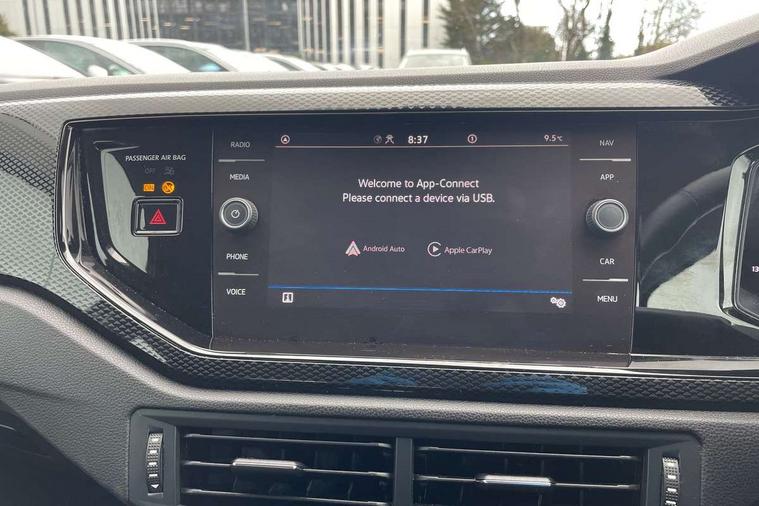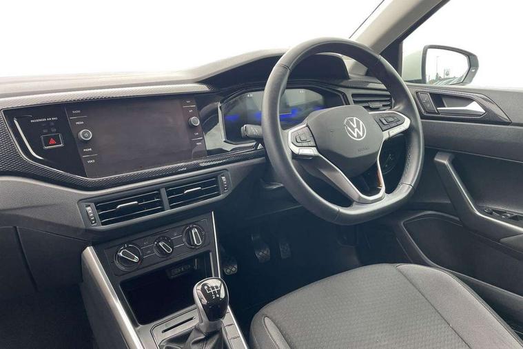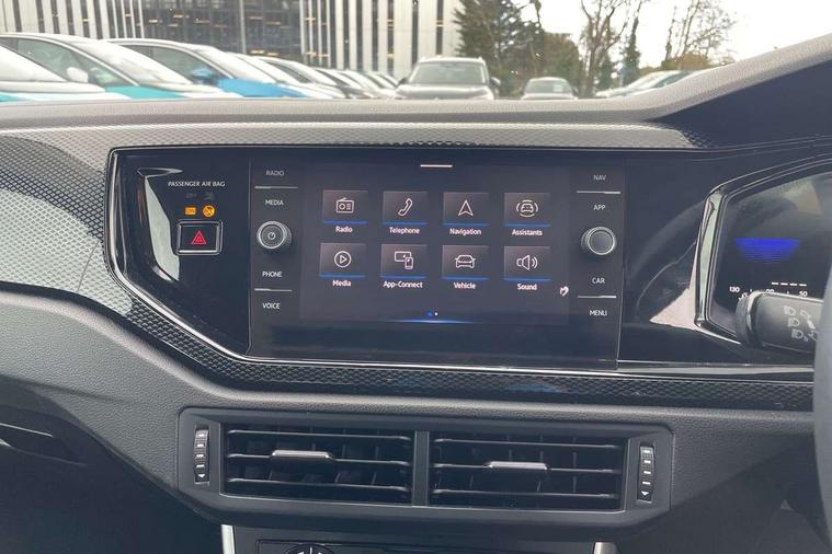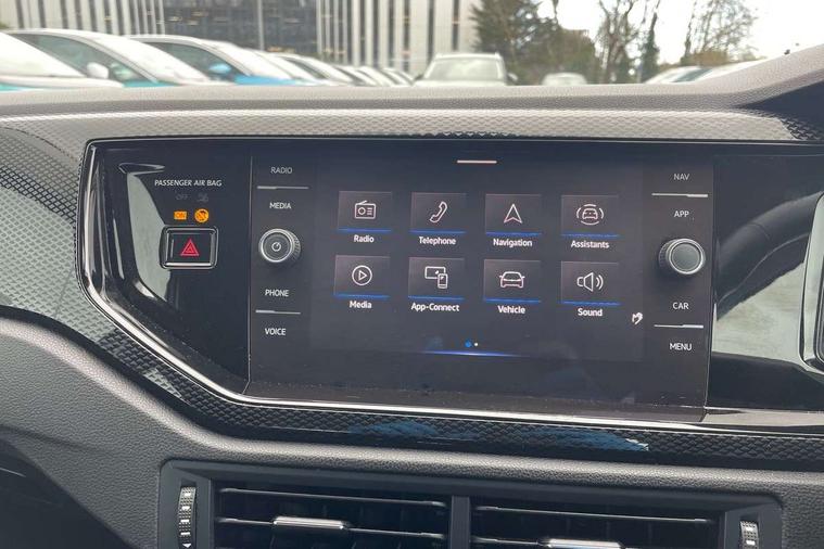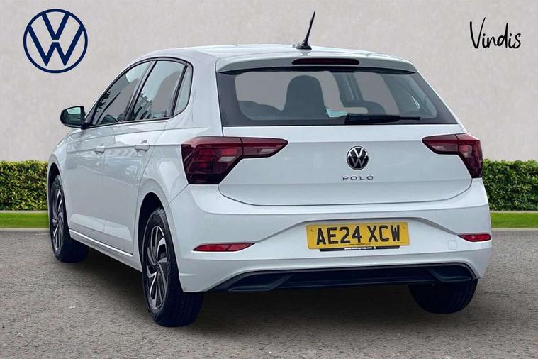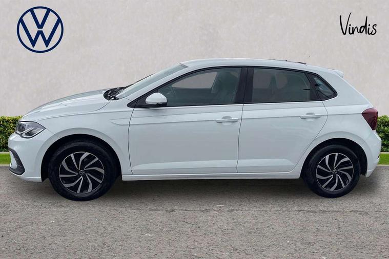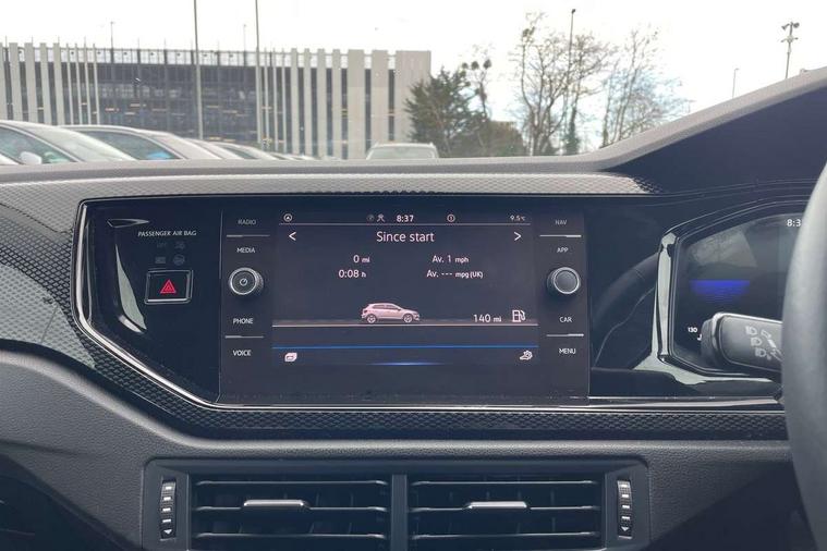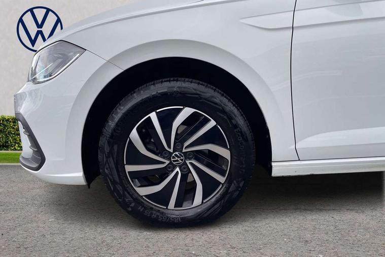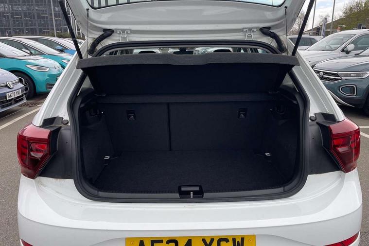 Advanced driver attention and drowsiness monitor, Bluetooth mobile phone interface, Cruise control + speed limiter, Dynamic road sign display, Emergency call service, Lane keeping system Lane Assist, Power assisted speed sensitive steering, Preparation for navigation system with media and internet package, Preparation for We connect and We connect plus, Speedo and rev counter, electronic odometer, trip, service interval display and exterior temperature gauge, Standard rear axle, Trip computer, Warning signal and warning light for front and rear seatbelts not fastened, Washer fluid level indicator, Wireless app connect, Front wheel drive, Rear shock absorpion, Start-stop system with battery regeneration (recuperation - energy recovery during braking), DAB Digital radio, Diversity antenna for FM reception, Front and rear 6 speakers, Automatic dimming interior rear view mirror, Body colour bumpers with chrome inserts, Body colour door handles, Body colour door mirrors, Electric front windows, Engine badge deletion, Heat insulating and laminated safety glass windshield, Heat insulating darkened glass in side and rear windows, Heat insulating glass windscreen, Power folding adjustable/heated exterior mirrors and front passenger exterior mirror lowering function, Rain sensor, Rear electric windows, Rear fog light, Rear side wing doors, Rear windscreen washer and wiper with interval delay, Third brake light, 12V power socket in centre console, 2 front and 2 rear reading lights with switch off delay and dimmer, 2 USB-C ports in the front, 2 USB-C charging sockets on the center console in the rear, 3 rear head restraints, 60/40 split folding rear seat and rear seat bench not split, Ceramique roof lining, Chrome plated radiator grille inserts, air vent surrounds and light switch surrounds, Door and side trim panel, Driver and front passenger seat height adjustment, Driver/passenger sunvisors with illuminated vanity mirrors, Front centre armrest, Front seat backrest storage pockets, Front standard seats, Handbrake lever handle in leather, Hartley/Thomas cloth upholstery, Headliner in recycled material, Isofix child seat preparation easy-fit (for two outer rear seats, and front passenger seat) compatible with I-size, Leather trimmed gear knob, Luggage compartment cover, Luggage compartment lighting, Removable luggage compartment floor, Single front passenger seat, Standard climatic zones, Standard pedal cluster, Three spoke leather wrapped multifunction steering wheel, Light and vision pack - Polo, 3 point height adj front seatbelts + pretensioners, 3x3 point rear seatbelts, ABS, Driver and front passenger airbag with front passenger airbag deactivation, Drivers and front passengers safety optimised head restraints, ESC (Electronic stability control) + EDL (Electronic Differntial lock) and ASR (Traction control), Extended and predictive pedestrian/ cyclist protection, Front assist with autonomous emergency braking (for Adaptive Cruise Control ACC up to 130 mph), Front curtain and side airbags with center airbag, Front disc brakes, Hill hold control, Manual child lock in rear doors, Rear drum brakes, Single tone horn, Tyre pressure loss indicator, Alarm with interior protection, Anti-theft alarm system with interior monitoring, backup horn, and towing protection, Anti-theft wheel bolts, Electronic engine immobiliser, Lava stone black gloss/matt decorative inserts in dash and front door panels, Low rolling resistance tyres,