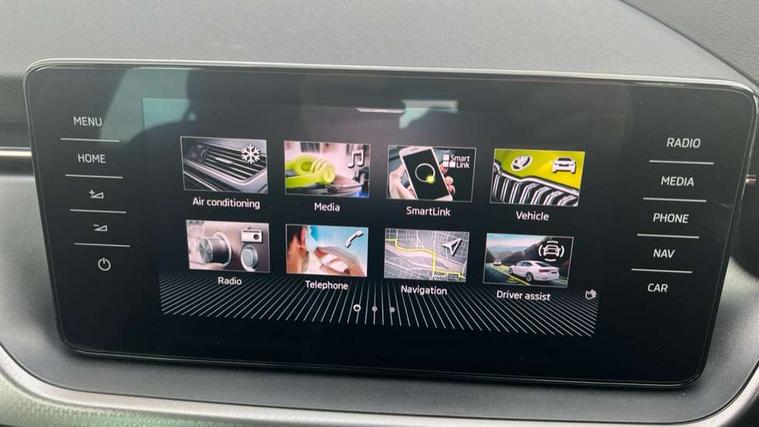 Amundsen satellite navigation with 9.2" glass colour touchscreen with virtual cockpit, web radio, Android Auto, Bluetooth system, Colour multifunction trip computer, eCall emergency system, PAS, Rain and light assist with auto dimming rear view mirror, Rear view camera, Speed limiter, Tailgate, Traffic sign recognition, Virtual cockpit, Voice control system, Wireless SmartLink for Apple Car Play, 2 USB - C ports, 8 loudspeakers, DAB Digital radio, 3rd brake light, Automatic headlamp activation with Coming home and Leaving home feature, Body colour door mirrors and handles, Chrome grille surround, Dimming rear view mirror with black frame, Electric folding door mirrors, Electrically adjustable and heated door mirrors, Front and rear electric windows, Front fog lights with cornering function, LED rear tail lights with dynamic indicators, Privacy glass, Rear side wing doors, Rear wiper, Tinted windows, 12V Accessory socket in centre console, 3 seat bench in 2nd row, Chrome inner door handles, Chrome on gear and handbrake lever, Chrome strip on the dash and door panel, Dual zone climate control, Front head restraints, Glasses storage in roof liner, Instrument cluster with chrome painted decor ring, ISOFIX for rear passenger seat, Leather gearknob and handbrake lever, Manual lumbar support for front seats, Net in centre console, Reading lights for driver and front passenger, Single front passenger seat, Sun visor with make up mirror for front passenger, Textile floor mats, Third rear headrest, Umbrella, 3x3 point rear seatbelts, Curtain airbags, Emergency call and proactive services, Front head and side airbags, Hill hold control, Manual rear child locks, One tone horn, Passenger airbag switch off function, Seat belt reminder for all seats, Alarm, Anti-theft wheel bolts, Keyless entry with start/stop button, Remote central locking with 2 remote folding keys, SAFE function for remote central locking, Latice grey decorative insert with copper hot stamping, Temporary space saver wheel,