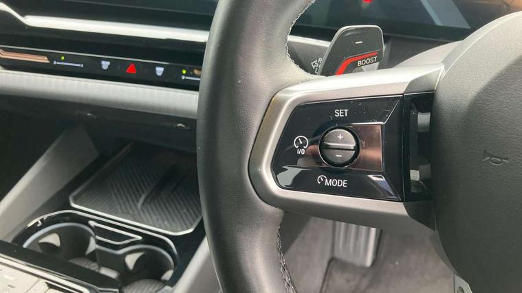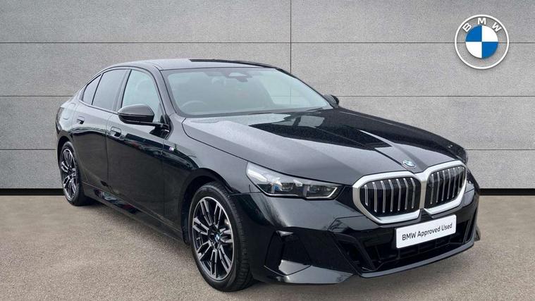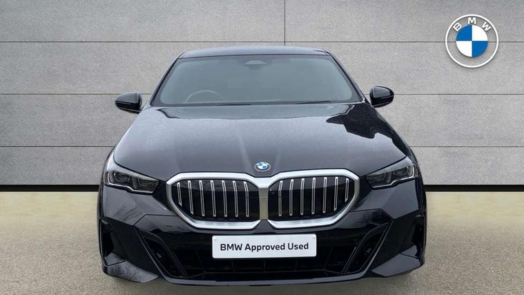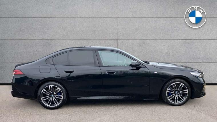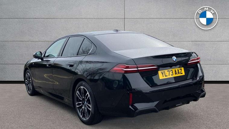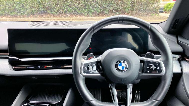 BMW ConnectedDrive online services, BMW legal emergency call, BMW Teleservices, Brake pad wear indicator, Cruise control with brake assist, Multifunctional instrument panel, Oil sensor for level and grade, On board computer inc. average speed, fuel consumption, liquid crystal Info display, journey computer, outside temperature display, personal profile, On-board diagnosis - OBD, PAS, Powered by Operating System 7.0, Run flat indicator, Service interval indicator, Stop/start button, 8 speed automatic steptronic transmission with gearshift paddles, M sport suspension, DAB tuner, Personal eSim, Acoustic glazing, Adaptive LED headlights with high beam assist, Automatic cornering lights, Automatic windscreen wipers and automatic headlight, BMW selective beam, Body colour door handles, Body coloured bumpers, Dynamic brake lights with LED technology, Electric adjustable door mirrors, Electric front and rear windows with fingertip open/close + anti-trap facility and comfort closing function, Follow me home headlight function, Heated windscreen washer jets, LED daytime running lights, LED third brake light, Rear boot, Rear side wing doors, 2 zone automatic air conditioning, 3 seat bench in 2nd row, 3 spoke leather M steering wheel in BMW M specific design with M badge, 40/20/40 split folding rear seats with backrest, Armrest - front and rear integrated door trim, centre console includes storage compartment, rear centre includes 2 cupholders, Child seat ISOFIX attachment with rear outer seats includes top tether, Electric adjustable steering column, Electrically adjustable lumbar support for driver and front passenger, Front sport seats, Heated driver and front passenger seats, M Anthracite headlining, M Sport pedal covers in stainless steel, Partially electric front seat adjustment, Rear headrests, Single front passenger seat, Through load system, Velour floormats, Wireless charging tray, Ambient lighting pack - 5 Series/I5, Connected package professional - 5 Series/I5, Driving assistance pack - 5 Series/I5, Expanded exterior mirror package - 5 series/I5, M high gloss shadow line pack - 5 Series/ I5, M Sport exterior styling pack - 5 Series/I5, 3 rear three point seatbelts, Active protection, Anti-lock braking system (ABS), Brake assist, Brake energy regeneration, Cornering brake control (CBC), Crash sensor activating central locking release, hazard warning lights, fuel cut off and interior lighting, Driver and front passenger airbags, Driver central airbag, Driver/front passenger side airbags, DSC - Dynamic Stability Control, Dynamic brake control, Dynamic Traction Control - DTC, Electromechanical parking brake with automatic drive away release and auto hold function, Electronic brake force distribution, Engine drag torque control, Front and rear brake discs with interior ventilation, Front and rear curtain airbags, Front head restraints with anti-whiplash, Head airbags for first and second row seats, Hill start assist, Locking of doors after driving off, M Sport brake in dark blue metallic painted brake callipers with M designation, Mechanical child proof lock on rear doors, PC iBrake PostCrash approach control warning with light braking function, Side impact protection, Trailer stability control, Two tone horn, Tyre pressure monitoring system, Warning triangle and first aid kit, Alarm system, BMW digital key, Locking wheel bolts, Tyre repair kit,