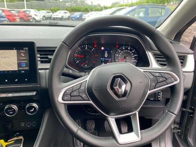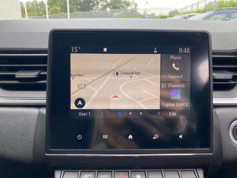 4.2" TFT Driver information display, Cruise control + speed limiter, eCall emergency call system, Eco mode, Gear change indicator, Lane departure warning system, Lane keep assist, Renault automatic emergency assist, Traffic sign recognition, Trip computer, Variable assistance power steering, EasyLink Nav 7" touchscreen, 4x20W amp, FM DAB, sound auditorium, 2xUSB, 1xJack, Bluetooth, smartphone integration plus, Apple carplay/Android auto, Automatic front wipers with rain sensors, Automatic headlights, Body colour door handles, Body coloured bumpers, Body coloured door mirrors, Electric adjustable/heated/folding door mirrors, Electric front windows + one touch + anti-pinch, Electric rear windows, Extra tinted glass in rear windows and tailgate, Full LED front and rear headlamps integrating daytime running lights at the front and rear, Gloss black side door protection with chrome effect, LED front fog lights, Rear fog lights, Rear wiper, Roof bars, Variable speed on front windscreen wipers, 12V Accessory socket, 3 rear headrests, 5.2L front glovebox, 60/40 split folding rear seat bench, Automatic climate control with one touch demist function, Centre console storage tray, Cloth upholstery, Front head restraints, Heating system with pollen filter, Height adjustable driver's seat, Height/reach adjust steering wheel, ISOFIX child seat fixing points on rear outermost seats, Middle console with armrest and storage, Rear air vents, Synthetic leather steering wheel, 3 rear seatbelts, ABS+EBA, AEBS, Distance warning alert, Driver and front passenger, side, head and curtain airbags, Driver height adjustable seat belt, Electric parking brake, Electronic stability control, Front and rear no seatbelt warning sound, Front dash warning indicator in case of heavy braking, Front driver and passenger side airbag deactivation, Hill start assist, Rear door and window child locking function for rear door, Tyre pressure warning light, Anti drill door locks and locking fuel cap, Deadlocking system, Hands free keycard with push button and start/stop function, RAID (Renault Anti-Intruder Device) automatic door locking, Remote central locking with thatcham approved immobiliser, Black soft touch dashboard with black gloss air vent surrounds,