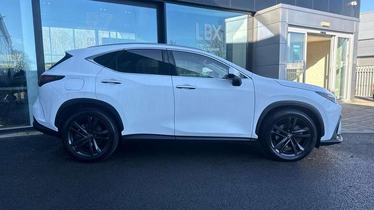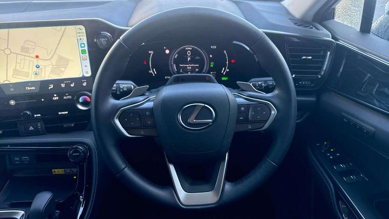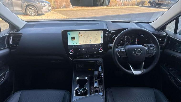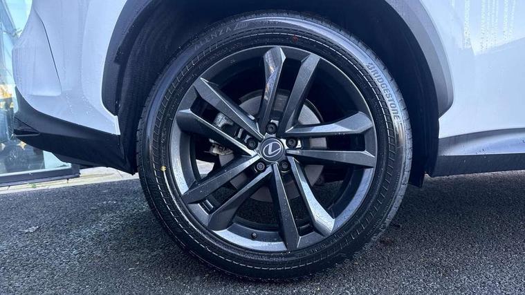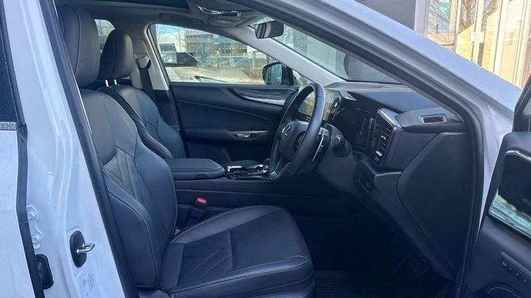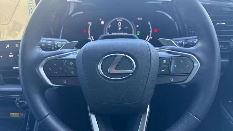 360 degree panoramic view monitor, 7" colour multi information display, 7" display in instrument binnacle, Blind spot monitoring with rear cross traffic alert, Bluetooth telephone connectivity, Digital speedometer, Drive mode select (Eco, Normal, Sport), Driver monitor camera, eCall emergency system, Electric speed sensitive power steering, Emergency driving stop system, Emergency steering assist, Front cyclist detection, Front motorcycle rider detection daytime, Head up Display, Intelligent parking sensors - 4 front and 4 rear with object and pedestrain detection, Intersection turn assist, Lane change flasher function, Lexus link connect - Cloud based navigation, cloud based voice assistant, always online, 14" HD touchscreen, embedded nav and faster CPU, Pre-crash system, Proactive driving assist (PDA), Push button starter, Reversing camera with back guidelines, Road sign linked speed limiter, Service interval indicator, Tailgate, Tailgate electric lift and close, Tailgate height memory function, Tazuna cockpit with 7" improved meters display, 10" HUD and capacitive touch steering wheel switches, Trip meter, Variable ratio rack steering, Wireless Apple CarPlay/Android Auto, Wireless Smartphone charger, 5m mode 3 charging cable, 6.6 kW onboard charger, All Wheel Drive (AWD), Hybrid automatic transmission, Key cylinder protector, Predictive efficient drive, Standard suspension, Vehicle Dynamics Integrated Management (VDIM), Vehicle Stability Control (VSC), 10 speakers, 3 USB Type-C charging ports, DAB Digital radio, 4 eye LED headlight with adaptive high beam, Acoustic glass (front side and windshield glass), Active brake lights, Auto dimming interior rear view mirror, Auto levelling headlights, Automatic headlights, Automatic rear flashing hazard lights, Black roof, Body coloured door handles, Body coloured door mirrors, Body coloured roof spoiler, Double hidden exhaust pipes, Electrically adjustable door mirrors, Electrochromatic driver's door mirror, Front and rear one touch power windows, with anti-jam protection, Heated and auto folding door mirrors, Hidden exhaust in rear bumper, LED brake lights and rear lights with emergency brake signal, LED cornering lights, LED daytime running lights, LED front fog lights, LED front indicators, LED rear fog lights, Muffler, Optical rear view mirror, Power back door with kick sensor, Privacy glass, Puddle lights, Radiator grille, Rain sensor windscreen wipers, Rear side wing doors, Rear wiper, Roof rails, Shark fin antenna, Silver roof rails, Stainless steel scuff plates with LEXUS name, Ultra Violet (UV) and heat insulating tinted glass, 12V accessory port centre console and luggage compartment, 12V socket in front and boot, 12V socket in rear, 2 cupholders in front centre console, 2 way manually adjustable front headrests, 2 way manually adjustable rear headrests, 2 x fixed shopping bag hooks in boot, 2 x sun visors with vanity mirror and lamp, 3 seat bench in 2nd row, 3 spoke leather trimmed steering wheel, 4 way electrical lumbar adjustment for driver, 4 x tie down hooks in the boot, 60/40 split folding rear seat, Adjustable rear seat backrest, Automatic air circulation control, Card holder installed in driver and passengers sun visors, Centre armrest with storage box, Chrome side windows frame moulding, Driver seat easy entry and exit function, Driver seat memory function, Driving position memory for 3 users (seat, steering wheel & door mirrors), Dual zone climate control air conditioning system with humidity sensor, Electric adjustable steering column, Electronic climate control with nanoeTM, Front and rear textile carpet mats, Front passenger seat, Glove box with key, Heated and ventilated front seats, Heated rear seats, Heated steering wheel, Illuminated entry system, Leather gearshift, LED ambient lighting, LED boot light, LED Glovebox light, LED interior illumination, Lexus climate concierge, Luggage cover manually folding, Overhead front console sunglasses holder, Paddle shifts, Rear centre armrest with 2 cupholders, S-Flow technology for climate control, Smooth leather upholstery, Steering wheel easy entry and exit function, Steering wheel mounted customizable touch control, USB port (Type - A) front centre console, Whiplash Injury Lessening (WIL) feature (active headrest) for seats, 18" front disc brake, 3 point ELR front seatbelts with pretensioners, 3x3 point rear seat belts, ABS, Acoustic vehicle alerting system, Adjustable seat belt anchor points, Driver 2 stage airbag, Driver/front passenger side airbags, Drivers knee airbag, E-Latch with safe exit assist, EBD + Brake Assist, ECB (Electronically Controlled Brake System), Electronic parking brake, Front and rear curtain shield airbags, Front center airbag, Front passenger seat cushion airbag, Front passenger single stage airbag, Hill assist control, Lexus safety system - dynamic radar cruise control, pre collision system day and night, lane tracing assist, road sign, automatic high beam, OTA, Manual rear child locks, Outer rear seatbelt pretensioners, Passenger airbag cut-off device, Rear wheel brake - 17inch discs, Safety kit, Traction control, Tyre pressure warning with auto location, Anti-theft system with alarm, intrusion sensor, glass breakage sensor, tilt sensor and engine immobiliser, Double door lock, Locking wheel nuts, Smart entry ( front/rear/boot), Smart key, Speed sensitive auto door locking, Ultra Wide Band (UWB) Anti-theft system, VIN Window etching, Wireless door lock, 3D prism black Inlay, Organic inlay, Extended mobility tyres, Resin moulding wheel arches, Run flat tyres,