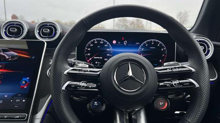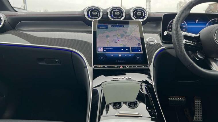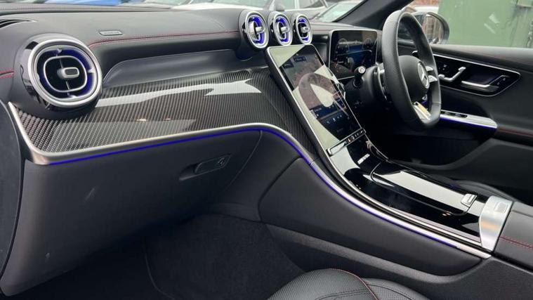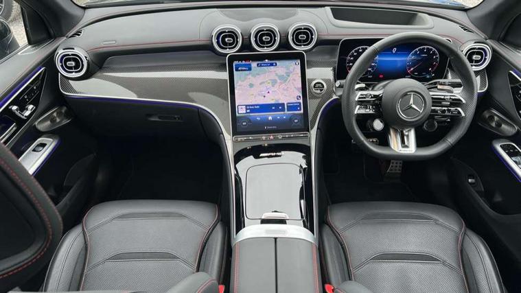 11.9" high resolution multimedia colour display, 12.3" Digital individually configurable instrument display, Acoustic presence indicator, Active lane keeping assist, AMG DYNAMIC SELECT with a choice of driving modes (Slippery, Comfort, Sport, Sport+, Individual), Attention assist, Bluetooth interface for hands free telephone, Collision prevention assist plus, Dashcam - front camera for video recording, eCall emergency call system, Fingerprint scanner, Fluorescent jacket for driver, Head up Display, Instrument display in miles with English lettering, MBUX augmented reality for navigation, MBUX navigation premium, MBUX voice control activated by keywords "Hey Mercedes", Mercedes connect me with remote online services, Multi function trip computer, Outside temperature display, Pre-installation for digital key transfer, Rear axle steering, Remote boot release, Remote services plus, Service indicator (ASSYST), Smartphone integration, Sports direct steer system with speed sensitive steering, Status display for rear seat belts in instrument cluster, Tailgate, Traffic sign assist, Wireless charging system for mobile devices in the front, 4MATIC permanent four wheel drive, 62 litre fuel tank, 9G TRONIC plus automatic transmission, AMG Ride Control suspension, Petrol Particulate Filter (PPF), Burmester 3D surround sound system, DAB digital radio tuner, MBUX extended functions, Sound personalisation, Adaptive brake lights, Adaptive high beam assist plus, Aluminium look running boards with rubber studs, AMG bodystyling front apron, rear apron and side skirts, AMG exhaust system with sporty engine sound, AMG fuel cap, AMG radiator grille with vertical struts in high gloss chrome and AMG logo, AMG Real Performance Sound, AMG spoiler lip, Auto dimming rear view mirror, Auto headlights, Digital light LED headlights, Electric panoramic glass sunroof, Electric windows with one touch opening/closing and obstruction sensors, Electrically adjustable and heated door mirrors, Headlight washers, Heat and noise insulating acoustic glass, Heat insulating dark tinted glass, Heated rear window, High level LED brake light, Integrated LED daytime running lights, LED indicator lights, LED rear fog lights, LED tail lamp, Mercedes AMG exterior, Rain sensor windscreen wipers, Range adjustable headlights, Rear side wing doors, Rear wiper, Transparent Bonnet, Variable front intermittent wipers, Welcome and follow-me home light functionality, Wheel arch liners in the vehicle colour, 3 seat bench in 2nd row, 40:20:40 split folding rear seats, Air balance package, Ambient lighting premium, AMG floor mats, AMG performance steering wheel in nappa leather with AMG steering wheel button, AMG sports seats, Artico leather dashboard with contrast stitching, Audio and onboard settings control on multifunction steering wheel, Automatic child seat recognition sensor, Double cup holder in centre console, Electrically height/reach adjustable steering column, Front centre armrest with stowage compartment, Front head restraints, Gearshift paddles on steering wheel, Heated steering wheel, Illuminated door sill panels with Mercedes Benz lettering, Illuminated glove compartment, Load compartment cover, Mercedes AMG interior, Partition net, Rear head restraints, Rear top tether child seat ISOFIX attachment, Single front passenger seat, Sports pedals with stainless steel surfaces and rubber studs, Sun visors with illuminated vanity mirrors, THERMATIC 2 zone automatic climate control, AMG Exterior Night pack - GLC AMG 63 Se, AMG Exterior Night pack - GLC Coupe AMG 63 Se, Boot comfort package - GLC, Energizing plus pack - GLC Coupe, Interior lighting pack - GLC AMG, Keyless-Go comfort package - GLC, Memory pack - GLC, Mirror pack - GLC AMG, Parking package with 360 degree camera - GLC, Stowage pack - GLC AMG, USB Plus Pack - GLC, 3 rear 3 point seatbelts, Active bonnet, Anti-lock braking system (ABS), Automatic front passenger airbag deactivation, Child proof door locks, Dual-stage airbags - driver and front passenger, driver knee bag and window bags for driver, front passenger and rear passengers, Electronic key chrome surround, Electronic parking brake, Electronic stability programme (ESP) with curve dynamic assist and cross wind assist, Front and rear seatbelt reminder, Front passenger seat occupancy sensor, Front seatbelt pretensioners, Hill start assist, Silver brake calipers, Tyre pressure monitoring system, Warning triangle and first aid kit, Anti theft alarm system with preinstallation for collision detection, Central locking with interior switch, automatic locking and crash sensor with emergency opening function, Guard 360 degree vehicle protection plus, Immobiliser, Increased anti-theft protection, AMG Carbon fibre with centre console in high gloss black, 21" AMG Y spoke light alloy wheels painted in matt black with high sheen rim flange, TIREFIT with tyre inflation compressor,