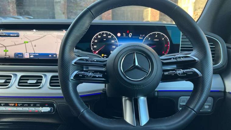 12.3 High resolution wide screen cockpit display with choice of three display styles Classic, Progressive or Sport and unique ambient lighting setting, 360 degree view camera, Active parking assist with PARKTRONIC, Attention assist, Brake wear warning display, Direct steer speed sensitive steering, DYNAMIC SELECT with a choice of driving modes (ECO, Comfort, Sport and Individual), Easy-pack tailgate - Powered opening/closing automatically, ECO start/stop function, Hard-disk navigation, MBUX augmented reality for navigation and live traffic, MBUX voice control activated by keywords "Hey Mercedes", Mercedes Benz emergency call system, Mercedes me connect - vehicle set up and monitoring, Outside temperature display, Pre-installation for digital key transfer, Service indicator (ASSYST), Status display for rear seat belts in instrument cluster, Traffic sign assist, Trip computer in multifunction display showing current fuel consumption, Wireless charging, Wireless smartphone integration including Apple CarPlay and Android auto, 85 litre fuel tank, 9G TRONIC 9 speed automatic transmission, Airmatic air suspension with adaptive damping system, Diesel particulate filter (DPF), Mild Hybrid starter alternator, Additional USB connection, Bluetooth interface for hands free and audio streaming, Burmester surround sound system, DAB digital radio tuner, Front and rear USB ports, Sound personalisation, Adaptive brake lights, AMG bodystyling front and rear aprons, Auto headlights, Automatically dimming rear view mirror, Body colour door mirrors, Body coloured bumpers, Electric windows with one touch opening/closing and obstruction sensors, Electrically adjustable, heated, folding exterior mirrors, Exterior styling - front bumper, radiator grille and front air intakes, Heat insulating dark tinted glass, LED 3rd brake light, LED daytime running light signet, LED rear lights, Magic vision control, Multibeam LED headlights with adaptive highbeam assist plus, Radio aerial integrated into rear window, Rain sensing windscreen wipers, Rear side wing doors, Rear wiper, Roof rail system, Top surround of side windows in polished aluminium, Transparent Bonnet, Visible twin pipe exhaust system integrated into bumper, Waistline in polished aluminium, 3 spoke flat bottomed Multifunction sports steering wheel in nappa leather, 4 way adjustable front head restraints and 2 way rear head restraints, 40:20:40 split folding rear seats, AMG floor mats, Artico/Microcut microfibre upholstery, Automatic child seat recognition sensor, Black fabric roof liner, Electric height/reach adjustable steering column, Front centre armrest with stowage compartment and illuminated grab handles, Gearshift paddles on steering wheel, Glove compartment - lockable, air conditioned and illuminated, Heated front seats, Interior lighting - 64 colour Ambient lighting, Luggage compartment cover, Seat occupancy sensor for front passenger seat, Second row three seats, Single front passenger seat, Sports pedals in brushed stainless steel with rubber studs, Sunvisors with illuminated vanity mirrors, THERMATIC 2 zone automatic climate control, Touchpad, Energizing package - GLE, Keyless go comfort package - GLE, Memory package with 4 way lumbar support - GLE, Night package - GLE, Active bonnet, Airbags - driver and front passenger, front sidebag, pelvis bag and window airbags, Anti-lock braking system (ABS), Black seat belts, Childproof locks manually operated for rear doors and electrically operated for rear power windows, Drivers knee airbag, Electronic parking brake, Electronic Stability Programme (ESP), ISOFIX child seat points with automatic child seat recognition, Perforated front brake discs and brake calipers with Mercedes-Benz lettering, Pre safe impulse side, Three point rear seat belts, Tyre pressure monitoring system, Warning triangle and first aid kit, Alarm system/interior protection/immobiliser, Central locking with interior switch, automatic locking and crash sensor with emergency opening function, Chrome surround in electric key, Guard 360 degree vehicle protection plus, Brushed aluminium trim elements, Dashboard and door beltlines in ARTICO man made leather with contrast top stitching, 21" AMG 5 twin spoke light alloy wheels painted in bi colour, TIREFIT with tyre inflation compressor,