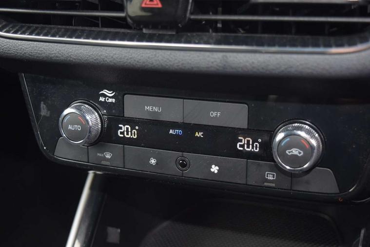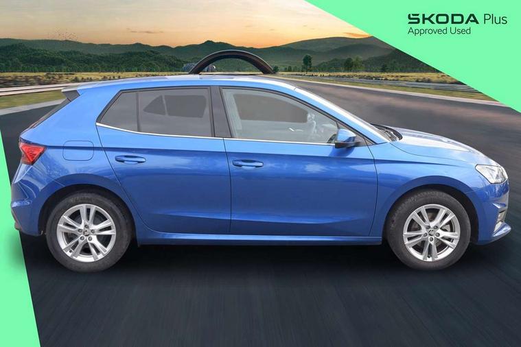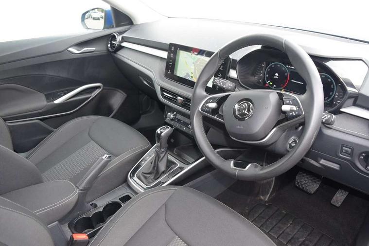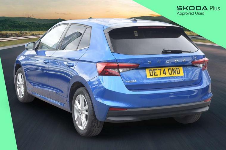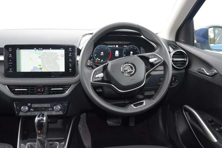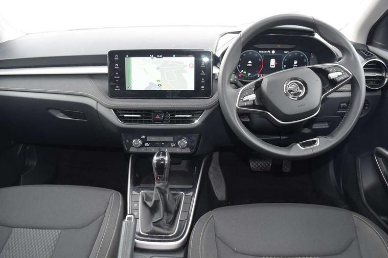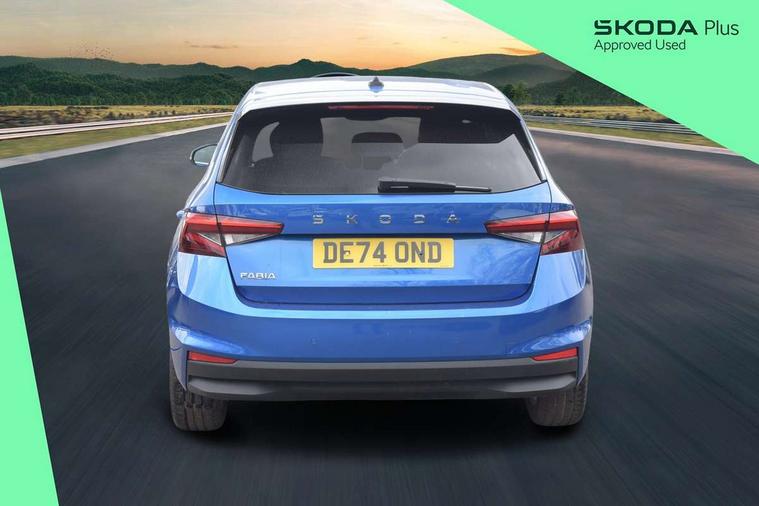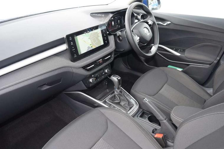 Advanced driver attention and drowsiness monitor, Bluetooth connection, Electromechanical power steering, Exterior temperature gauge, Service interval indicator, Traffic sign recognition, Virtual cockpit with 10.25" colour display, Wireless SmartLink for Apple CarPlay and Android Auto, 6 Speakers (4 in front and 2 in rear), 9.2" colour display skoda navigation system with voice control and web radio, Auxiliary socket for external MP3 player, DAB digital radio reception, Auto dimming rear view mirror, Body colour door mirrors, Body coloured bumpers, Chrome window surround, Door mirror integrated indicators, Front and rear electric windows, Front window wiper intermittent control, Headlight range control - Automatic, Ice scraper in fuel cap, LED daytime running lights with coming and leaving home feature, LED rear lights, Privacy glass, Rear LED fog light, Rear side wing doors, Rear window wiper with washing nozzles, Roof mounted spoiler, SKODA tailgate lettering in chrome, Third brake light, 2 reading lights in front and 2 reading lights in rear, 3 rear headrests, Backrest split and folding, Central console with removable cup holder and storage box, Chrome handbrake release button, Comfort seats, Door sills with fabia badging, Dual zone air conditioning with climatronic electronic control, Fabric upholstery, Front centre armrest, Gearshift knob/handle in leather, Hand brake lever handle in leather, Height adjustable front headrests, Height adjustable front seats, Height adjustable steering wheel, ISOFIX and TopTether anchorage points to the outer rear seats, ISOFIX and TopTether on the front passenger seat, Luggage compartment lighting, Manually adjustable lumbar support in front seats, Metallic grey interior door handles, Pollen filter, Rear seat bench unsplit, Single front passenger seat, Storm grey headlining, Sun visors with mirror and airbag label on passenger side, Textile floor mats, Ticket holder, Umbrella in drivers door, 3-point height adjustable front seats belts with pretensioner and force limiter, Automatic warning lights in case of crash, Driver and passengers airbag with switch off function, e-Call+, ESC including ABS, MSR, ASR, EDS, HBA and XDS, Front and rear seat belt warning, FRONT ASSIST (AEB City and AEB Inter Urban), Front side airbags, Head airbags, Hill hold control, One tone horn, Pedestrian protection, Three rear 3-points safety seat belts with pretensioner and force limiter including stop function for outer rear seat belts, Tyre pressure monitoring system, Anti-theft alarm system including immobiliser, interior monitoring, backup horn, and towing protection, Central locking with radio remote control, interior controls, SAFE function and 2 foldable keys, Chrome edged air vents, Metallic grey central console cover, Metallic grey upper decorative trim, Satin black door and side trim panel in front, Textile microsuede grey lower decorative trim with art grey stitching, Anti-theft wheel bolts protection, Super-low rolling resistance tyres,