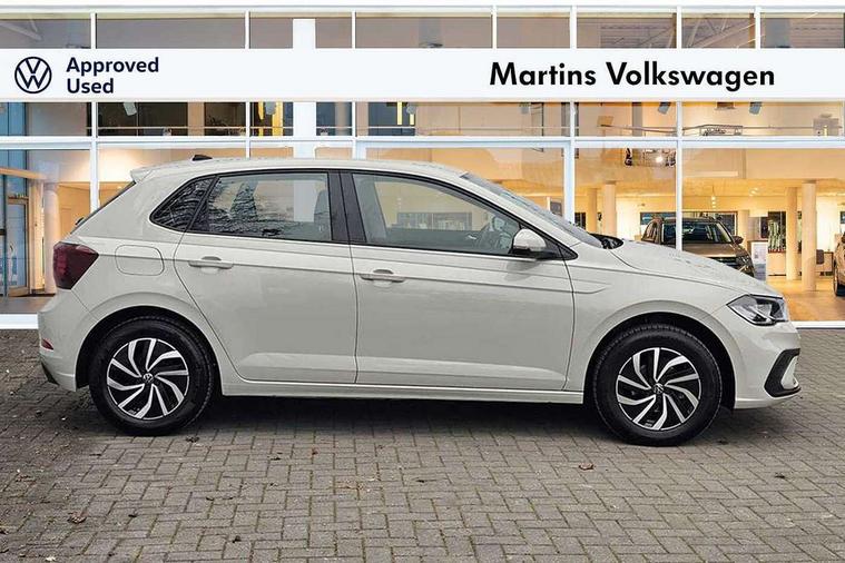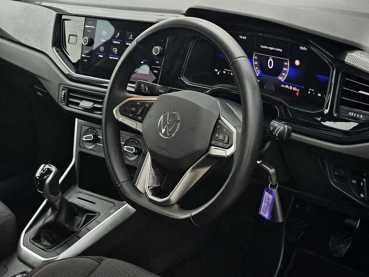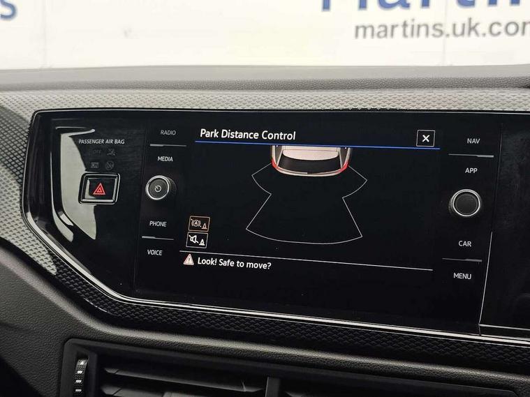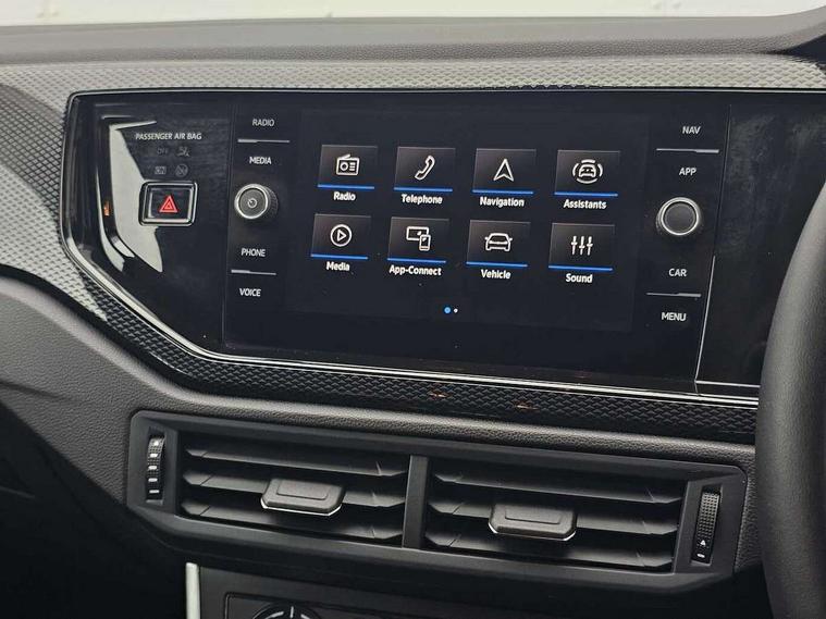 Advanced driver attention and drowsiness monitor, Bluetooth mobile phone interface, Cruise control + speed limiter, Dynamic road sign display, Emergency call service, Lane keeping system Lane Assist, Multifunction camera, Power assisted speed sensitive steering, Preparation for navigation system with media and internet package, Preparation for We connect and We connect plus, Speedo and rev counter, electronic odometer, trip, service interval display and exterior temperature gauge, Standard rear axle, Trip computer, Warning signal and warning light for front and rear seatbelts not fastened, Washer fluid level indicator, Wireless app connect, Front wheel drive, Rear shock absorpion, Start-stop system with battery regeneration (recuperation - energy recovery during braking), DAB Digital radio, Diversity antenna for FM reception, Front and rear 6 speakers, Automatic dimming interior rear view mirror, Automatic headlight control with LED separate daytime running lights with coming/leaving home function, Body colour bumpers with chrome inserts, Body colour door handles, Body colour door mirrors, Electric front windows, Engine badge deletion, Headlight range adjustment, Heat insulating and laminated safety glass windshield, LED Headlights, LED rear combination lamps, Power folding adjustable/heated exterior mirrors and front passenger exterior mirror lowering function, Rain sensor, Rear electric windows, Rear fog light, Rear side wing doors, Rear windscreen washer and wiper with interval delay, Third brake light, 12V power socket in centre console, 2 front and 2 rear reading lights with switch off delay and dimmer, 2 USB-C ports in the front, 2 USB-C charging sockets on the center console in the rear, 3 rear head restraints, 60/40 split folding rear seat and rear seat bench not split, Ceramique roof lining, Chrome plated radiator grille inserts, air vent surrounds and light switch surrounds, Door and side trim panel, Driver and front passenger seat height adjustment, Driver/passenger sunvisors with illuminated vanity mirrors, Front centre armrest, Front seat backrest storage pockets, Front standard seats, Handbrake lever handle in leather, Hartley/Thomas cloth upholstery, Headliner in recycled material, Isofix child seat preparation easy-fit (for two outer rear seats, and front passenger seat) compatible with I-size, Leather trimmed gear knob, Luggage compartment cover, Luggage compartment lighting, Removable luggage compartment floor, Single front passenger seat, Standard climatic zones, Standard pedal cluster, Three spoke leather wrapped multifunction steering wheel, Light and vision pack - Polo, 3 point height adj front seatbelts + pretensioners, 3x3 point rear seatbelts, ABS, Driver and front passenger airbag with front passenger airbag deactivation, Drivers and front passengers safety optimised head restraints, ESC (Electronic stability control) + EDL (Electronic Differntial lock) and ASR (Traction control), Extended and predictive pedestrian/ cyclist protection, Front assist with autonomous emergency braking (for Adaptive Cruise Control ACC up to 130 mph), Front curtain and side airbags with center airbag, Front disc brakes, Hill hold control, Manual child lock in rear doors, Rear drum brakes, Single tone horn, Tyre pressure loss indicator, Alarm with interior protection, Anti-theft alarm system with interior monitoring, backup horn, and towing protection, Anti-theft wheel bolts, Electronic engine immobiliser, Lava stone black gloss/matt decorative inserts in dash and front door panels, Low rolling resistance tyres,