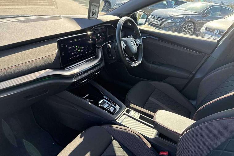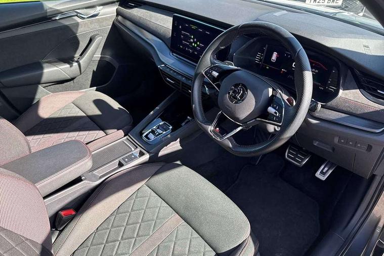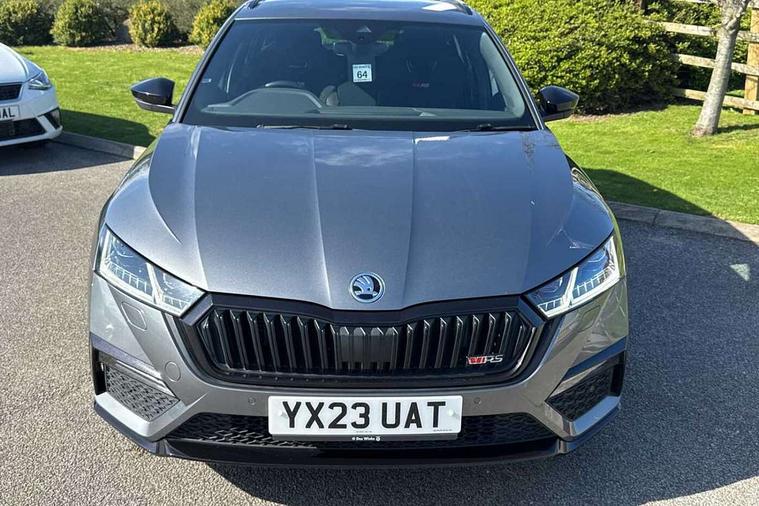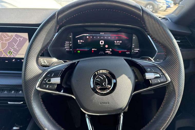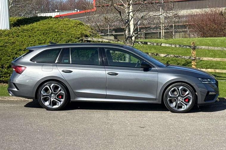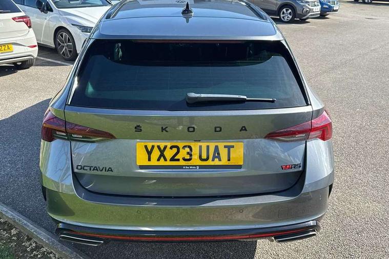 1x USB Type C port in rear view mirror (charging only), 2x USB Type C ports in rear of front centre armrest (charging only), Bluetooth system, Columbus satellite navigation with 10" touchscreen display, Driver fatigue sensor, eCall emergency system, Front and rear parking sensors with manoeuvre assist, Front assist system, Progressive dynamic steering, Speed limiter, Turn Assist, Virtual Cockpit - 10.25" digital display, Virtual pedal with electrically operated boot door (Rear LED lights (high functionality), dynamic indicators - Estate, Voice control system, Wireless SmartLink for Apple Car Play, Front and rear stabilizers, 2x USB Type C ports (for charging and data transfer), 8 speakers, DAB Digital radio, Aero front windscreen wipers with intermittent function, Auto dimming rear view mirror, Black roof rails, Body colour door handles, Chrome exhaust tailpipes, Door sills with vRS logo, Electric front and rear windows, Exterior gloss black sports styling including front grille, side strip, window surrounds, door mirror and badging, Full LED Matrix headlights with AFS, rear LED lights (high functionality) and dynamic indicators and cornering front fog lights, Headlight washers, Heated rear windscreen, High level third brake light, Ice scraper in fuel cap, LED daytime running lights, Rain and light sensors, Rear fog light on one side, Rear privacy glass, Rear side wing doors, Rear spoiler, Rear window wiper, 3 seat bench in 2nd row, 4 foldable roof handles, Aluminium pedals, Black headlining, Black microsuede padded dash panel with red contrast stitching, Chrome inner door handles, Front centre armrest, Front head restraints, Heated front seats, Illuminated glovebox, Leather trimmed gearshift lever, Luggage compartment lighting with two side lamps, Mechanical rear seat release, Parcel shelf - rolling, Single front passenger seat, Sunglasses storage, Textile floor mat set, Three spoke leather sports multifunction steering wheel with paddles, Ticket holder, Umbrella in door panel, Unsplit rear bench seat and split folding backrest, LED interior light pack - Octavia, 3 point front/outer rear seatbelts+pre-tensioners, Alarm with interior monitoring, tilt sensor and back up horn, Automatic door unlocking in case of crash, Automatic fuel cut off in case of crash, Automatic warning lights in case of emergency braking, Curtain airbags and front side airbags, Driver and front passenger airbags, Drivers knee airbag, Electronic parking brake, ESC including ABS, EBV, MSR, ASR, EDS, HBA, DSR, Front and rear disc brakes, Front central airbag, Hill hold control, Hill start assist, ISOFIX on front passenger seat and outer rear seats, Manual rear child locks, Passenger airbag deactivate switch, Pro active services, Red brake calipers, Two tone horn, Tyre pressure monitor, Visual and acoustic seat belt reminder, Warning reflectors in front door, Door locks with immobiliser, Keyless entry and start/stop including rear doors, Remote central locking, Carbon optic decorative inserts, Gloss black air vent surrounds, 19" Altair anthracite alloy wheels,