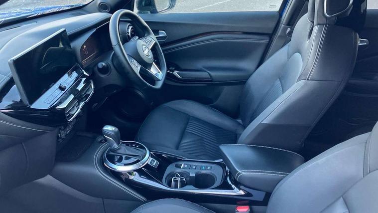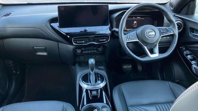12.3" full colour TFT screen combimeter, Drive modes select (Eco, normal and sport), e-Pedal step, Emergency and breakdown call, EV mode switch, Front parking sensor, Intelligent driver alert system, Intelligent lane intervention, Lane departure warning system, Nissan connect 12.3" touch screen entertainment system, Nissan connect nav with TomTom traffic, Nissan connect services, Outside temperature sensor, Power Steering, Rear parking sensor, Stop/start button, Traffic sign recognition, Trip computer, Voice recognition, WiFi connectivity, Wireless Apple CarPlay and Google Android auto, Wireless Smartphone charger, 10 Bose speakers 6 speakers and 2 headrest speakers for driver/passenger seats, 2 X Rear console USB port, Bluetooth system, USB, Aux-in and 12V socket, Bose personal sound stage control, DAB Digital radio, Auto dimming frameless rear view mirror, Automatic hazard signal with emergency stop signal, Body colour door handles, Electrically adjustable door mirrors with integrated indicators, Follow me home headlights, Front and rear electric window with one touch driver window, Heated and auto folding door mirrors, High beam assist, LED 3rd brake light, LED daytime running lights, LED front fog lights, LED headlamps, LED rear fog lamp, LED rear lamps, One touch passenger window, Rain sensor windscreen wipers, Rear privacy glass, Rear side wing doors, Rear wiper, Roof spoiler, Shark fin roof antenna in solid Black, Three blink turn signal, 3 height adjustable rear headrests, 3 seat bench in 2nd row, 60/40 split folding rear seat, Automatic climate control, Card holder on driver sunvisor, Door ambient lighting, Driver seat back pocket, Driver side rear coat hanger, Driver/passenger sunvisors and vanity mirrors, Front and rear cabin lights, Front armrest, Front door pockets with bottle holders, Front head restraints, Front/rear passenger grab handles, Gear console ambient circle lighting, Height adjustable driver's seat, Internal chrome door handles, Leather gearshift knob, Luggage board, Luggage space lighting, Monoform sporty seats, Multifunction steering wheel, Passenger seat back pocket, Rear door bottle holders, Single front passenger seat, Smooth synthetic leather steering wheel, Synthetic leather kneepad, Synthetic leather upholstery, Telescopic steering wheel adjustment, Two cupholders in front centre console, Two rear isofix child seat anchorage points with top tether, Welcome light and console tray ambient lighting, Heat pack with height adjustable passenger seats - Juke, ProPilot pack - Juke Auto, ABS with EBD and brake assist, Active ride control, Active Trace Control, Driver and passenger airbags, Driver and passenger side airbags, Electric handbrake with auto hold function, Electronic Stability Programme (ESP), Front and rear curtain airbags, Height adjustable seatbelts, Hill start assist, Intelligent emergency braking with pedestrian and cyclist recognition, Rear door child safety locks, Seatbelt reminder for driver/front passenger and rear seats, Three 3 point rear seatbelts, Traction control, Tyre pressure monitoring system, VDC Dynamic Vehicle Control, Alarm, Immobiliser, Intelligent key and start push button with walk away lock and approach unlock functions, Remote central locking, 19" Alloy wheels, Tyre puncture repair kit,