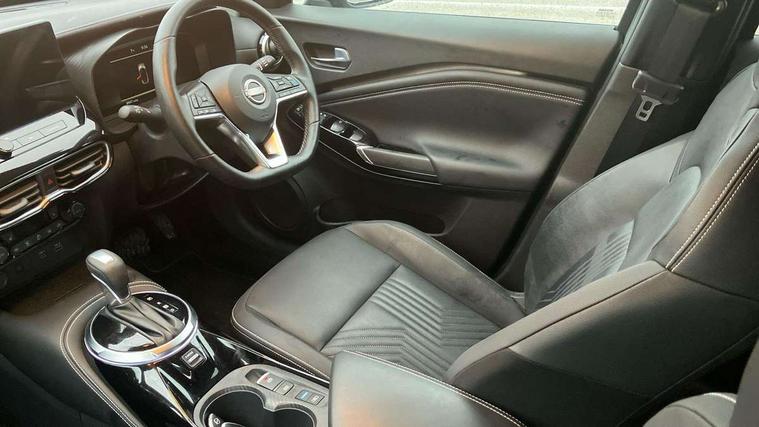12.3" full colour TFT screen combimeter, Drive modes select (Eco, normal and sport), e-Pedal step, Emergency and breakdown call, EV mode switch, Front parking sensor, Intelligent driver alert system, Intelligent lane intervention, Lane departure warning system, Nissan connect 12.3" touch screen entertainment system, Nissan connect nav with TomTom traffic, Nissan connect services, Outside temperature sensor, Power Steering, Rear parking sensor, Stop/start button, Traffic sign recognition, Trip computer, Voice recognition, WiFi connectivity, Wireless Apple CarPlay and Google Android auto, Wireless Smartphone charger, 10 Bose speakers 6 speakers and 2 headrest speakers for driver/passenger seats, 2 X Rear console USB port, Bluetooth system, USB, Aux-in and 12V socket, Bose personal sound stage control, DAB Digital radio, Auto dimming frameless rear view mirror, Automatic hazard signal with emergency stop signal, Body colour door handles, Electrically adjustable door mirrors with integrated indicators, Follow me home headlights, Front and rear electric window with one touch driver window, Heated and auto folding door mirrors, High beam assist, LED 3rd brake light, LED daytime running lights, LED front fog lights, LED headlamps, LED rear fog lamp, LED rear lamps, One touch passenger window, Rain sensor windscreen wipers, Rear privacy glass, Rear side wing doors, Rear wiper, Roof spoiler, Shark fin roof antenna in solid Black, Three blink turn signal, 3 height adjustable rear headrests, 3 seat bench in 2nd row, 60/40 split folding rear seat, Automatic climate control, Card holder on driver sunvisor, Door ambient lighting, Driver seat back pocket, Driver side rear coat hanger, Driver/passenger sunvisors and vanity mirrors, Front and rear cabin lights, Front armrest, Front door pockets with bottle holders, Front head restraints, Front/rear passenger grab handles, Gear console ambient circle lighting, Height adjustable driver's seat, Internal chrome door handles, Leather gearshift knob, Luggage board, Luggage space lighting, Monoform sporty seats, Multifunction steering wheel, Passenger seat back pocket, Rear door bottle holders, Single front passenger seat, Smooth synthetic leather steering wheel, Synthetic leather kneepad, Synthetic leather upholstery, Telescopic steering wheel adjustment, Two cupholders in front centre console, Two rear isofix child seat anchorage points with top tether, Welcome light and console tray ambient lighting, Heat pack with height adjustable passenger seats - Juke, ProPilot pack - Juke Auto, ABS with EBD and brake assist, Active ride control, Active Trace Control, Driver and passenger airbags, Driver and passenger side airbags, Electric handbrake with auto hold function, Electronic Stability Programme (ESP), Front and rear curtain airbags, Height adjustable seatbelts, Hill start assist, Intelligent emergency braking with pedestrian and cyclist recognition, Rear door child safety locks, Seatbelt reminder for driver/front passenger and rear seats, Three 3 point rear seatbelts, Traction control, Tyre pressure monitoring system, VDC Dynamic Vehicle Control, Alarm, Immobiliser, Intelligent key and start push button with walk away lock and approach unlock functions, Remote central locking, 19" Alloy wheels, Tyre puncture repair kit,