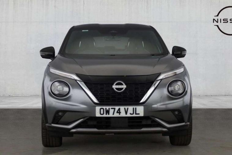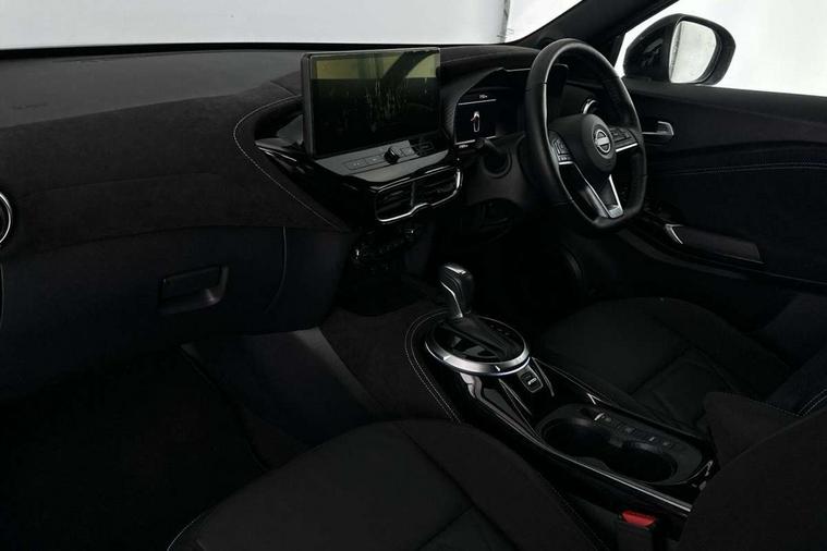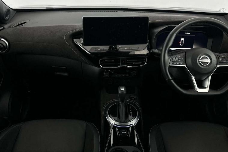 12.3" full colour TFT screen combimeter, Drive modes select (Eco, normal and sport), e-Pedal step, Emergency and breakdown call, EV mode switch, Front parking sensor, Intelligent driver alert system, Intelligent lane intervention, Lane departure warning system, Nissan connect 12.3" touch screen entertainment system, Nissan connect nav with TomTom traffic, Nissan connect services, Outside temperature sensor, Power Steering, Rear parking sensor, Stop/start button, Traffic sign recognition, Trip computer, Voice recognition, WiFi connectivity, Wireless Apple CarPlay and Google Android auto, Wireless Smartphone charger, 10 Bose speakers 6 speakers and 2 headrest speakers for driver/passenger seats, 2 X Rear console USB port, Bluetooth system, USB, Aux-in and 12V socket, Bose personal sound stage control, DAB Digital radio, Auto dimming frameless rear view mirror, Automatic hazard signal with emergency stop signal, Body colour door handles, Electrically adjustable door mirrors with integrated indicators, Follow me home headlights, Front and rear electric window with one touch driver window, Heated and auto folding door mirrors, High beam assist, LED 3rd brake light, LED daytime running lights, LED front fog lights, LED headlamps, LED rear fog lamp, LED rear lamps, One touch passenger window, Rain sensor windscreen wipers, Rear privacy glass, Rear side wing doors, Rear wiper, Roof spoiler, Shark fin roof antenna in solid Black, Three blink turn signal, 3 height adjustable rear headrests, 3 seat bench in 2nd row, 60/40 split folding rear seat, Automatic climate control, Card holder on driver sunvisor, Door ambient lighting, Driver seat back pocket, Driver side rear coat hanger, Driver/passenger sunvisors and vanity mirrors, Front and rear cabin lights, Front armrest, Front door pockets with bottle holders, Front head restraints, Front/rear passenger grab handles, Gear console ambient circle lighting, Height adjustable driver's seat, Internal chrome door handles, Leather gearshift knob, Luggage board, Luggage space lighting, Monoform sporty seats, Multifunction steering wheel, Passenger seat back pocket, Rear door bottle holders, Single front passenger seat, Smooth synthetic leather steering wheel, Synthetic leather kneepad, Telescopic steering wheel adjustment, Two cupholders in front centre console, Two rear isofix child seat anchorage points with top tether, Welcome light and console tray ambient lighting, Heat pack with height adjustable passenger seats - Juke, Interior personalisation pack - Juke, ProPilot pack - Juke Auto, Satin grey exterior personalisation pack - Juke, ABS with EBD and brake assist, Active ride control, Active Trace Control, Driver and passenger airbags, Driver and passenger side airbags, Electric handbrake with auto hold function, Electronic Stability Programme (ESP), Front and rear curtain airbags, Height adjustable seatbelts, Hill start assist, Intelligent emergency braking with pedestrian and cyclist recognition, Rear door child safety locks, Seatbelt reminder for driver/front passenger and rear seats, Three 3 point rear seatbelts, Traction control, Tyre pressure monitoring system, VDC Dynamic Vehicle Control, Alarm, Immobiliser, Intelligent key and start push button with walk away lock and approach unlock functions, Remote central locking, 19" Aero alloy wheels, Tyre puncture repair kit,
