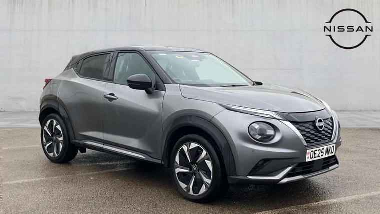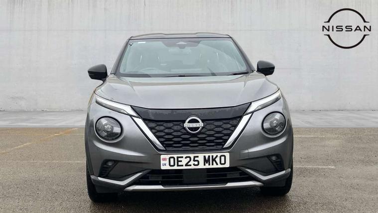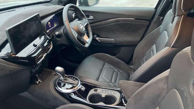 12.3" full colour TFT screen combimeter, Drive modes select (Eco, normal and sport), e-Pedal step, Emergency and breakdown call, EV mode switch, Front parking sensor, Intelligent driver alert system, Intelligent lane intervention, Lane departure warning system, Nissan connect 12.3" touch screen entertainment system, Nissan connect nav with TomTom traffic, Nissan connect services, Outside temperature sensor, Power Steering, Rear parking sensor, Stop/start button, Traffic sign recognition, Trip computer, Voice recognition, WiFi connectivity, Wireless Apple CarPlay and Google Android auto, Wireless Smartphone charger, 10 Bose speakers 6 speakers and 2 headrest speakers for driver/passenger seats, 2 X Rear console USB port, Bluetooth system, USB, Aux-in and 12V socket, Bose personal sound stage control, DAB Digital radio, Auto dimming frameless rear view mirror, Automatic hazard signal with emergency stop signal, Body colour door handles, Electrically adjustable door mirrors with integrated indicators, Follow me home headlights, Front and rear electric window with one touch driver window, Heated and auto folding door mirrors, High beam assist, LED 3rd brake light, LED daytime running lights, LED front fog lights, LED headlamps, LED rear fog lamp, LED rear lamps, One touch passenger window, Rain sensor windscreen wipers, Rear privacy glass, Rear side wing doors, Rear wiper, Roof spoiler, Shark fin roof antenna in solid Black, Three blink turn signal, 3 height adjustable rear headrests, 3 seat bench in 2nd row, 60/40 split folding rear seat, Automatic climate control, Card holder on driver sunvisor, Door ambient lighting, Driver seat back pocket, Driver side rear coat hanger, Driver/passenger sunvisors and vanity mirrors, Front and rear cabin lights, Front armrest, Front door pockets with bottle holders, Front head restraints, Front/rear passenger grab handles, Gear console ambient circle lighting, Height adjustable driver's seat, Internal chrome door handles, Leather gearshift knob, Luggage board, Luggage space lighting, Monoform sporty seats, Multifunction steering wheel, Passenger seat back pocket, Rear door bottle holders, Single front passenger seat, Smooth synthetic leather steering wheel, Synthetic leather kneepad, Telescopic steering wheel adjustment, Two cupholders in front centre console, Two rear isofix child seat anchorage points with top tether, Welcome light and console tray ambient lighting, Heat pack with height adjustable passenger seats - Juke, Interior personalisation pack - Juke, ProPilot pack - Juke Auto, Satin grey exterior personalisation pack - Juke, ABS with EBD and brake assist, Active ride control, Active Trace Control, Driver and passenger airbags, Driver and passenger side airbags, Electric handbrake with auto hold function, Electronic Stability Programme (ESP), Front and rear curtain airbags, Height adjustable seatbelts, Hill start assist, Intelligent emergency braking with pedestrian and cyclist recognition, Rear door child safety locks, Seatbelt reminder for driver/front passenger and rear seats, Three 3 point rear seatbelts, Traction control, Tyre pressure monitoring system, VDC Dynamic Vehicle Control, Alarm, Immobiliser, Intelligent key and start push button with walk away lock and approach unlock functions, Remote central locking, 19" Aero alloy wheels, Tyre puncture repair kit,