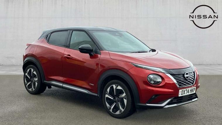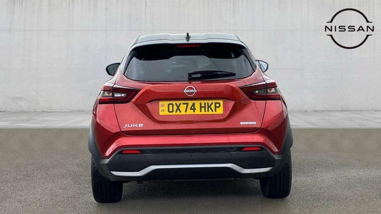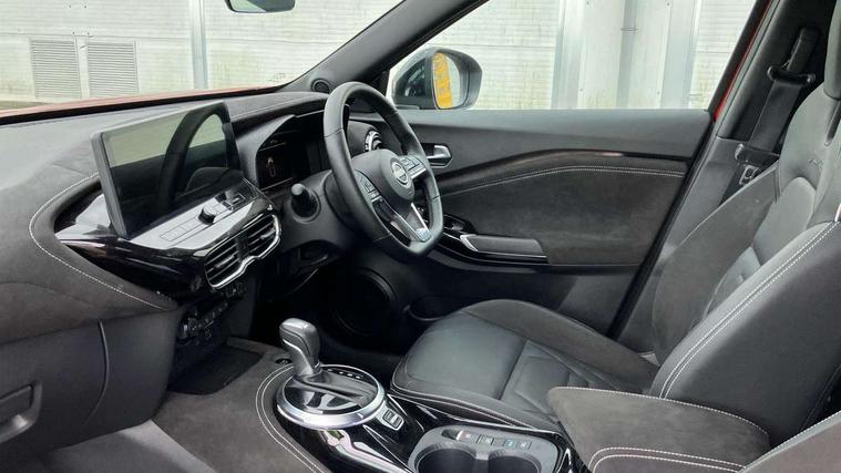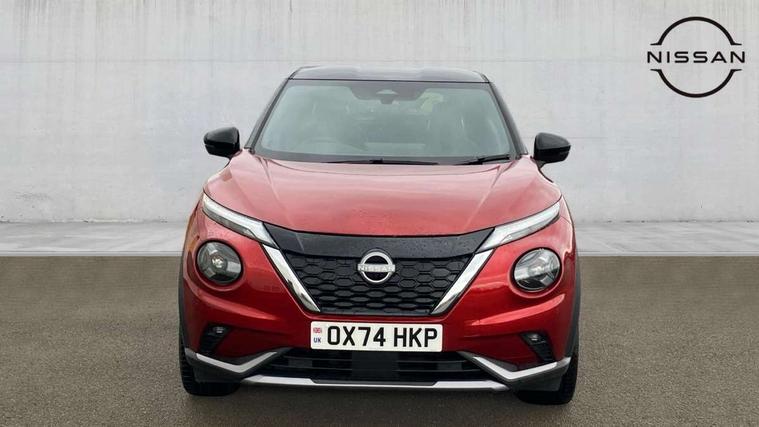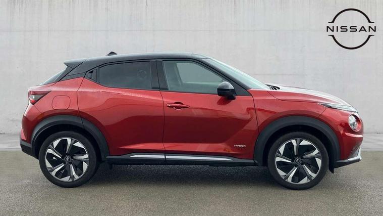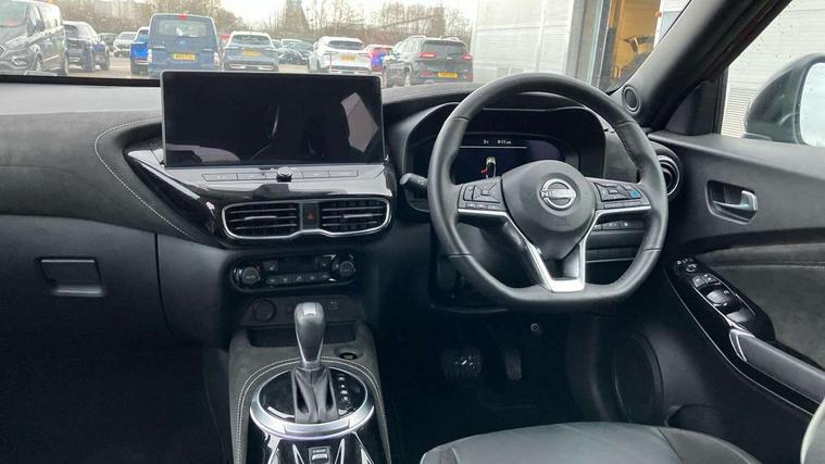 12.3" full colour TFT screen combimeter, Drive modes select (Eco, normal and sport), e-Pedal step, Emergency and breakdown call, EV mode switch, Front parking sensor, Intelligent driver alert system, Intelligent lane intervention, Lane departure warning system, Nissan connect 12.3" touch screen entertainment system, Nissan connect nav with TomTom traffic, Nissan connect services, Outside temperature sensor, Power Steering, Rear parking sensor, Stop/start button, Traffic sign recognition, Trip computer, Voice recognition, WiFi connectivity, Wireless Apple CarPlay and Google Android auto, Wireless Smartphone charger, 10 Bose speakers 6 speakers and 2 headrest speakers for driver/passenger seats, 2 X Rear console USB port, Bluetooth system, USB, Aux-in and 12V socket, Bose personal sound stage control, DAB Digital radio, Auto dimming frameless rear view mirror, Automatic hazard signal with emergency stop signal, Body colour door handles, Electrically adjustable door mirrors with integrated indicators, Follow me home headlights, Front and rear electric window with one touch driver window, Heated and auto folding door mirrors, High beam assist, LED 3rd brake light, LED daytime running lights, LED front fog lights, LED headlamps, LED rear fog lamp, LED rear lamps, One touch passenger window, Rain sensor windscreen wipers, Rear privacy glass, Rear side wing doors, Rear wiper, Roof spoiler, Shark fin roof antenna in solid Black, Three blink turn signal, 3 height adjustable rear headrests, 3 seat bench in 2nd row, 60/40 split folding rear seat, Automatic climate control, Card holder on driver sunvisor, Door ambient lighting, Driver seat back pocket, Driver side rear coat hanger, Driver/passenger sunvisors and vanity mirrors, Front and rear cabin lights, Front armrest, Front door pockets with bottle holders, Front head restraints, Front/rear passenger grab handles, Gear console ambient circle lighting, Height adjustable driver's seat, Internal chrome door handles, Leather gearshift knob, Luggage board, Luggage space lighting, Monoform sporty seats, Multifunction steering wheel, Passenger seat back pocket, Rear door bottle holders, Single front passenger seat, Smooth synthetic leather steering wheel, Synthetic leather kneepad, Telescopic steering wheel adjustment, Two cupholders in front centre console, Two rear isofix child seat anchorage points with top tether, Welcome light and console tray ambient lighting, Heat pack with height adjustable passenger seats - Juke, Interior personalisation pack - Juke, ProPilot pack - Juke Auto, Satin grey exterior personalisation pack - Juke, ABS with EBD and brake assist, Active ride control, Active Trace Control, Driver and passenger airbags, Driver and passenger side airbags, Electric handbrake with auto hold function, Electronic Stability Programme (ESP), Front and rear curtain airbags, Height adjustable seatbelts, Hill start assist, Intelligent emergency braking with pedestrian and cyclist recognition, Rear door child safety locks, Seatbelt reminder for driver/front passenger and rear seats, Three 3 point rear seatbelts, Traction control, Tyre pressure monitoring system, VDC Dynamic Vehicle Control, Alarm, Immobiliser, Intelligent key and start push button with walk away lock and approach unlock functions, Remote central locking, 19" Aero alloy wheels, Tyre puncture repair kit,
