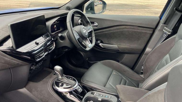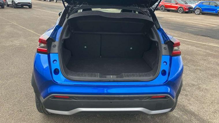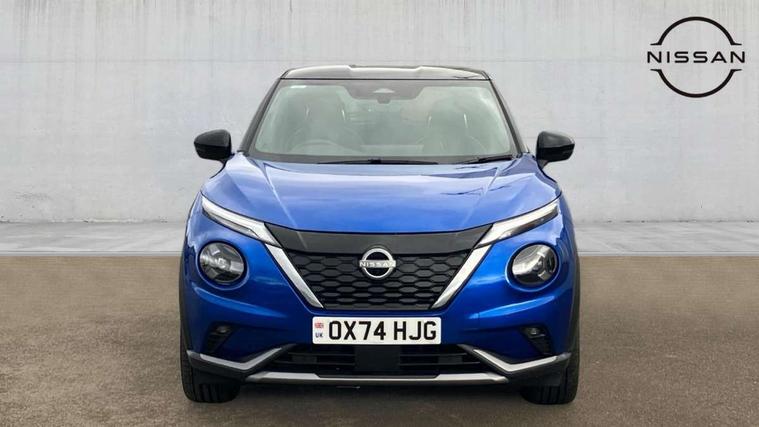 12.3" full colour TFT screen combimeter, Drive modes select (Eco, normal and sport), e-Pedal step, Emergency and breakdown call, EV mode switch, Front parking sensor, Intelligent driver alert system, Intelligent lane intervention, Lane departure warning system, Nissan connect 12.3" touch screen entertainment system, Nissan connect nav with TomTom traffic, Nissan connect services, Outside temperature sensor, Power Steering, Rear parking sensor, Stop/start button, Traffic sign recognition, Trip computer, Voice recognition, WiFi connectivity, Wireless Apple CarPlay and Google Android auto, Wireless Smartphone charger, 10 Bose speakers 6 speakers and 2 headrest speakers for driver/passenger seats, 2 X Rear console USB port, Bluetooth system, USB, Aux-in and 12V socket, Bose personal sound stage control, DAB Digital radio, Auto dimming frameless rear view mirror, Automatic hazard signal with emergency stop signal, Body colour door handles, Electrically adjustable door mirrors with integrated indicators, Follow me home headlights, Front and rear electric window with one touch driver window, Heated and auto folding door mirrors, High beam assist, LED 3rd brake light, LED daytime running lights, LED front fog lights, LED headlamps, LED rear fog lamp, LED rear lamps, One touch passenger window, Rain sensor windscreen wipers, Rear privacy glass, Rear side wing doors, Rear wiper, Roof spoiler, Shark fin roof antenna in solid Black, Three blink turn signal, 3 height adjustable rear headrests, 3 seat bench in 2nd row, 60/40 split folding rear seat, Automatic climate control, Card holder on driver sunvisor, Door ambient lighting, Driver seat back pocket, Driver side rear coat hanger, Driver/passenger sunvisors and vanity mirrors, Front and rear cabin lights, Front armrest, Front door pockets with bottle holders, Front head restraints, Front/rear passenger grab handles, Gear console ambient circle lighting, Height adjustable driver's seat, Internal chrome door handles, Leather gearshift knob, Luggage board, Luggage space lighting, Monoform sporty seats, Multifunction steering wheel, Passenger seat back pocket, Rear door bottle holders, Single front passenger seat, Smooth synthetic leather steering wheel, Synthetic leather kneepad, Telescopic steering wheel adjustment, Two cupholders in front centre console, Two rear isofix child seat anchorage points with top tether, Welcome light and console tray ambient lighting, Heat pack with height adjustable passenger seats - Juke, Interior personalisation pack - Juke, ProPilot pack - Juke Auto, Satin grey exterior personalisation pack - Juke, ABS with EBD and brake assist, Active ride control, Active Trace Control, Driver and passenger airbags, Driver and passenger side airbags, Electric handbrake with auto hold function, Electronic Stability Programme (ESP), Front and rear curtain airbags, Height adjustable seatbelts, Hill start assist, Intelligent emergency braking with pedestrian and cyclist recognition, Rear door child safety locks, Seatbelt reminder for driver/front passenger and rear seats, Three 3 point rear seatbelts, Traction control, Tyre pressure monitoring system, VDC Dynamic Vehicle Control, Alarm, Immobiliser, Intelligent key and start push button with walk away lock and approach unlock functions, Remote central locking, 19" Aero alloy wheels, Tyre puncture repair kit,
