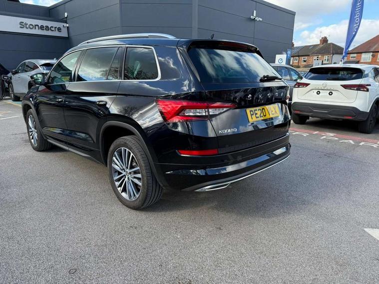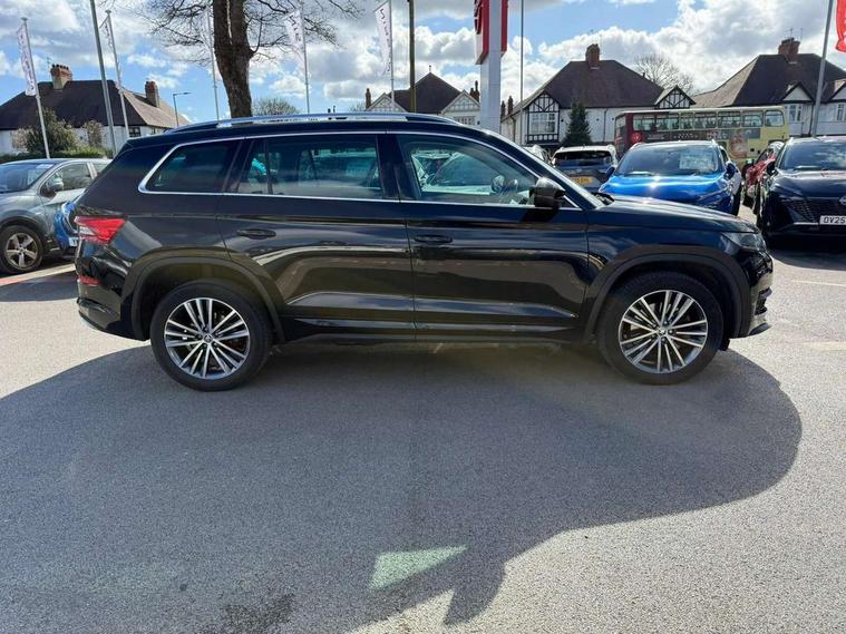 Bluetooth system, Colour multifunction trip computer, Columbus satellite navigation with 9.2" touch screen and integrated Wi-Fi + WLAN, Digital voice enhancement, ECO Stop/start function, Exterior temperature indicator, Map care, Phone box, Progressive power assisted steering, SmartLink plus, Speed limiter, Bolero Radio, Canton sound system, DAB Digital radio, DVD System, USB and SD card connectivity, Aero front windscreen wipers with intermittent function, Aero rear window wiper, Auto dimming rear view mirror, Automatic activation of hazard warning lights, Black electric window control buttons, Black wheel arch surrounds, Body colour bumpers, Body colour door mirrors and handles, Body colour door panels, Chrome grille in frame and ribs, Electric front and rear windows, Electrically adjustable/heated/foldable and auto dimming door mirrors with memory function, Front and rear door steps with Kodiaq logo, Full LED Headlights with adaptive front light system and LED daytime running lights, Headlight washers, Heated rear window, Heated windscreen with heated windscreen washer nozzles, High beam assist, LED front fog lights with static cornering light function, LED rear fog light, LED rear lights with high functionality, LED third brake light in rear spoiler, Light assistant (coming home/tunnel light), Panoramic sunroof, Rain and light sensors, Rear bumper with visible design exhaust pipes and diffuser, Rear spoiler, Safety reflectors on front and rear doors, Silver roof rails, Sunset privacy glass, Without engine designation, 12V socket in boot, 2 rails with 2 hooks including 4 hooks for net programme, 4 foldable roof handles with rear coat hooks, 4 lashing points on luggage floor, 60:40 foldable rear seat with sliding adjustment and backrest angle adjustment, Aluminium pedals, Ambient lighting, Bottle holders in door panel in the 1.5 litre front and 1 litre rear, Cargo storage compartments, Centre console with open storage box, cup holder and 12V socket, Chrome headlight control button, Chrome interior door handles, Coat hooks on B pillar, Covered storage compartment on driver side, Decor in piano black with Laurin & Klement logo on front seats, Electrically adjustable front seats with lumbar support and memory function, Front and rear door armrest with black adductor trim, Front centre armrest with storage compartment, Front courtesy lights, Gear shift lever with chrome frame and black gloss insert, Height adjustable front headrests, Height adjustable rear headrests, Illuminated and cooled glovebox, Illuminated luggage compartment, Isofix system on outer rear seats, Leather upholstery with L&K logo, Manually adjustable steering column, Net programme in boot (1x horizontal Net, 2x vertical Nets), Overhead glasses storage compartment, Pollen filter, Rear centre armrest with cupholders, Roll up luggage compartment cover with intermediate position, Small Bags on the inner sides of the front backrests, Small pockets on the inner side of the front backrests, Storage compartment in lower middle Instrument panel, illuminated with closing, Three rear height adjustable headrests, Ticket holder on A Pillar, Umbrella in door panel, Variable boot floor, Welcome animation with Laurin & Klement logo, LED Interior Light pack - Kodiaq Scout/Sport Line/VRS/Laurin + Klement, Auto door release and activation of warning lights, Curtain airbags, Driver and passenger airbags, Electronic parking brake with hill hold control, Emergency rear braking signal, ESC (incl. ABS+MSR+ASR+EDS+HBA+DSR+RBS+MKB), Front and rear three point safety belt on all seats, Front assist includes AEB city/urban, Front side airbags, Fuel cut off safety device, Head and knee airbags, Passenger airbag deactivate switch, Rear disc brakes, Safety vest holder in door, Seat belt reminder for all seats, Tailgate unlocking from outside, Two tone horn, Tyre pressure monitor, Warning lights in front doors, Alarm with interior monitoring and tilt sensor with safe function, Immobiliser, Keyless entry and start system (KESSY), Remote central locking, Piano black dash inserts, Plaquette L&K front fenders, 19" Sirius anthracite alloy wheels with anti-theft wheel bolts, Temporary spare wheel,