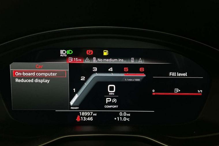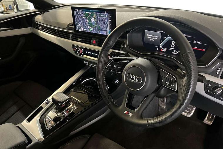 Audi connect safety and service (e-call), Audi drive select (Auto, Comfort, Dynamic, Efficiency and Individual), Audi smartphone interface, Audi virtual cockpit - 12.3" full colour digital instrument cluster, vehicle/engine speed, Radio/media information+Driver assistance systems, Automatic start-stop system with coasting functionality and efficiency programme, Bluetooth interface, Camera based traffic sign recognition, Electro-mechanical power steering, Email, calendar and text messages displayed via MMI, Front and rear parking sensors, Lane departure warning, MMI nav+ with MMI touch - 10.1" high resolution MMI display, touch sensitive, 3D map, route/country info, dynamic route guide, personal route assist, Power operated tailgate, Rear view camera, Service interval indicator, Voice control system, Diesel particulate filter, Sports suspension lowered by 23mm, 8 passive loudspeakers, CD player, DAB digital radio reception, Two additional USB ports for rear passenger in rear centre console, Two SDXC card slots, Auto dimming door mirrors, Auto dimming rear view mirror, Body colour bumpers, Body colour door handles, Body colour front spoiler lip, Body colour side sill trim, Body coloured door mirrors, Electric adjustable heated door mirrors, Electric folding door mirrors, Electric front windows, Front fog lights, Honeycomb structure radiator grille in grained matt black, Kerb-view function for passenger side, LED headlights and rear lights with LED daytime running lights, LED side indicator lights integrated into door mirrors, LED third brake light, Matt aluminium silver tailpipe trim, Privacy glass, Rain and light sensors, Rear side wing doors, Rear wiper, S line badges on front wings, S line front and rear bumpers with side skirts, S Line rear diffuser in matt anthracite black with trim strip in matt aluminium silver, Side air inlets in grained matt black with matt aluminium silver inlay, Variable front intermittent wipers, Windscreen with acoustic glazing, 3 seat bench in 2nd row, 3 spoke high multifunction leather sport steering wheel with paddle shfit and S badging perforated leather grips, 4 way electric lumbar support for driver and front passenger, 40/20/40 split folding 3 seater rear bench seat, Adjustable steering column, Black cloth headlining, Black perforated leather gearknob, Contrast stitching on seats, steering wheel and gear lever gaiter, Deluxe 3 zone electronic climate control, Front centre armrest, Front head restraints, Front/rear floor mats, Heated front seats, Illuminated door sill trim with S logo, ISOFIX child seat mounting and top tether, Luggage compartment mat, Manual seat adjustment, Rear centre armrest, Rear headrests, Single front passenger seat, Stainless steel pedals and footrest, Sunvisors with vanity mirrors, LED interior light pack - A5/RS5, 3x3 point rear seatbelts, 6 airbags - Driver, front passenger, curtain and side airbags, Attention and drowsiness assist, Electromechanical parking brake, Electronic Stabilisation Control (ESC) including ABS, ASR and EDL, Front passenger airbag deactivation, Height adjustable front seatbelts, Hill hold assist, Manual child lock in rear doors, Multi collision brake assist, Pop-up bonnet for pedestrian protection, Pre sense city, Seatbelt monitoring, Tyre pressure warning, Variable restraint system, Warning triangle and first aid kit, Anti theft alarm system, Anti theft wheel bolts, Immobiliser, Keyless Go, Remote central locking, Matt brushed aluminium inlays, Tool kit, Tyre repair kit,