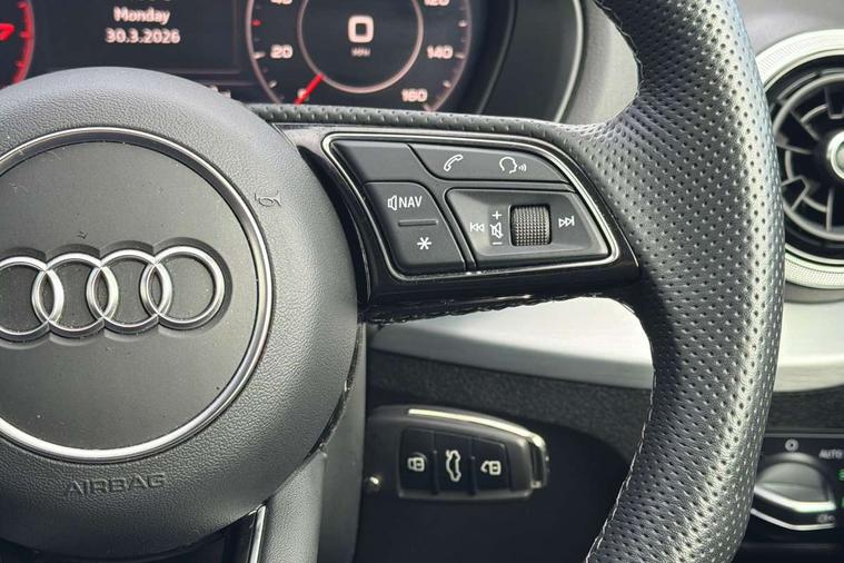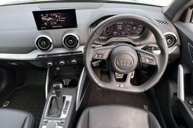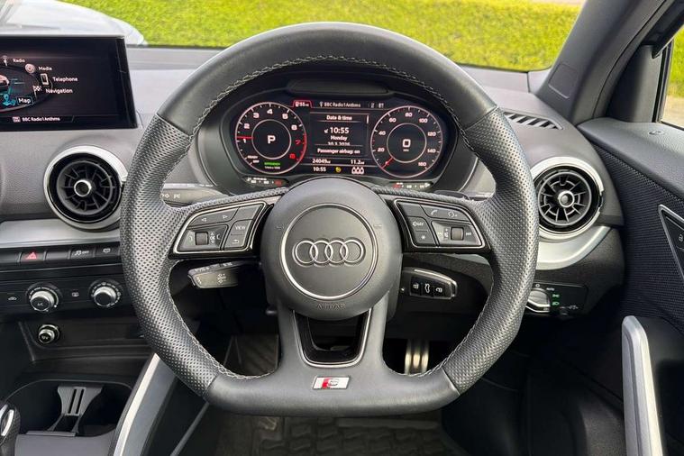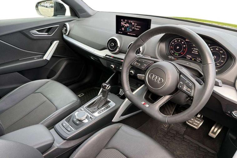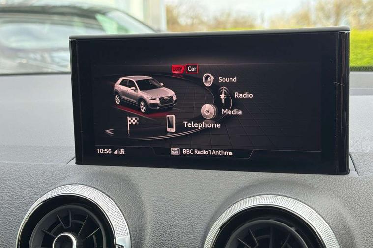 3D map display, Audi connect navigation and infotainment includes innovative services, Audi connect remote and control connects your vehicle to your smartphone, Audi drive select: S tronic - power steering assistance + engine + gearshift (modes: comfort, auto, dynamic, efficiency, individual), Audi smartphone interface - Apple carplay/Android Auto, USB connect, 2xSDXC card readers, voice control for navi, telephone, music and 3rd party apps, Audi virtual cockpit, Automatic start/stop system with recuperation, Bluetooth interface includes bluetooth audio streaming, Cruise control, E-call, Jukebox hard drive memory for music (10GB), MMI navigation plus with 8.3" colour MMI screen and MMI touch, Natural voice recognition, Power operated tailgate, Progressive steering, Rear parking sensors, Sport suspension, 6 passive loudspeakers, DAB Digital radio, Audi beam, Auto dimming rear view mirror, Black window trims, Bumper in full body colour paint finish, Electrically adjustable, folding, auto dimming and heated door mirrors with integrated LED side indicators, Front windscreen with grey tinted sunband, LED daytime running lights, LED headlights with dipped beam, high beam, position lights, indicators, LED rear lights, LED third brake light, Privacy glass - dark tinted rear and rear side windows from B-pillar backwards, Rear side wing doors, Rear wiper, Variable front intermittent wipers, Wheel arch trims in manhattan grey, 12v socket in front, 3 seat bench in 2nd row, 3 spoke flat bottomed multi-function leather sport steering wheel with gear shift paddles, 4-way electric lumbar support for front seats including manual seat height adjustment for both front seats, 60/40 split folding rear seat bench, Black carpets, Black cloth headlining, Front and rear head restraints, Front centre armrest, Front sport seats, Front/rear floor mats, Height/reach adjust steering wheel, Illuminated door sill trims with S logo, ISOFIX child seat mounting in front passenger and rear outer seats, Manual air conditioning, Single front passenger seat, Stainless steel pedals, Tool kit, Black styling pack - Q2, 3x3 point rear seatbelts, 6 airbags - Front, curtain and front side airbags, Electromechanical parking brake, Electronic stabilisation control including ABS, ASR and EDL, Front passenger airbag deactivation, Hill hold assist, Pre-sense front with pedestrian recognition, Seatbelt monitoring, Tyre pressure warning light with visual and acoustic warning, Warning triangle and first aid kit, Anti theft alarm, Anti theft wheel bolts, Electronically operated child locks, Remote central door locking, Aluminium interior element, Black dashboard, Matt brushed aluminium trim inlays,