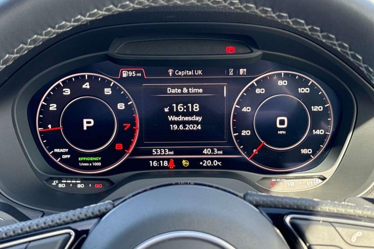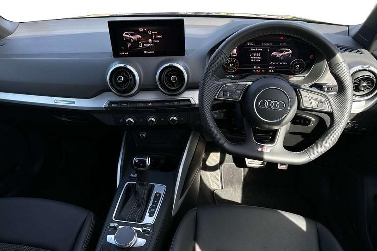 3D map display, Audi connect navigation and infotainment includes innovative services, Audi connect remote and control connects your vehicle to your smartphone, Audi drive select: S tronic - power steering assistance + engine + gearshift (modes: comfort, auto, dynamic, efficiency, individual), Audi smartphone interface - Apple carplay/Android Auto, USB connect, 2xSDXC card readers, voice control for navi, telephone, music and 3rd party apps, Audi virtual cockpit, Automatic start/stop system with recuperation, Bluetooth interface includes bluetooth audio streaming, Cruise control, E-call, Jukebox hard drive memory for music (10GB), MMI navigation plus with 8.3" colour MMI screen and MMI touch, Natural voice recognition, Power operated tailgate, Progressive steering, Rear parking sensors, Sport suspension, 6 passive loudspeakers, DAB Digital radio, Audi beam, Auto dimming rear view mirror, Black window trims, Bumper in full body colour paint finish, Electrically adjustable, folding, auto dimming and heated door mirrors with integrated LED side indicators, Front windscreen with grey tinted sunband, LED daytime running lights, LED headlights with dipped beam, high beam, position lights, indicators, LED rear lights, LED third brake light, Privacy glass - dark tinted rear and rear side windows from B-pillar backwards, Rear side wing doors, Rear wiper, Variable front intermittent wipers, Wheel arch trims in manhattan grey, 12v socket in front, 3 seat bench in 2nd row, 3 spoke flat bottomed multi-function leather sport steering wheel with gear shift paddles, 4-way electric lumbar support for front seats including manual seat height adjustment for both front seats, 60/40 split folding rear seat bench, Black carpets, Black cloth headlining, Front and rear head restraints, Front centre armrest, Front sport seats, Front/rear floor mats, Height/reach adjust steering wheel, Illuminated door sill trims with S logo, ISOFIX child seat mounting in front passenger and rear outer seats, Manual air conditioning, Single front passenger seat, Stainless steel pedals, Tool kit, Black styling pack - Q2, 3x3 point rear seatbelts, 6 airbags - Front, curtain and front side airbags, Electromechanical parking brake, Electronic stabilisation control including ABS, ASR and EDL, Front passenger airbag deactivation, Hill hold assist, Pre-sense front with pedestrian recognition, Seatbelt monitoring, Tyre pressure warning light with visual and acoustic warning, Warning triangle and first aid kit, Anti theft alarm, Anti theft wheel bolts, Electronically operated child locks, Remote central door locking, Aluminium interior element, Black dashboard, Matt brushed aluminium trim inlays,