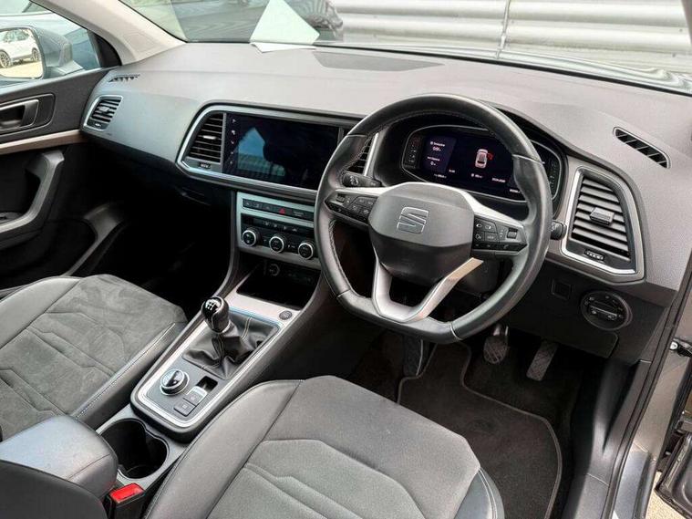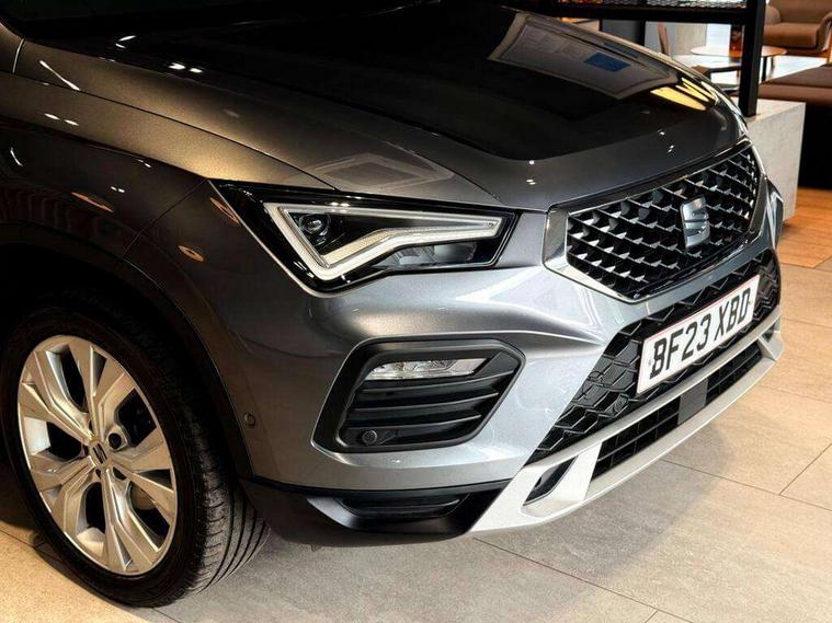 8" Digital cockpit, Colour multi-function on board computer display, E-call, Outside temperature gauge, Progressive power assisted steering, Rear view camera, SEAT drive profile with driving experience button - Normal, Sport, Eco and Individual mode, steering and throttle response, Self parking functionality (includes front and rear parking sensors), Start/stop system, Tailgate, Trip computer, Wireless full link smartphone integration, Wireless phone charger, Steering wheel mounted audio/phone controls, Black simulated exhaust pipes, Black wheel arch surrounds, Body colour bumpers, Chrome front grille frame, Chrome roof rails, Chrome side window trim, Dark tinted rear windows, Daytime running lights, Door mirrors with welcome light silhouette, Dynamic headlight range control with self adjusting whilst driving, Electric adjustable/heated/folding door mirrors, Front and rear electric windows, Front grille hot stamping, Full LED headlamps with lens and LED front fog lamps with cornering function, Illuminated aluminium front door sill, LED rear tail lights with dynamic indicators, Rear fog lights, Rear side wing doors, Rear wash/wipe, Reflex silver side mouldings, Variable front intermittent wipers, 12V socket in front, 3 seat bench in 2nd row, 60/40 split folding rear seat, Drawer under right front seat, Dual zone climate control, Front and rear head restraints, Front centre armrest, Front seat back storage pockets, Height adjustable driver and passenger seat with lumbar adjustment, ISOFIX points in outer rear seats with top tether anchorage points, Leather steering wheel and gear knob, Microsuede upholstery with front comfort seats, Rear armrest and easy back seat release mechanism from boot, Single front passenger seat, Convenience pack - Ateca, Interior lighting pack - Ateca, Navigation system pack with DAB - Ateca, Safe and driving pack with lane assist - Ateca, 3x3 point rear seatbelts, ABS, Traction control system (TCS), Electronic stability control (ESC) and Electronic differential lock system (XDS), Airbags - Driver and front passenger airbag with deactivation, front side, two curtain and driver's knee airbags, Electric parking brake with auto hold function, Front and rear seatbelt reminder, Hill hold control, Manual rear child locks, Single tone horn, Tiredness recognition system, Traction control, Tyre pressure monitoring system, Alarm, Keyless entry, Locking wheel bolts, Remote central locking, Chrome interior detailing, 18" Brillaint silver alloy wheels,