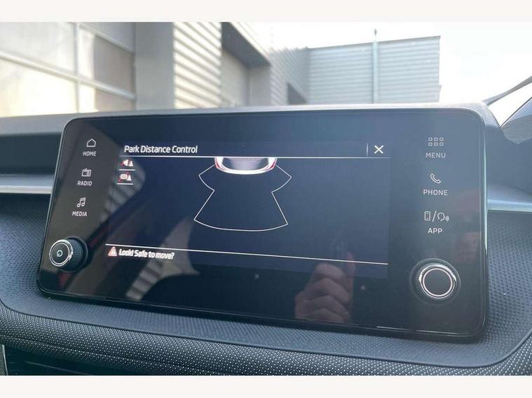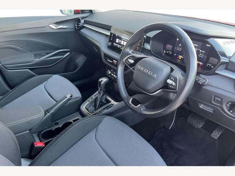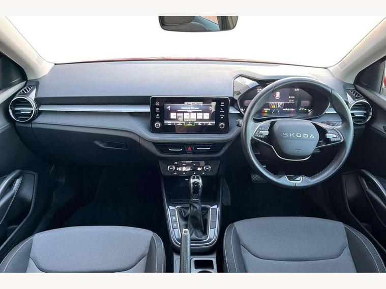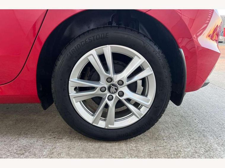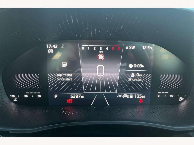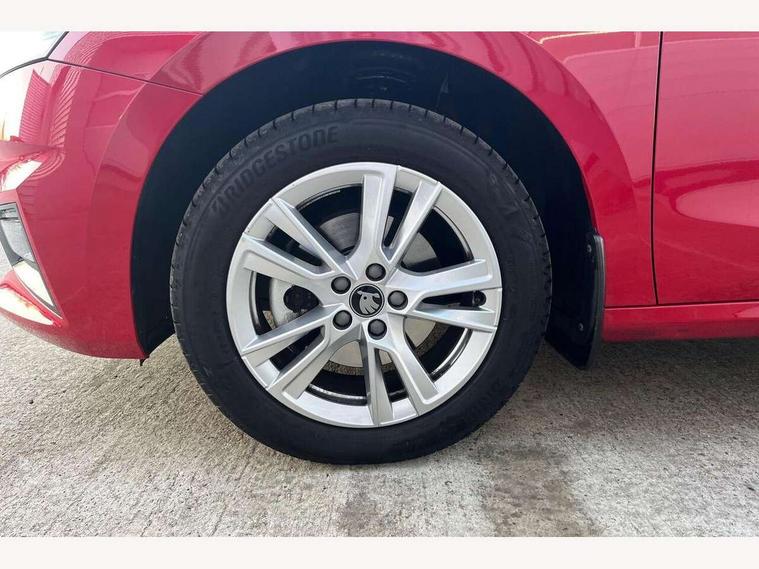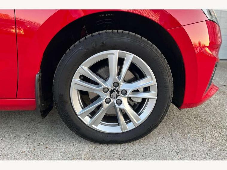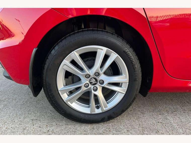 8" Digital instrument display, Advanced driver attention and drowsiness monitor, Bluetooth connection, Electromechanical power steering, Exterior temperature gauge, Service interval indicator, Traffic sign recognition, Wireless SmartLink for Apple CarPlay and Android Auto, 6 Speakers (4 in front and 2 in rear), 8.25" Skoda infotainment touchscreen display, Auxiliary socket for external MP3 player, DAB digital radio reception, Auto dimming rear view mirror, Body colour door mirrors, Body coloured bumpers, Door mirror integrated indicators, Front and rear electric windows, Front window wiper intermittent control, Headlight range control - Automatic, Ice scraper in fuel cap, LED 3rd brake light, LED daytime running lights with coming and leaving home feature, LED rear lights, Rear LED fog light, Rear side wing doors, Rear window wiper with washing nozzles, Roof mounted spoiler, SKODA tailgate lettering in chrome, Unique dark chrome design logo on alloy wheels, 2 reading lights in front and 2 reading lights in rear, 3 rear headrests, Backrest split and folding, Central console with removable cup holder and storage box, Chrome handbrake release button, Dual zone air conditioning with climatronic electronic control, Fabric upholstery, Front centre armrest, Gearshift knob/handle in leather, Grain satin black interior door handles, Hand brake lever handle in leather, Height adjustable front headrests, Height adjustable front seats, Height adjustable steering wheel, ISOFIX and TopTether anchorage points to the outer rear seats, ISOFIX and TopTether on the front passenger seat, Luggage compartment lighting, Manually adjustable lumbar support in front seats, Pollen filter, Rear seat bench unsplit, Single front passenger seat, Skoda lettering on steering wheel, Storm grey headlining, Sun visors with mirror and airbag label on passenger side, Textile floor mats, Ticket holder, Umbrella in drivers door, 3-point height adjustable front seats belts with pretensioner and force limiter, Automatic warning lights in case of crash, Driver and passengers airbag with switch off function, e-Call+, ESC including ABS, MSR, ASR, EDS, HBA and XDS, Front and rear seat belt warning, FRONT ASSIST (AEB City and AEB Inter Urban), Front side airbags, Head airbags, Hill hold control, One tone horn, Pedestrian protection, Three rear 3-points safety seat belts with pretensioner and force limiter including stop function for outer rear seat belts, Tyre pressure monitoring system, Anti-theft alarm system including immobiliser, interior monitoring, backup horn, and towing protection, Central locking with radio remote control, interior controls, SAFE function and 2 foldable keys, Black painted air vents, Grain satin black central console cover, Metallic grey upper decorative trim, Satin black door and side trim panel in front, Textile Kota grey lower decorative inserts, Anti-theft wheel bolts protection, Super-low rolling resistance tyres,