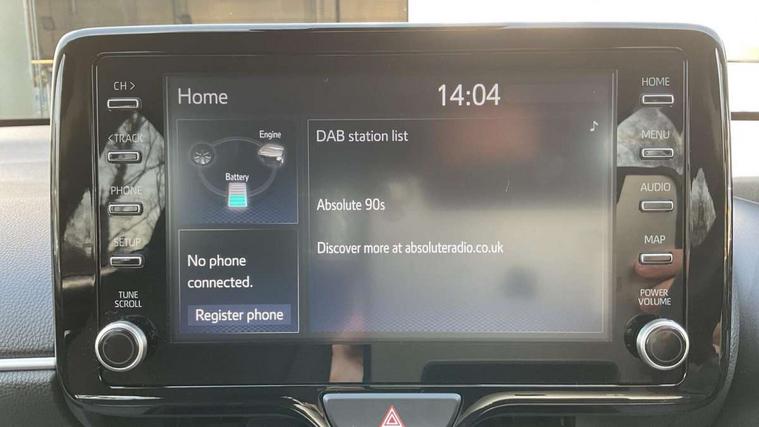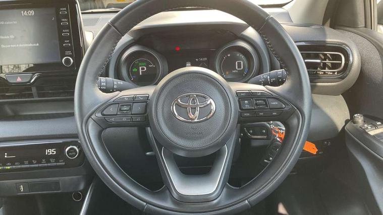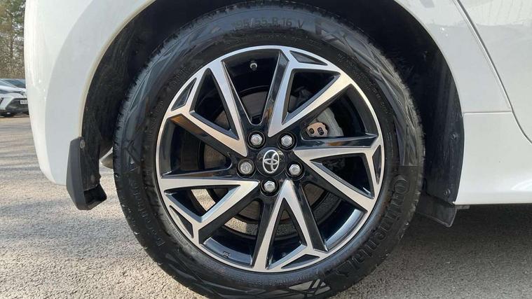 Adaptive cruise control, Adjustable speed limit with speed warning, Bluetooth connectivity, Colour binocular inspired displays with digital speedometer, E-call, Electric power steering, Hybrid energy display, Multi information display switches on steering wheel, Reversing camera, Smartphone integration with Apple CarPlay and Android auto, Tailgate, Voice recognition, Vehicle Stability Control (VSC), 4 speakers, 8" Multimedia display touch screen, USB connection, Acoustic windscreen glass, Auto windscreen wipers, Automatic headlights, Body coloured door mirrors, Electric adjustable heated door mirrors, Follow me home headlights, Front auto power windows with anti jam protection, Full LED rear lights, LED daytime running lights, LED front fog lights, LED front light guide, LED Headlights, LED High mounted stop lamp, LED Indicators, LED rear light guide, Manual headlight levelling, Painted chequered front grille, Rain sensor, Rear auto power windows with anti jam protection, Rear privacy glass, Rear side wing doors, Rear spoiler, Rear wiper, Shark fin antenna, Turning signal integrated indicators in door mirrors, Variable front intermittent wipers, 3 adjustable rear headrests, 3 spoke leather steering wheel, 60/40 split folding rear seat, Active headrests, Adjustable boot height, Auto air conditioning, Coat hooks in rear grab handles, Cup holders (2 front & door), Data Communication Module (DCM) connected services, Fabric upholstery, Front armrest, Glovebox, Grey roof lining, Height adjustable driver's seat, Isofix seat fixing, Leather gearshift, Pollen filter, Shopping bag hooks, Single front passenger seat, Tilt/telescopic steering column, 3 point seatbelts on all rear seats, ABS+EBD+Brake assist, Electronic parking brake, Emergency brake light system (EBS), Front passenger airbag on/off switch, Front seatbelt reminder, Hill start assist control (HAC), Rear child proof door locks, Rear seat belt reminder, Supplemental Restraint System (SRS) 8 airbags: Driver & passenger's airbags, dual side curtain airbags, side impact airbags, front centre airbag, Toyota Safety Sense 2, Precollison + Night time Pedestrian & Cyclist Detection, Lane Trace Assist, Auto High Beam, Intelligent ACC & Road Sign Assist, Tyre pressure warning system, 2x Master key, Alarm/immobiliser, Remote powered central double locking doors, Soft touch instrument panel, Space saver spare wheel,