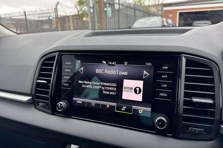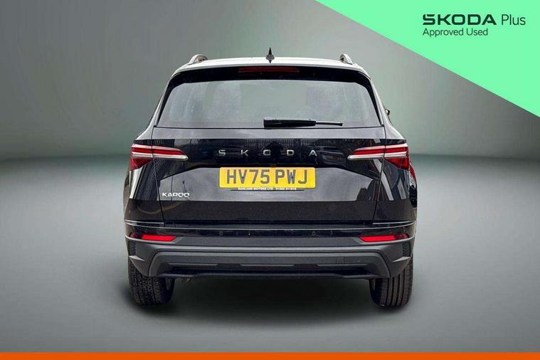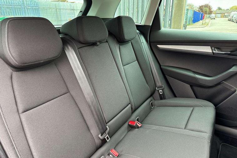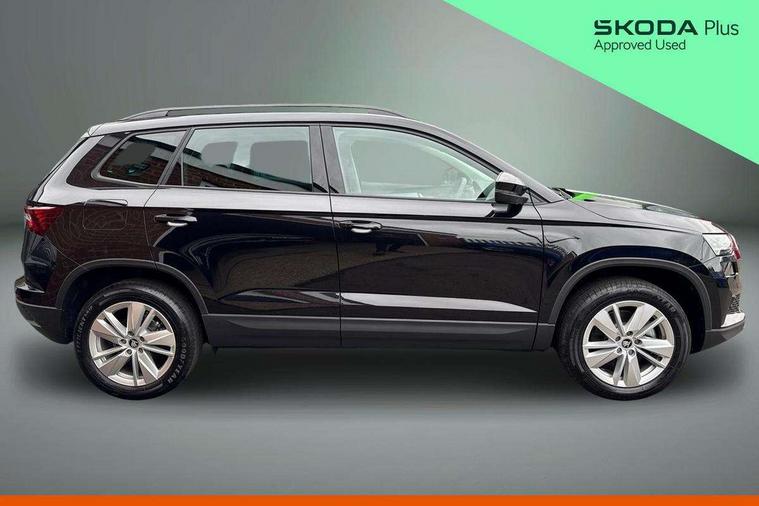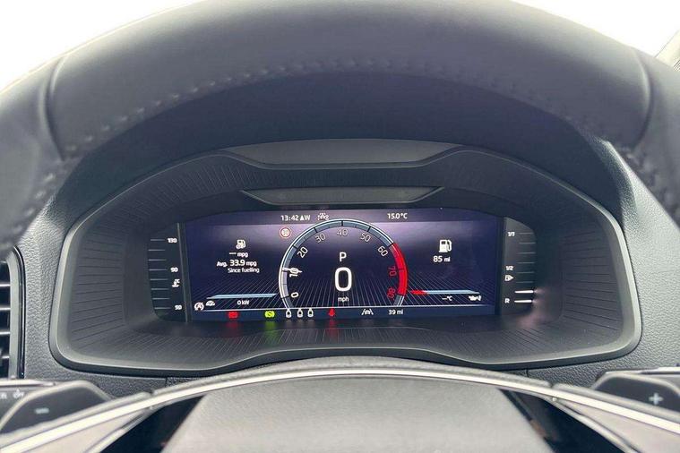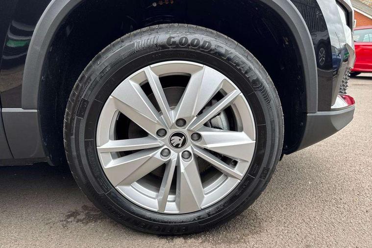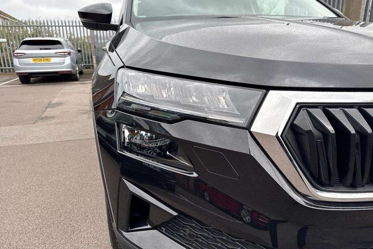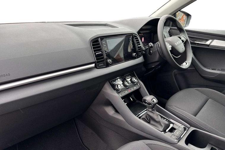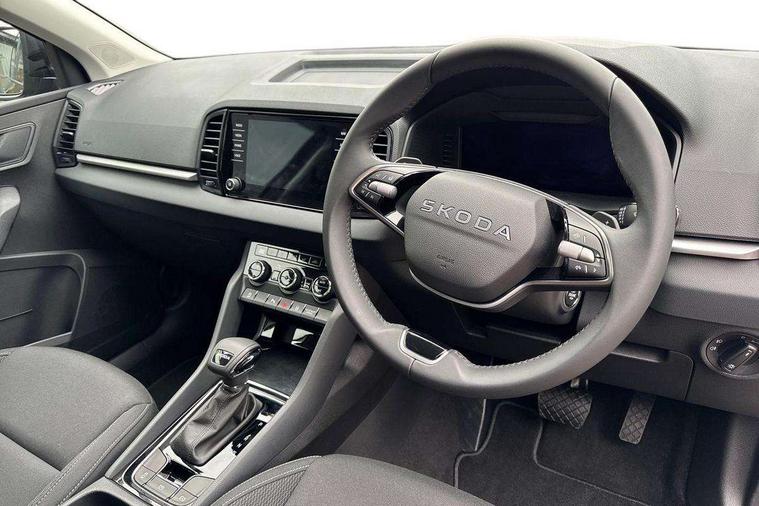 Advanced driver attention and drowsiness monitor, Amundsen navigation system with 8" touchscreen display and integrated WLAN and web radio, Electro-mechanical PAS, Emergency services call system, Lane assist, Outside temperature gauge, Sensor for driver assistance systems, Service interval indicator, SmartLink wireless for Apple and wired for Android, Start/stop system with regenerative braking, Traffic sign recognition, USB C Port x 2 in front centre console, Virtual Cockpit - 10.25" digital display, Wireless smartphone charging, 8 Speakers, DAB radio with Bluetooth, USB connection, Acoustic glass, Aero front windscreen wipers with intermittent function, Auto dimming rear view mirror with light and rain sensors, Black electric window control buttons, Body colour door mirrors and handles, Electric front and rear windows with child proof lock, Electrically adjustable heated folding and auto dimming door mirrors, Front fog lights, Headlight range control, Heated rear windscreen, LED daytime running lights, LED Headlights, LED rear lights with high functionality welcome effect and dynamic indicators, Light assistant (coming/leaving home/tunnel light), Plastic scuff plates in door apertures, Privacy glass, Rear side wing doors, Rear window wiper with washer system and intermittent control, Safety reflectors on front doors, Third brake light, Unique dark chrome design logo on alloy wheels, 1.5 litre bottle holders in driver and front passenger door panels, 12V socket in boot, 12v socket in front centre armrest with storage compartment and rear air vents, 2 spoke leather heated multifunction steering wheel with DSG paddles, 2 x Tablet holder, 3 rear height adjustable headrests, 3 seat bench in 2nd row, 4 foldable roof handles with rear coat hooks, Black floor carpet, Cargo elements in boot, Chrome inner door handles, Driver/front passenger reading lights, Foldable hooks in the boot, Folding tables on the front seat backrests, Front head restraints, Height adjustable driver and passenger seat, Height adjustable front three point seats belts with tensioners, Height/reach adjust steering wheel, Ice scraper, Illuminated glovebox, Illuminated luggage compartment, Interior noise suppression, Isofix child seat preparation for front passenger seat, Isofix child seat preparation outer rear, Loft fabric upholstery, Manual lumbar support for front seats, Pearl grey interior ceiling, Pen holder, Pollen filter, Rear boot cover, Rear package tray, Rear reading lights, Rubbish bin door, Safety vest holder, Single front passenger seat, Skoda lettering on steering wheel, Storage box in upper central dashboard closed, Sunvisors with illuminated vanity mirrors, Textile floor mats, Ticket holder, Umbrella under passenger seat, Under passenger seat storage compartment, Non Smokers pack, Parking pack - Karoq, Winter pack with heated front seats - Karoq, Automatic door unlocking in case of crash, Automatic fuel cut off in case of crash, Driver airbag, Electronic parking brake with auto hold function, Emergency rear braking signal, ESC (incl. ABS+MSR+ASR+EDS+HBA+DSR+RBS+MKB), Front assist, Front side airbags, Head airbags, Hill hold control, Knee airbags, Passenger airbag with switch-off function, Pedestrian monitor, Power operated child safety locks, Seatbelt reminder signalisation and pretensioner for all seats, Three point seatbelts rear, Two tone horn, Tyre pressure monitor, Alarm with interior monitoring, back up horn and tilt sensor with safe function, Electronic engine immobiliser, Keyless entry and start/stop, Remote central locking with 2 remote folding keys, Anodized cross door decor, Black centre console, Chrome framed air vents, Satin black dashboard, Satin black door trim, Anti-theft wheel bolts protection, Breakdown and tool kit,