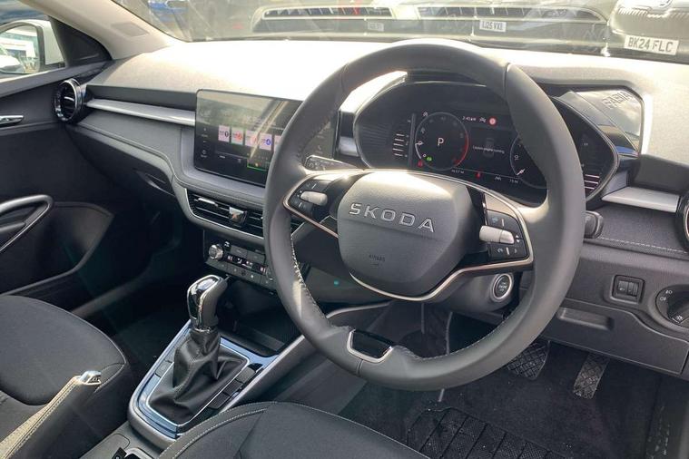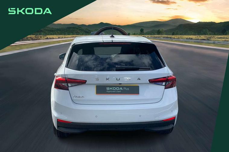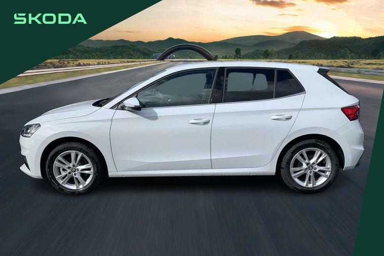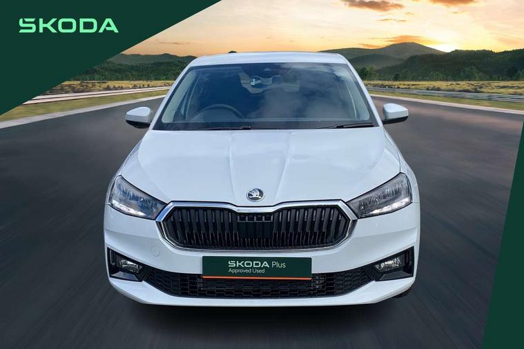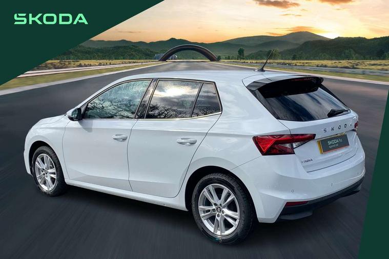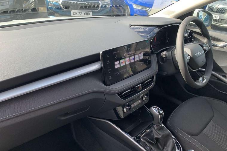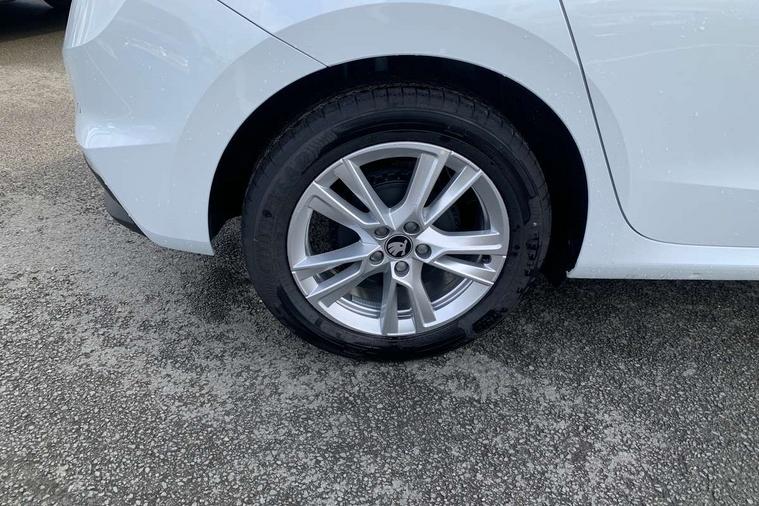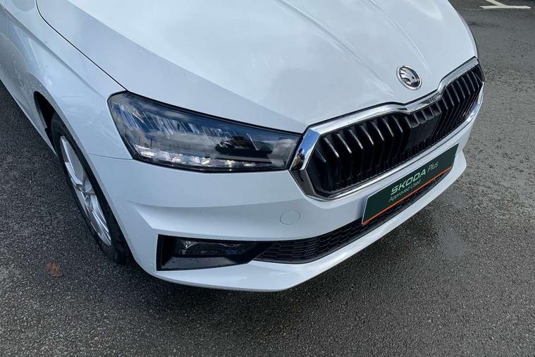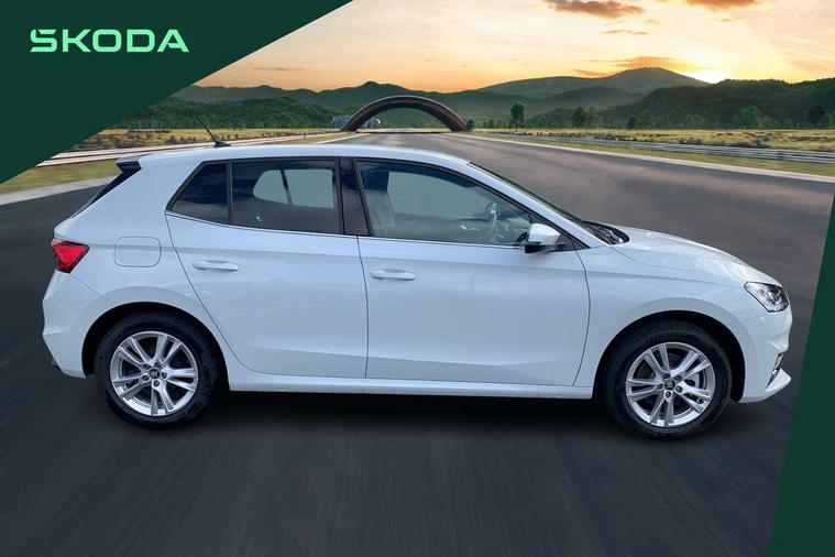 Advanced driver attention and drowsiness monitor, Bluetooth connection, Driver alert system, Electromechanical power steering, Exterior temperature gauge, Service interval indicator, Traffic sign recognition, Virtual cockpit with 10.25" colour display, Wireless SmartLink for Apple CarPlay and Android Auto, 6 Speakers (4 in front and 2 in rear), 9.2" colour display skoda navigation system with voice control and web radio, Auxiliary socket for external MP3 player, DAB digital radio reception, Auto dimming rear view mirror, Body colour door mirrors, Body coloured bumpers, Chrome window surround, Door mirror integrated indicators, Front and rear electric windows, Front window wiper intermittent control, Headlight range control - Automatic, Ice scraper in fuel cap, LED 3rd brake light, LED daytime running lights with coming and leaving home feature, LED rear lights, Privacy glass, Rear LED fog light, Rear side wing doors, Rear window wiper with washing nozzles, Roof mounted spoiler, SKODA tailgate lettering in chrome, Unique dark chrome design logo on alloy wheels, 2 LED reading lights in front and rear, 3 rear headrests, Backrest split and folding, Central console with fixed cup holder and storage box, Chrome handbrake release button, Comfort seats, Door sills with fabia badging, Dual zone air conditioning with climatronic electronic control, Fabric upholstery, Front centre armrest, Gearshift knob/handle in leather, Grain satin black interior door handles, Hand brake lever handle in leather, Height adjustable front headrests, Height adjustable front seats, Height adjustable steering wheel, ISOFIX and TopTether anchorage points to the outer rear seats, ISOFIX and TopTether on the front passenger seat, Luggage compartment lighting, Manually adjustable lumbar support in front seats, Pollen filter, Rear seat bench unsplit, Single front passenger seat, Skoda lettering on steering wheel, Storm grey headlining, Sun visors with mirror and airbag label on passenger side, Textile floor mats, Ticket holder, Ambient lighting pack - Fabia Hatchback, 3-point height adjustable front seats belts with pretensioner and force limiter, Automatic warning lights in case of crash, Driver and passengers airbag with switch off function, e-Call+, ESC including ABS, MSR, ASR, EDS, HBA and XDS, Front and rear seat belt warning, FRONT ASSIST (AEB City and AEB Inter Urban), Front side airbags, Head airbags, Hill hold control, One tone horn, Pedestrian protection, Three rear 3-points safety seat belts with pretensioner and force limiter including stop function for outer rear seat belts, Tyre pressure monitoring system, Anti-theft alarm system including immobiliser, interior monitoring, backup horn, and towing protection, Central locking with radio remote control, interior controls, SAFE function and 2 foldable keys, Chrome edged air vents, Grain satin black central console cover, Metallic grey upper decorative trim, Satin black door and side trim panel in front, Textile microsuede grey lower decorative trim with art grey stitching, Anti-theft wheel bolts protection, Super-low rolling resistance tyres,