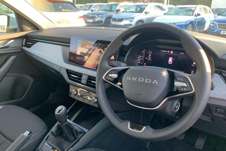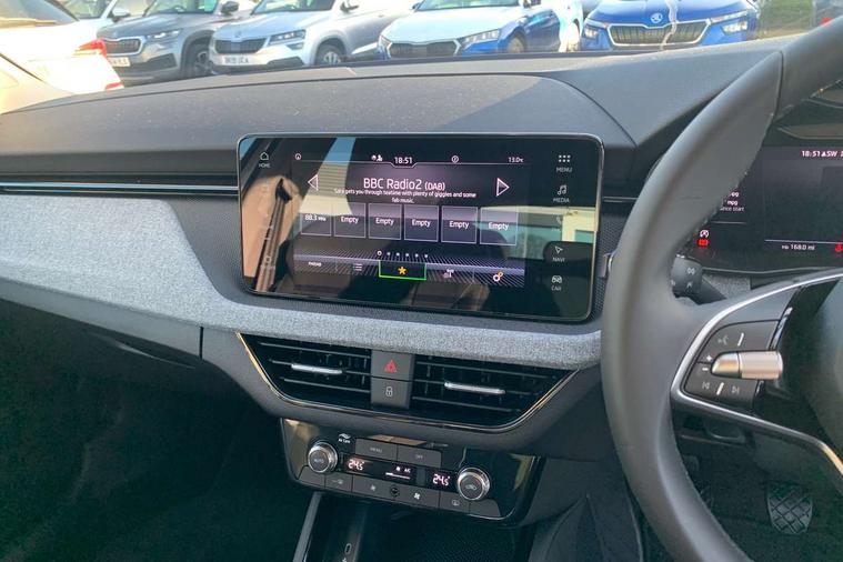 Advanced driver attention and drowsiness monitor, Bluetooth system, E-call, Front assist system, PAS, Rear parking sensors, Rear view camera, Service indicator, Speed limiter, Traffic sign recognition, Virtual cockpit with 10.25" display, Wireless smartlink, 4 USB C ports, 8 Speakers, 9.2" Skoda navigation display, DAB Digital radio, Auto dimming rear view mirror, Automatic headlight control with coming home and leaving home feature, Black roof rails, Body colour bumpers, Body colour door mirrors and handles, Chrome grille surround, Front and rear electric windows, Full LED headlights, Heated rear window, LED brake lights, LED daytime running lights, LED front turning lights, LED high beam, LED low beam, LED third brake light, Rear LED fog light, Rear side wing doors, Rear wiper, Ticket holder inside windscreen, 12V socket in luggage compartment, 3 seat bench in 2nd row, Black hotstamping, Cargo elements, Chrome inner door handles, Driver and passenger sun visors with vanity mirror, Dual zone climate control, Front and rear roof lights, Front centre armrest, Front head restraints, Glove compartment with illumination, Height adjustable driver seat, Height adjustable front passenger seat, Ice scraper, Inner circulation control with pollen filter, ISOFIX on front passenger seat, Isofix preparation for back seats, Krepp recycled decor inserts, Leather gearknob and handbrake lever, Loft cloth upholstery, Manual lumbar support for front seats, Net package and top tether hooks in boot space, Net under rear shelf, Overhead glasses storage compartment, Pocket on the back of both front seats include mobile phone pockets, Rake/reach adjustable steering wheel, Reading lights, Satin black door inserts, Single front passenger seat, Textile floor mats, Third rear headrest, Top tether for front passenger seat, Umbrella in driver's door, 3x3 point rear seatbelts, Airbags - driver and front passenger, Disc brakes, ESP, Extended and predictive pedestrian/cyclist protection, Front passenger airbag deactivation switch, Front side airbags with curtain airbags, Hill hold control, Manual leather parking brake, Manual rear child locks, One tone horn, Seatbelt reminder for driver an co-driver, Traction control, Tyre pressure monitor, Anti-theft alarm system with interior monitoring, backup horn, towing protection and remote central locking with SAFE system, Anti-theft wheel bolts, Electronic engine immobilizer,