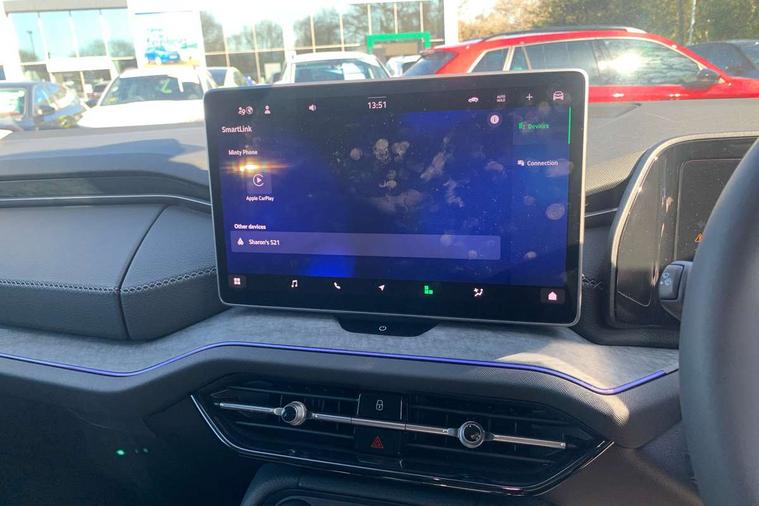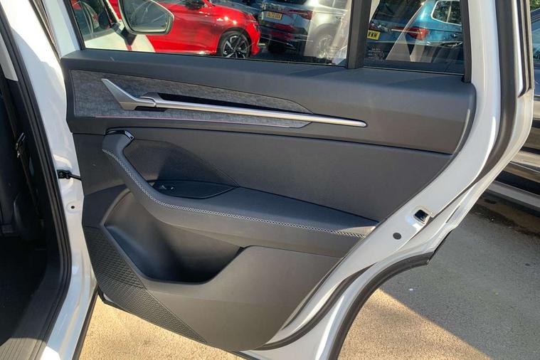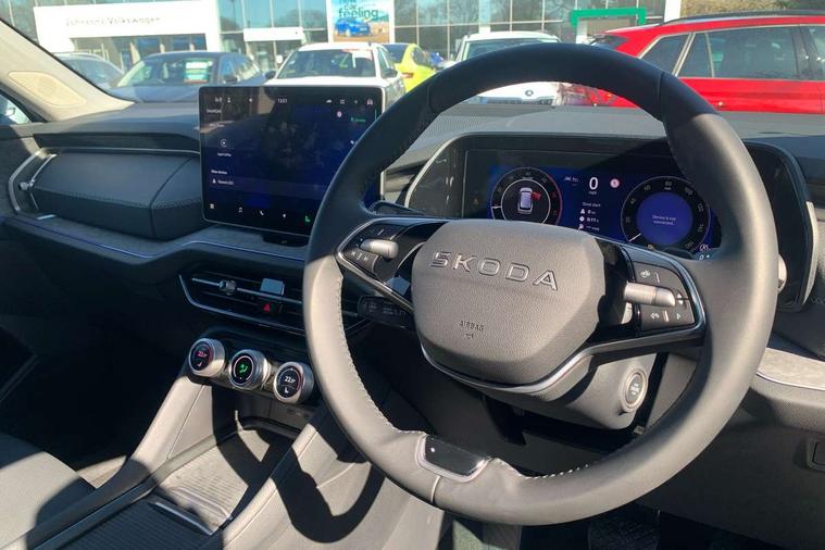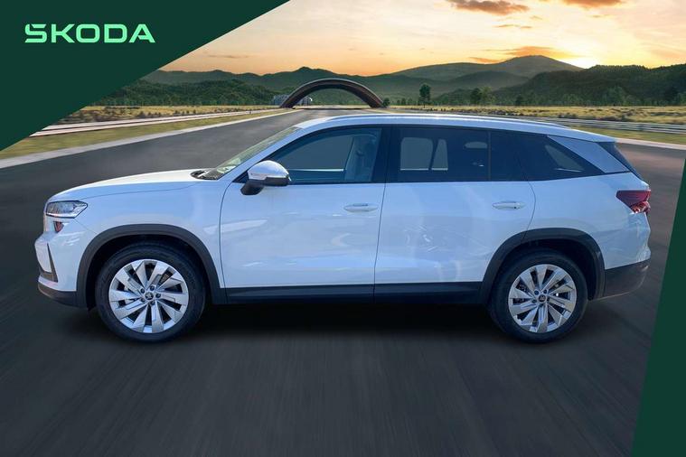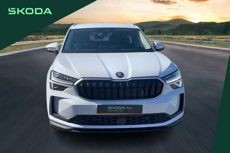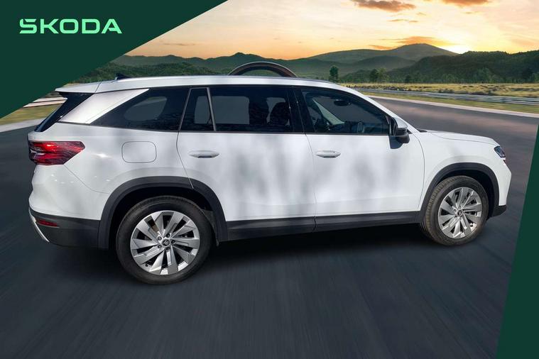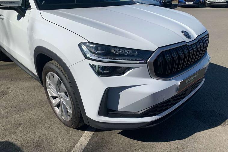 13" satellite navigation touchscreen display, Blind spot detection with door exit warning, Bluetooth system, ChatGPT functionality, Driver alert - Fatigue and drowsiness monitor, Dry display cleaner, Emergency call, Front and rear parking sensors, Front cross traffic assist, Lane assist, PAS, Rear traffic assist, Tailgate unlocking from outside, Traffic sign recognition, USB C Port x 2 in front centre console, Virtual Cockpit - 10.25" digital display, Voice control system, Wireless charging for two smartphones (15W) with cooling function, Wireless SmartLink for Apple CarPlay and Android Auto, Stop/start function, 2x USB-C in the rear, DAB Digital radio, Aero front windscreen wipers with intermittent function, Auto dimming rear view mirror, AWL (all weather lighting) and all weather light with cornering function, Black wheel arch surrounds, Body colour bumpers, Body colour door mirrors and handles, Cornering light and poor weather light, Electric folding /adjustable/separted heated/folding door mirrors, auto dimming with boarding sports and memory function, Electric front and rear windows, Exterior black decorative trims, Front grille with horizontal light strip, Heat insulating glass in windshield, Heated rear window, Ice scraper in fuel tank cap, Invisible tailpipe, LED daytime running lights, LED matrix headlights with AFS and LED fog lights, LED rear light with welcome effect and dynamic turn signals, LED third brake light in rear spoiler, Light assistant with automatic headlight control and coming home feature, Logo projection in door mirrors, Multiple matrix beam, Privacy glass, Rear roof spoiler, Rear side wing doors, Rear window wiper, Red decorative strip between rear LED lights, Safety reflectors on front and rear doors, Unique dark chrome design logo on alloy wheels, Window control switches with black trim, Windscreen wipers with rain sensor, Without engine designation, 1.5l bottle holder points in all door, 1x centre rear reading light, 2 seat bench in 3rd row, 2 spoke multi-function leather heated steering wheel with paddle shift, 3 configurable smart dials with 32mm coloured display, 3 seat bench in 2nd row, 4 foldable roof handles with rear coat hooks, Ambient interior lighting - Dashboard, front-door stowage compartments, front and rear door panels and footwell lighting, Automatic gear selector on steering column, Chrome interior door handles, Driver/front passenger reading lights, Fabric headlining, Fixed bench 40:60:40 split folding backrests, Front and rear floor mats, Front centre armrest with jumbo box storage compartment, cup holder and 12V socket, Height adjustable front headrests, Isofix child seat fittings in outer middle row rear seats and front passenger with top tether, Manually adjustable steering column, Pollen filter, Rear centre armrest with cupholders, Rear seat boot backrest release, Single front passenger seat, Skoda lettering on steering wheel, Storage pocket including mobile phone pockets on the backs of the front seats, Sunvisors with illuminated vanity mirrors, Three rear height adjustable headrests, Ticket holder on A Pillar, Tri zone climate control, Umbrella in door panel x1 made from sustainable materials, Upper and lower glovebox with card holder and coin compartment, USB C port by rear view mirror for charging only (15W), Exterior styling pack - Kodiaq, Auto door release and activation of warning lights in the event of an accident, Driver and front passenger airbag with knee airbag and front passenger airbag deactivation, Electric child locks, Electronic parking brake, ESC (incl. ABS+EMD+MSR+ASR+EDL+HBA+DSR+RBS+ESBS+MCB+TSA+XDS), Front assist with braking reaction to vehicles, pedestrians and cyclists, Front disc brakes, Fuel cut off safety device, Height adjustable front 3 point seatbelts + pretensioners, Hill hold assist, Junction assist with automatic emergency braking, Rear disc brakes, Safety vest holder in door, Seat belt reminder for all seats, Three point rear seat belts, Two tone horn, Tyre pressure monitor, Anti-theft wheel bolts, Immobiliser, Remote central locking with 2 keys,