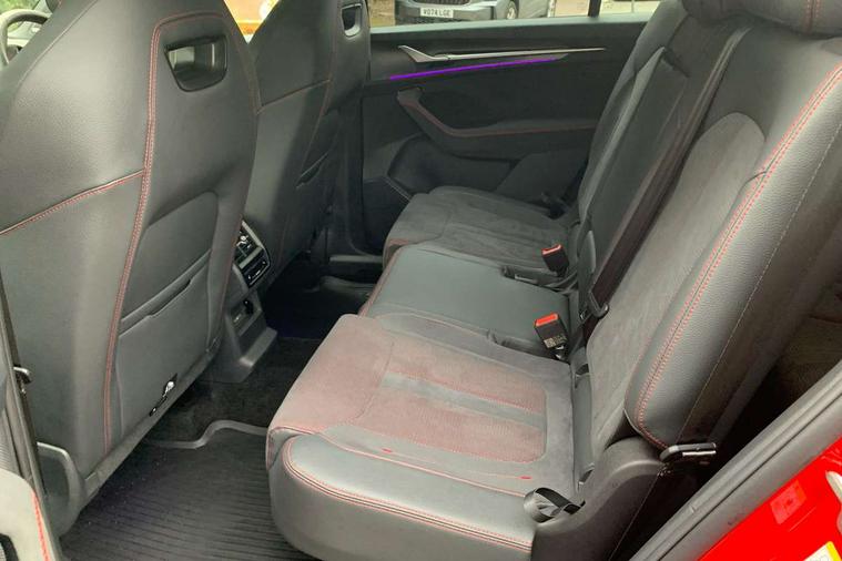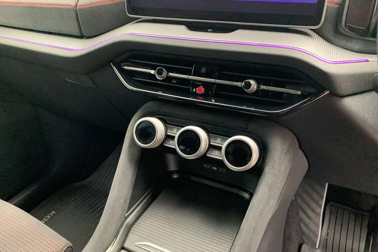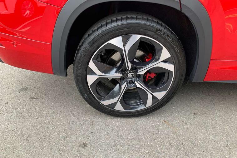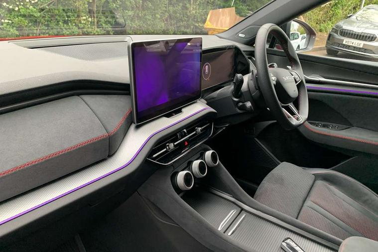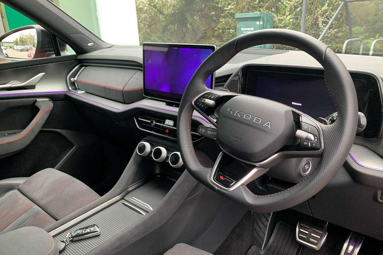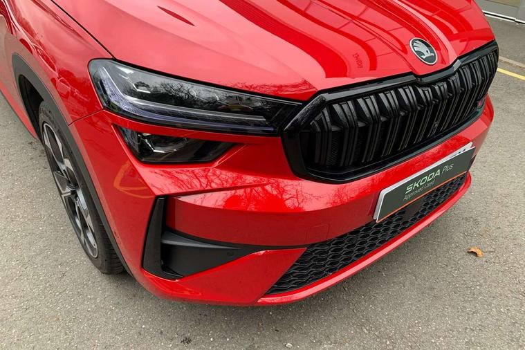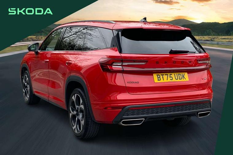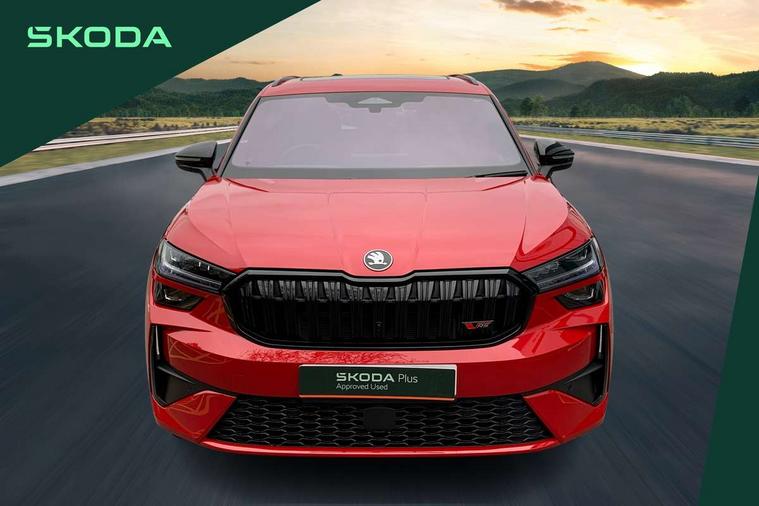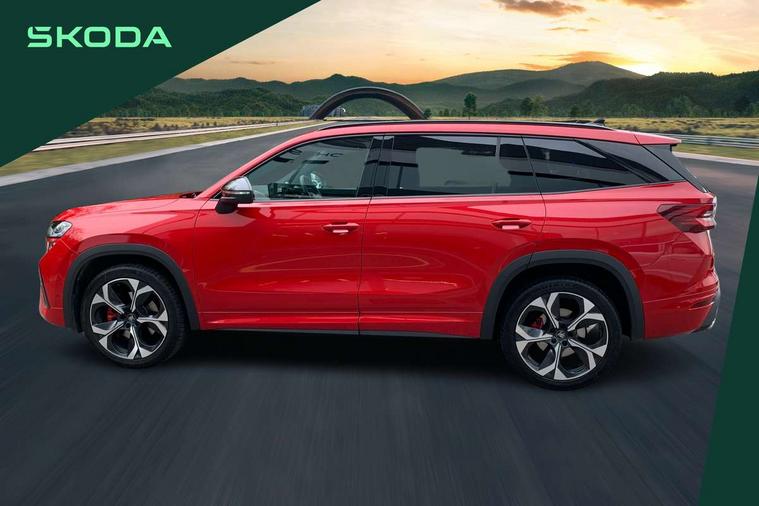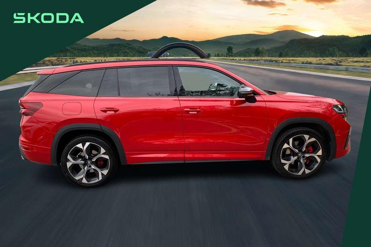13" satellite navigation touchscreen display, Blind spot detection with door exit warning, Bluetooth system, ChatGPT functionality, Driver alert - Fatigue and drowsiness monitor, Dry display cleaner, Emergency call, Front and rear parking sensors, Front cross traffic assist, Lane assist, Off road modes, PAS, Rear traffic assist, Tailgate unlocking from outside, Traffic sign recognition, USB C Port x 2 in front centre console, Virtual Cockpit - 10.25" digital display, Voice control system, Wireless charging for two smartphones (15W) with cooling function, Wireless SmartLink for Apple CarPlay and Android Auto, Stop/start function, 2x USB-C in the rear, DAB Digital radio, Dynamic sound booster, Aero front windscreen wipers with intermittent function, Auto dimming rear view mirror, AWL (all weather lighting) and all weather light with cornering function, Black roof rails, Black vRS styling including front grille surround and upper part of window surround, Black wheel arch surrounds, Body colour door handles, Cornering light and poor weather light, Electric folding /adjustable/separted heated/folding door mirrors, auto dimming with boarding sports and memory function, Electric front and rear windows, Exterior black decorative trims, Front grille with horizontal light strip, Gloss black door mirrors, Gloss black window frame and D pillar, Heat insulating glass in windshield, Heated rear window, Ice scraper in fuel tank cap, LED daytime running lights, LED matrix headlights with AFS and LED fog lights, LED rear light with welcome effect and dynamic turn signals, LED third brake light in rear spoiler, Light assistant with automatic headlight control and coming home feature, Logo projection in door mirrors, Multiple matrix beam, Privacy glass, Rear roof spoiler, Rear side wing doors, Rear window wiper, Red decorative strip between rear LED lights, Safety reflectors on front and rear doors, Tailgate lettering in Black, Unique dark chrome design logo on alloy wheels, vRS badging on front grille and tailgate, vRS front and rear bumpers, vRS rear diffuser and visible tailpipe in stainless steel, Window control switches with black trim, Windscreen wipers with rain sensor, Without engine designation, 1.5l bottle holder points in all door, 1x centre rear reading light, 2 seat bench in 3rd row, 3 configurable smart dials with 32mm coloured display, 3 seat bench in 2nd row, 3 spoke multi-function leather heated sports steering wheel with vRS logo and paddles, 4 foldable roof handles with rear coat hooks, Aluminium pedals, Ambient interior lighting - Dashboard, front-door stowage compartments, front and rear door panels and footwell lighting, Automatic gear selector on steering column, Chrome interior door handles, Driver/front passenger reading lights, Fabric headlining, Fixed bench 40:60:40 split folding backrests, Front and rear floor mats, Front centre armrest with jumbo box storage compartment, cup holder and 12V socket, Front sport seats, Height adjustable front headrests, Interior black decorative trims, Isofix child seat fittings in outer middle row rear seats and front passenger with top tether, Manually adjustable steering column, Pollen filter, Rear centre armrest with cupholders, Rear seat boot backrest release, Single front passenger seat, Skoda lettering on steering wheel, Storage pocket including mobile phone pockets on the backs of the front seats, Sunvisors with illuminated vanity mirrors, Three rear height adjustable headrests, Ticket holder on A Pillar, Tri zone climate control, Umbrella in door panel x1 made from sustainable materials, Upper and lower glovebox with card holder and coin compartment, USB C port by rear view mirror for charging only (15W), Acoustic package - Kodiaq, Convenience plus pack - Kodiaq SE L/Sport Line/vRS, Performance package - Kodiaq vRS, Simply clever cargo package - Kodiaq, Auto door release and activation of warning lights in the event of an accident, Driver and front passenger airbag with knee airbag and front passenger airbag deactivation, Electric child locks, Electronic parking brake, ESC (incl. ABS+EMD+MSR+ASR+EDL+HBA+DSR+RBS+ESBS+MCB+TSA+XDS), Front assist with braking reaction to vehicles, pedestrians and cyclists, Front disc brakes, Fuel cut off safety device, Height adjustable front 3 point seatbelts + pretensioners, Hill hold assist, Junction assist with automatic emergency braking, Rear disc brakes, Red brake calipers, Safety vest holder in door, Seat belt reminder for all seats, Three point rear seat belts, Two tone horn, Tyre pressure monitor, Alarm with interior monitoring and tilt sensor with safe function, Anti-theft wheel bolts, Immobiliser, Remote central locking with 2 keys, 20" Elias black polished alloy wheel,
