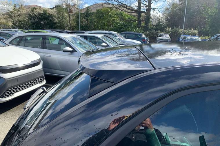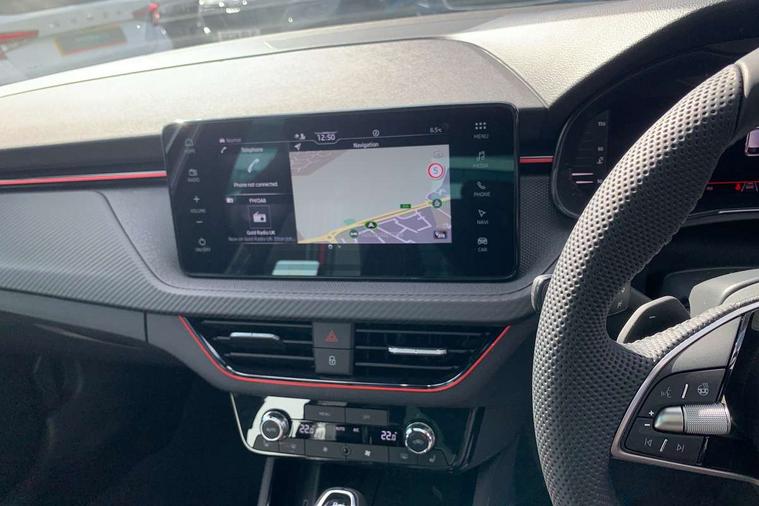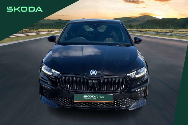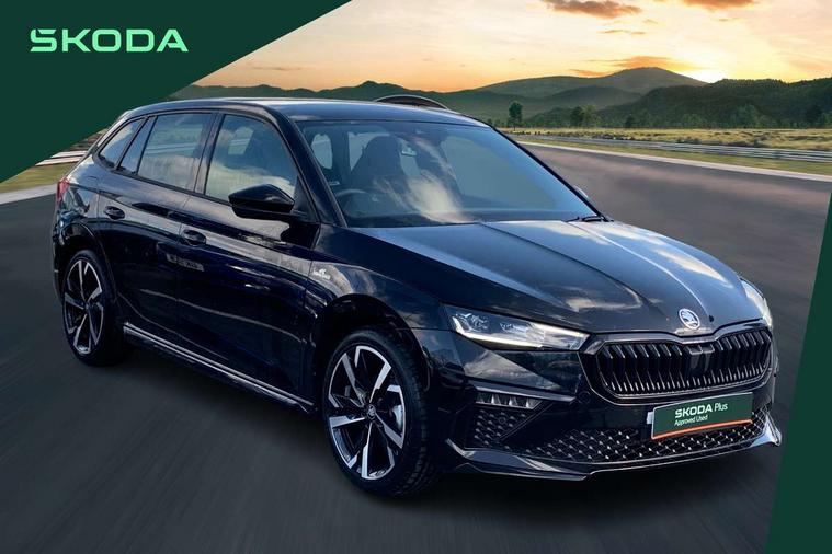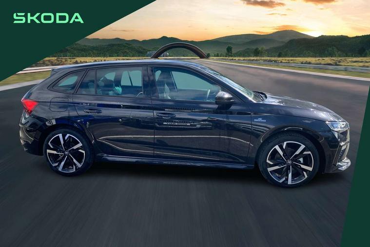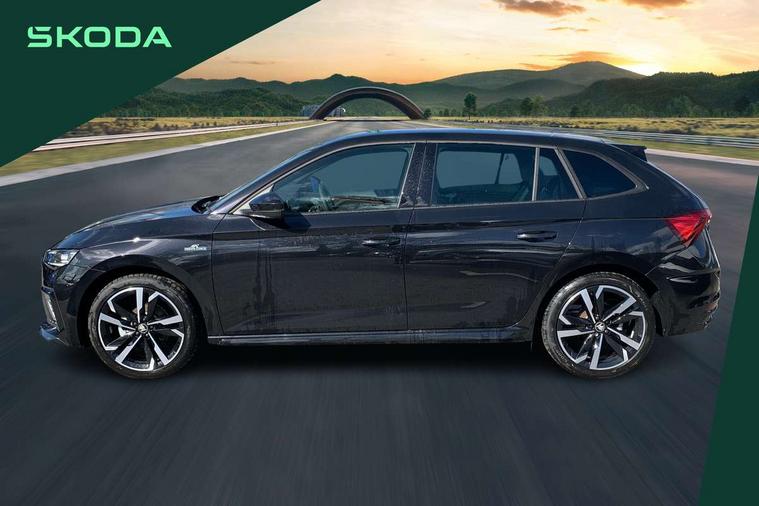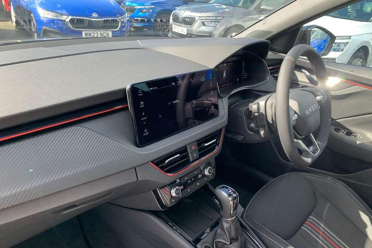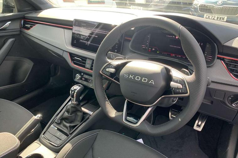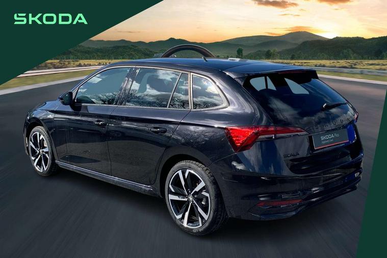 Advanced driver attention and drowsiness monitor, Bluetooth, e-Call (emergency call), Front assist system, PAS, Rear parking sensors, Rear view camera, Speed limiter, Tailgate, Traffic sign recognition, Virtual Cockpit - 10.25" digital display, Voice control system, Wireless smartlink, Drive mode select with Sport Chassis Control and ECO mode, 4 USB C ports, 8 Speakers, 9.2" Skoda navigation display, DAB radio, Auto dimming rear view mirror, Automatic headlight control with manual coming and leaving home feature, Automatic intermittent wipers, Black door mirrors, Black lettering on boot lid, Black radiator grille, Black rear diffuser, Black roof spoiler, Black window frames, Body colour bumpers, Body colour door handles, Extended tailgate glass, Front and rear electric windows, Heated rear window, LED 3rd brake light, LED daytime running lights, LED high beam, LED low beam, Light sensors, Monte carlo plaque, Panoramic glass roof, Privacy glass, Rear LED fog light, Rear side wing doors, Rear wiper, Tinted windows, Unique dark chrome design logo on alloy wheels, 12V socket in luggage compartment, 3 seat bench in 2nd row, Aluminium pedals, Ambient lighting in white/red, Black / White armrest stitching, Black roof headlining, Cargo elements, Chrome inner door handles, Door inserts in art.leather carbon, Driver and passenger sun visors with vanity mirror, Dual zone climate control, Front and rear roof lights, Front centre armrest, Front head restraints, Height adjustable driver seat, Height adjustable passenger seat, Ice scraper, Illuminated glove compartment, Inner circulation control with pollen filter, ISOFIX for front passenger seat, Isofix preparation for back seats, Leather gearknob and handbrake lever, Luggage net under rear parcel shelf, Manual lumbar support for front seats, Monte Carlo cloth upholstery, Net package and top tether hooks in boot space, Pocket on the back of both front seats, incl. mobile phone pockets, Rear centre armrest, Red hotstamping, Single front passenger seat, Skoda lettering on steering wheel, Sport seats, Textile floor mats, Third rear headrest, Ticket holder, Top tether for front passenger seat, Umbrella in driver's door, Light and view plus pack - Scala, 3x3 point rear seatbelts, ABS, Child locks, Curtain airbags and front side airbags, Disc brakes, Driver and front passenger airbags, ESP, Hill hold control, Manual leather parking brake, One tone horn, Passenger airbag switch off function, Seatbelt reminder for driver and front passenger, Tyre pressure monitoring system, Anti theft alarm system with interior monitoring, backup horn and towing protection, Anti-theft wheel bolts, Remote central locking with 2 remote folding keys, SAFE function for remote central locking, Carbon effect decorative inserts, 18" Ursa black diamond cut alloy wheels,